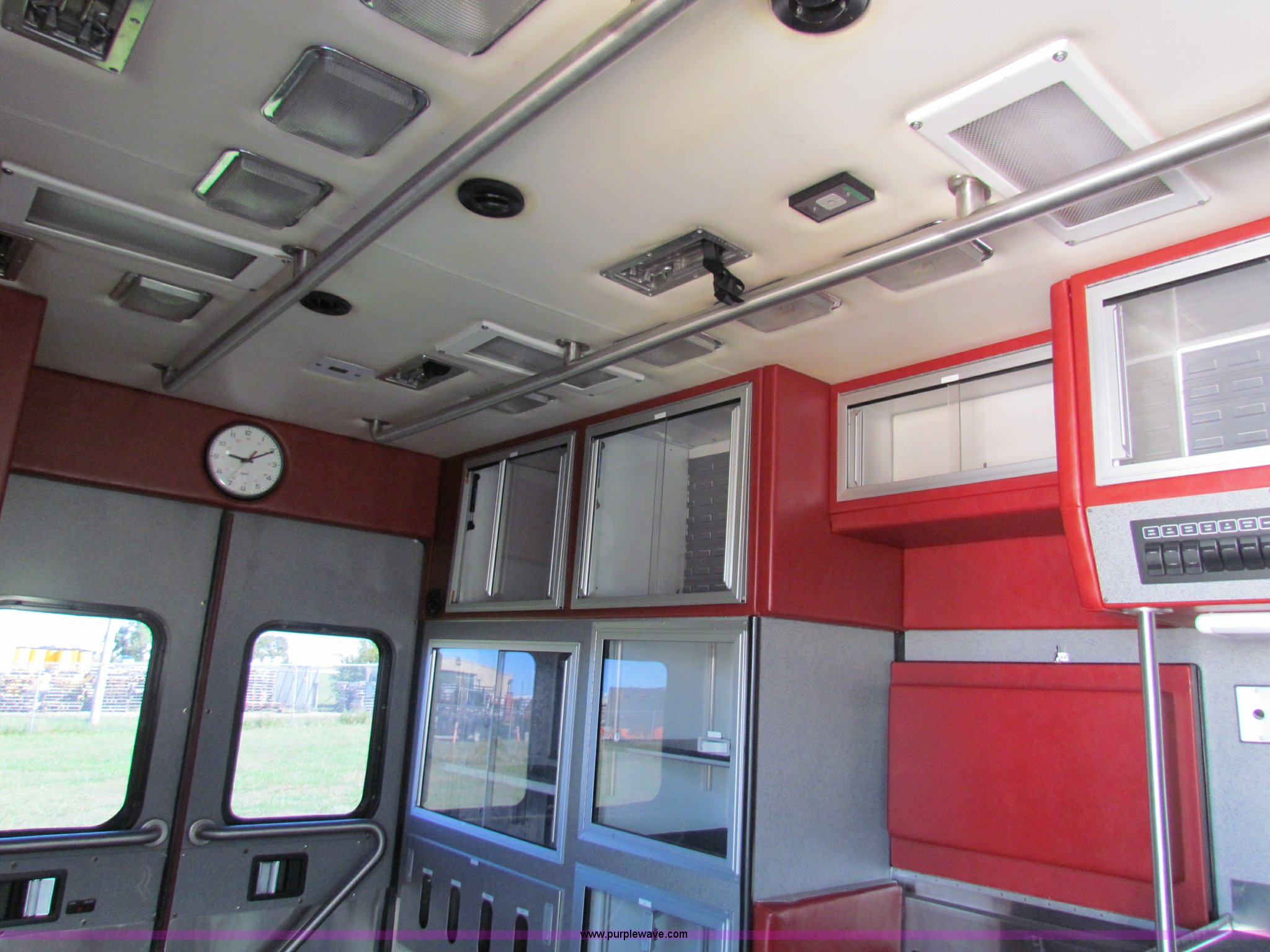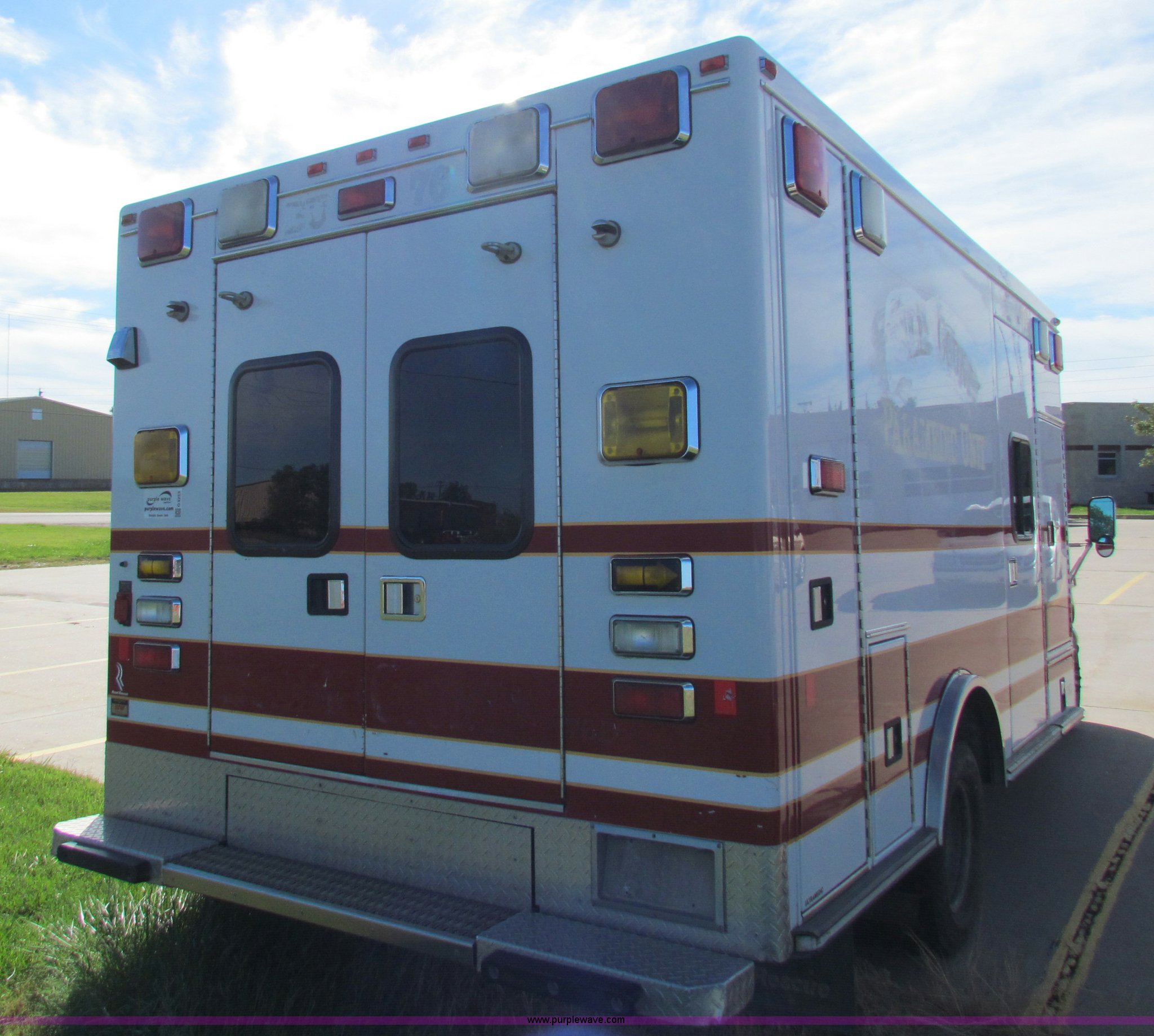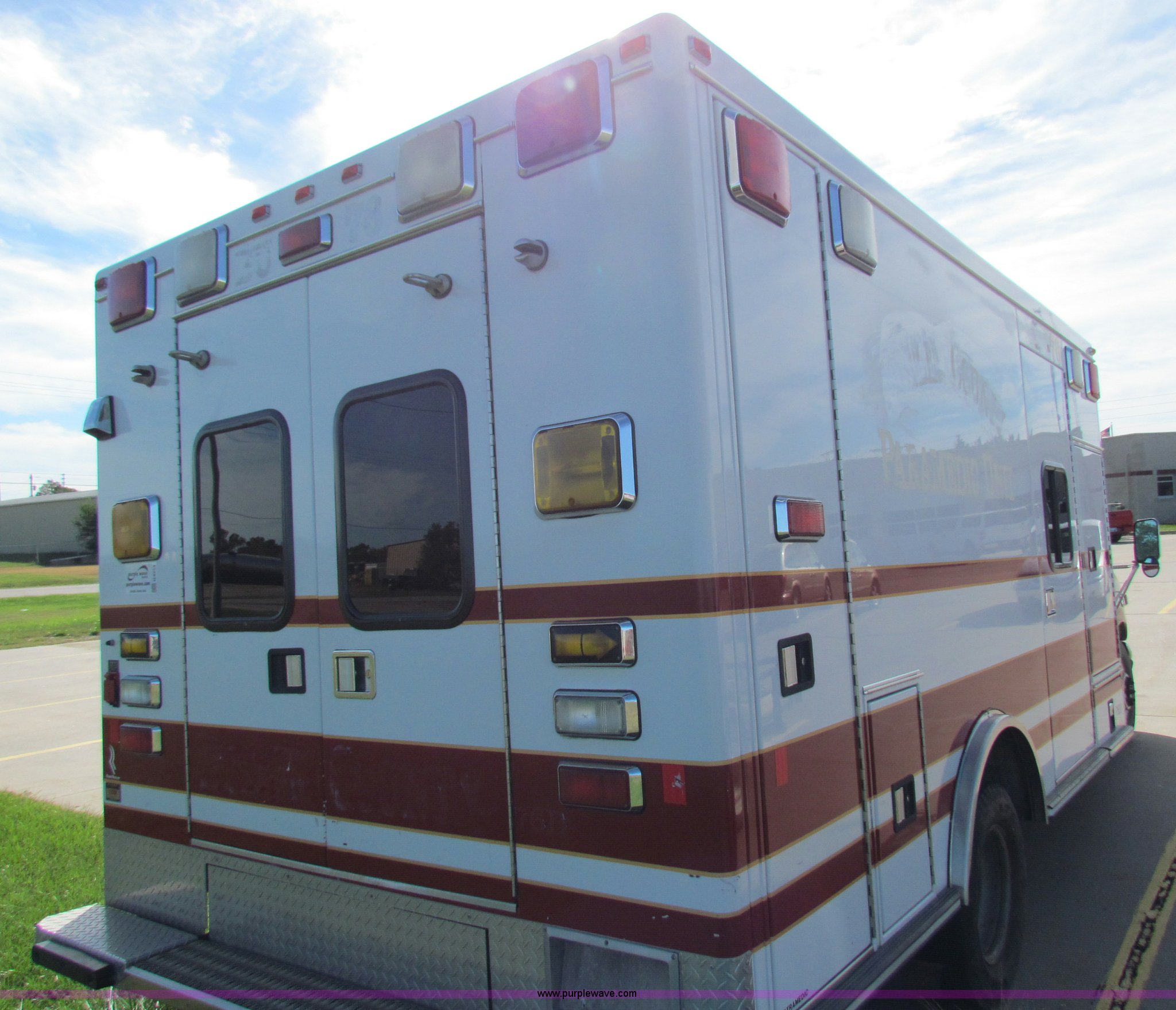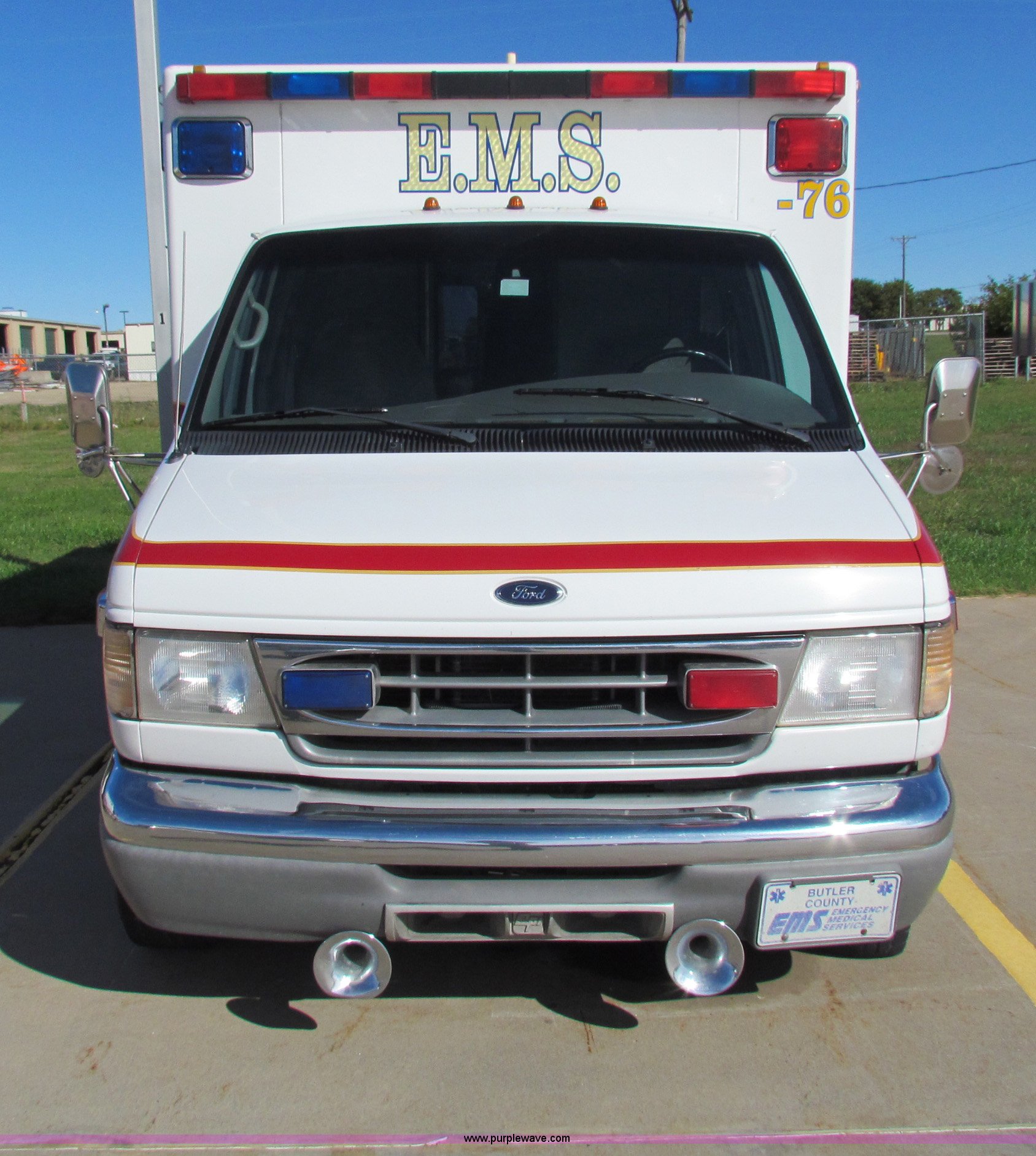 Purple Wave is selling a used Fire Truck or Emergency Vehicle in Kansas. This item is a 2001 Ford ambulance with the following: 232,963 miles on odometer, 7.3L V8 OHV 16V turbo diesel engine, Automatic transmission, AC and heat, Rear climate control, AM/FM, Tilt, Cruise, Power windows and locks, 225/75R16 tires, Transmission slips