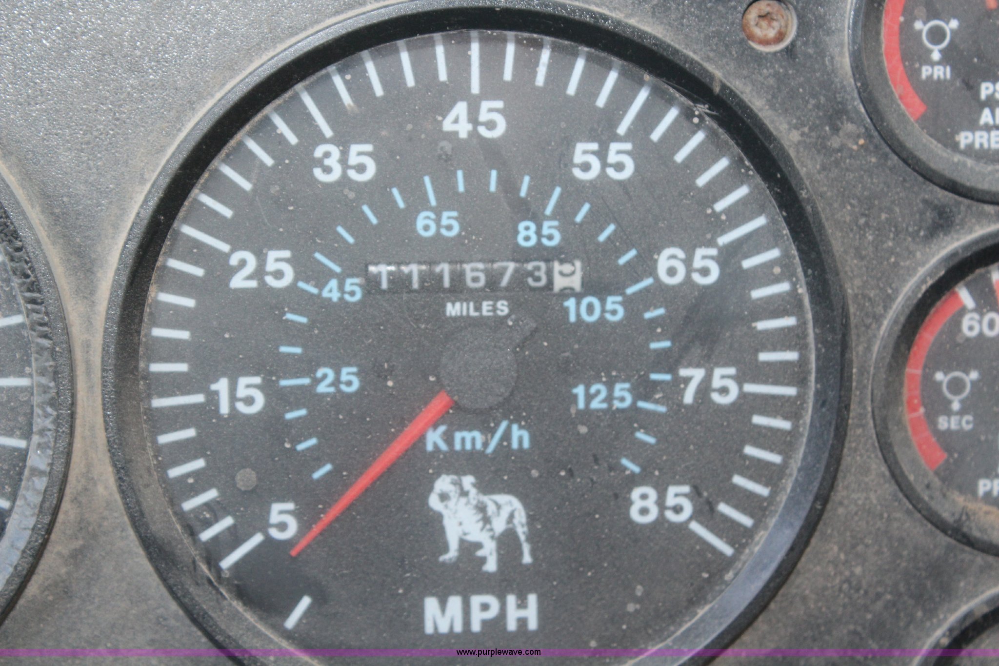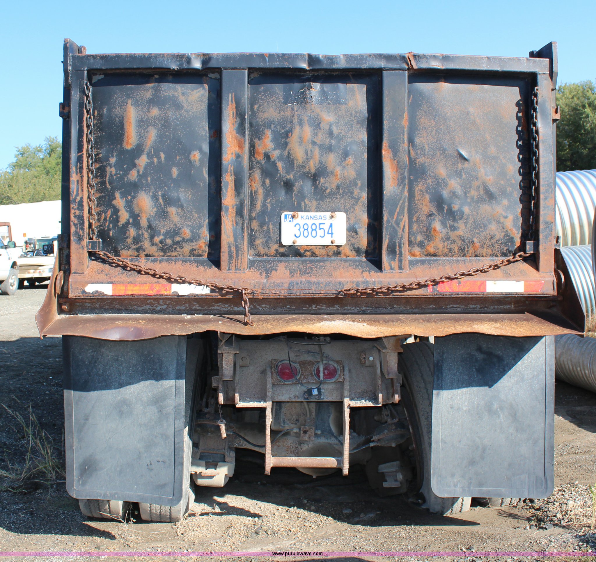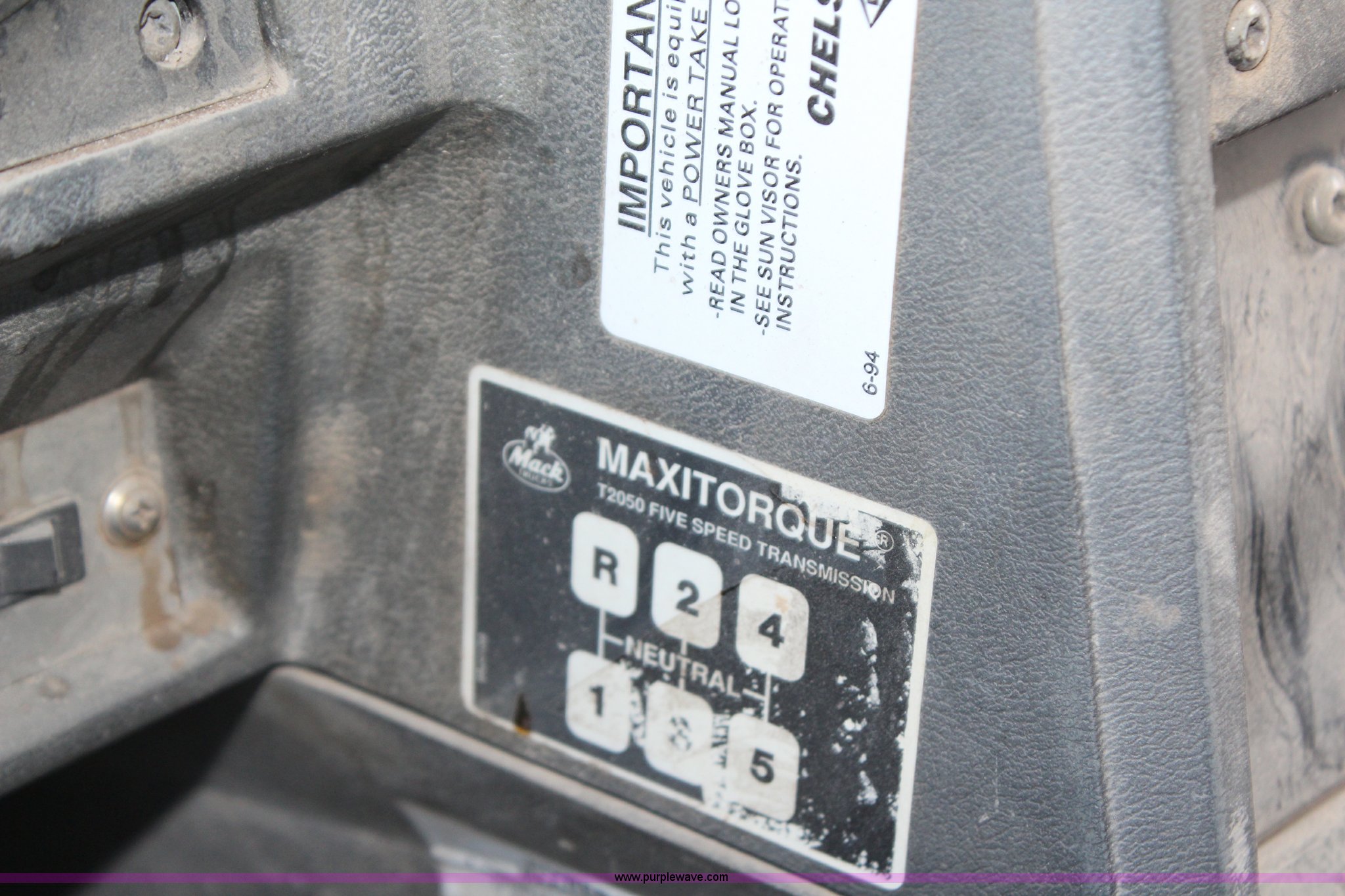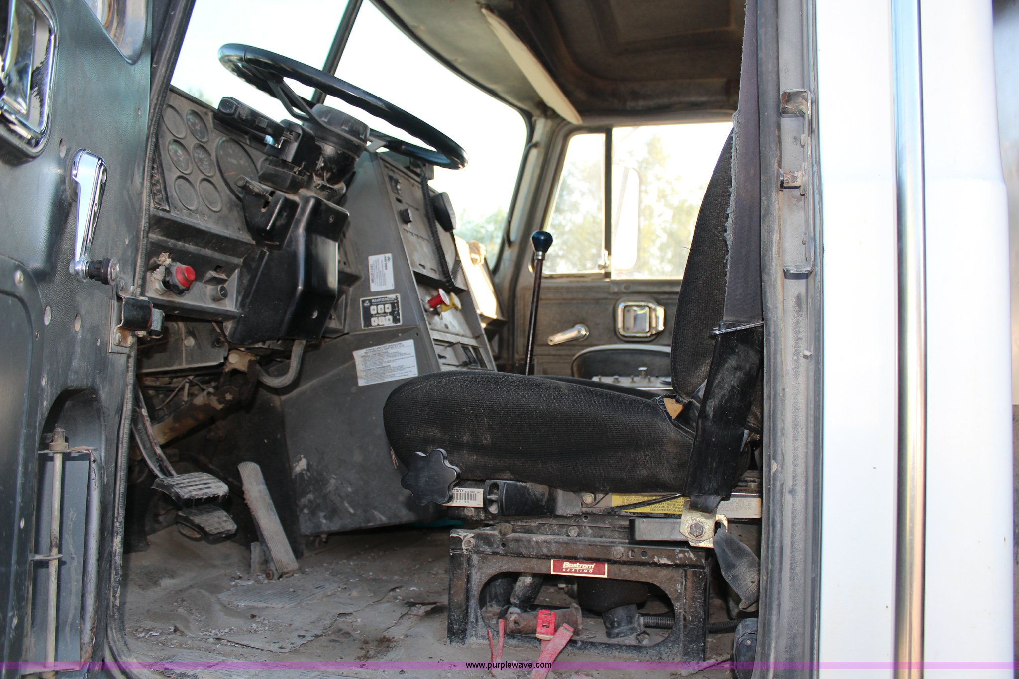 Purple Wave is selling a used Construction Dump Truck in Kansas. This item is a 1991 Mack CH613 dump truck with the following: 111,673 miles on odometer, Mack EM7 12.0L L6 diesel engine, 300 HP, Maxitorque five speed manual transmission, AC and heat, Air suspension seat, Davis 15'L dump bed, Air operated end gate, Single ram hoist, Tarp, PTO, Dual 68 gallon fuel tanks, Spring suspension, Air brakes, Driver's axle, 11R22.5 tires, Interior/exterior cosmetic damage, Rear axle housing broken