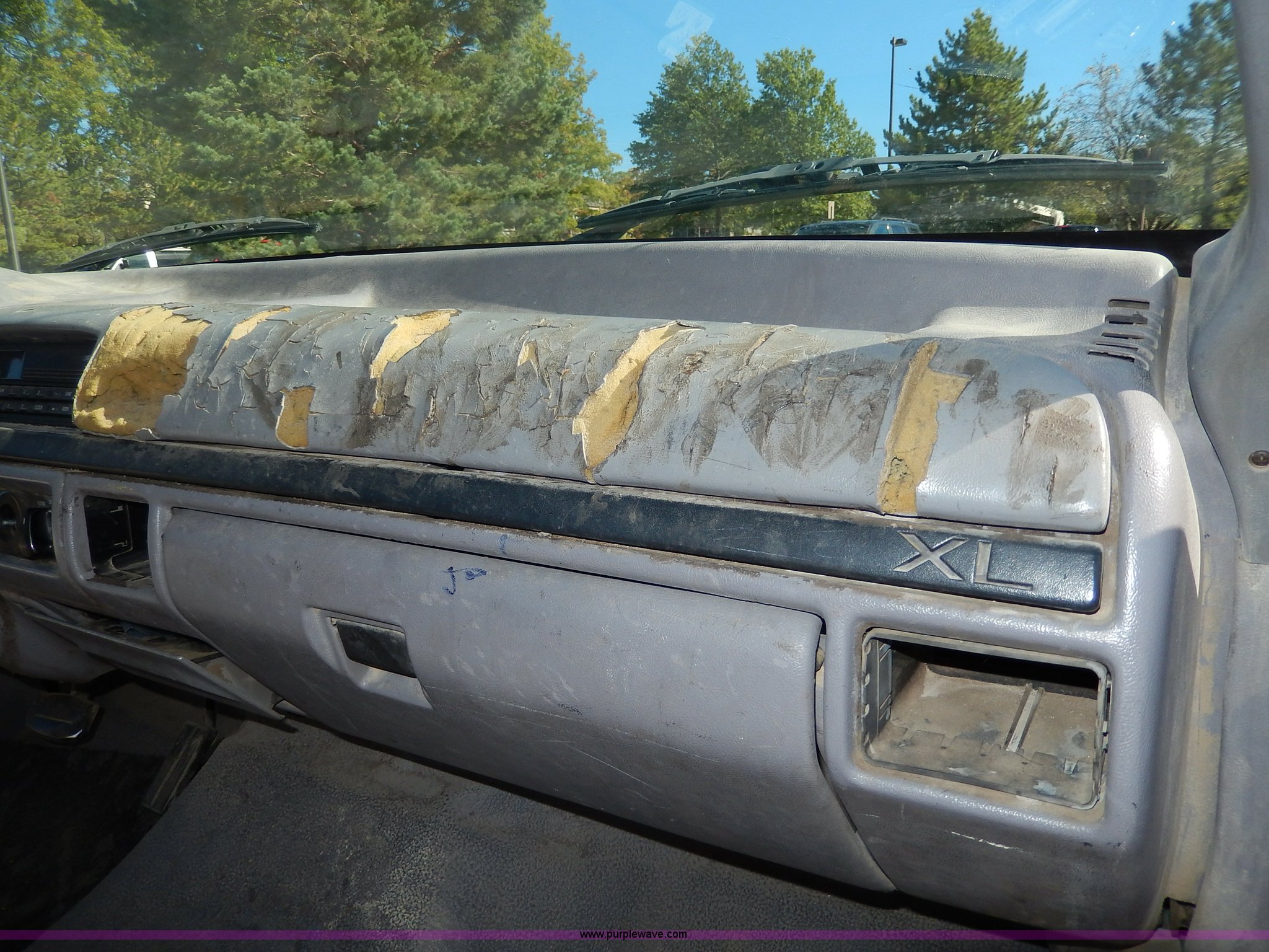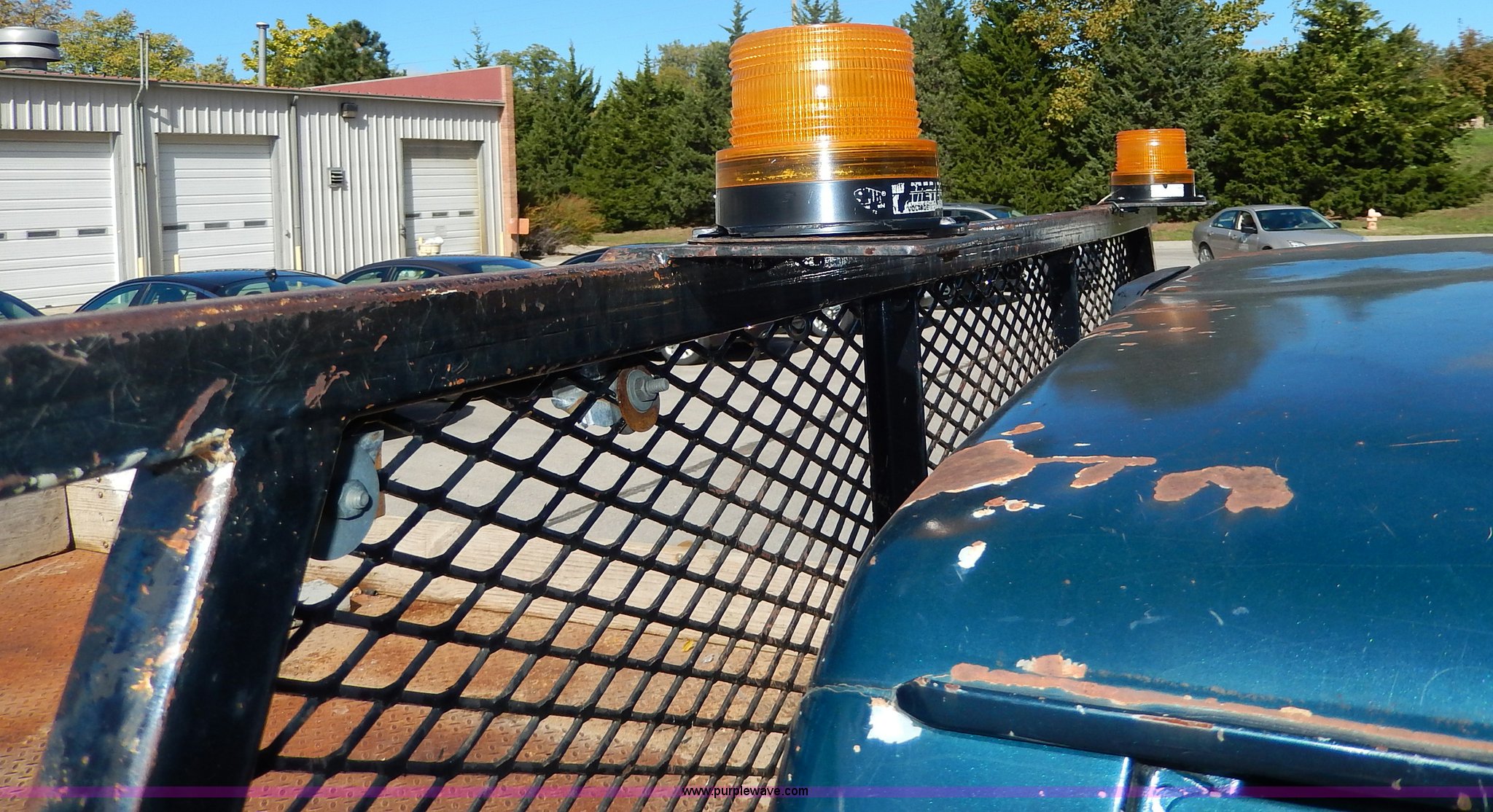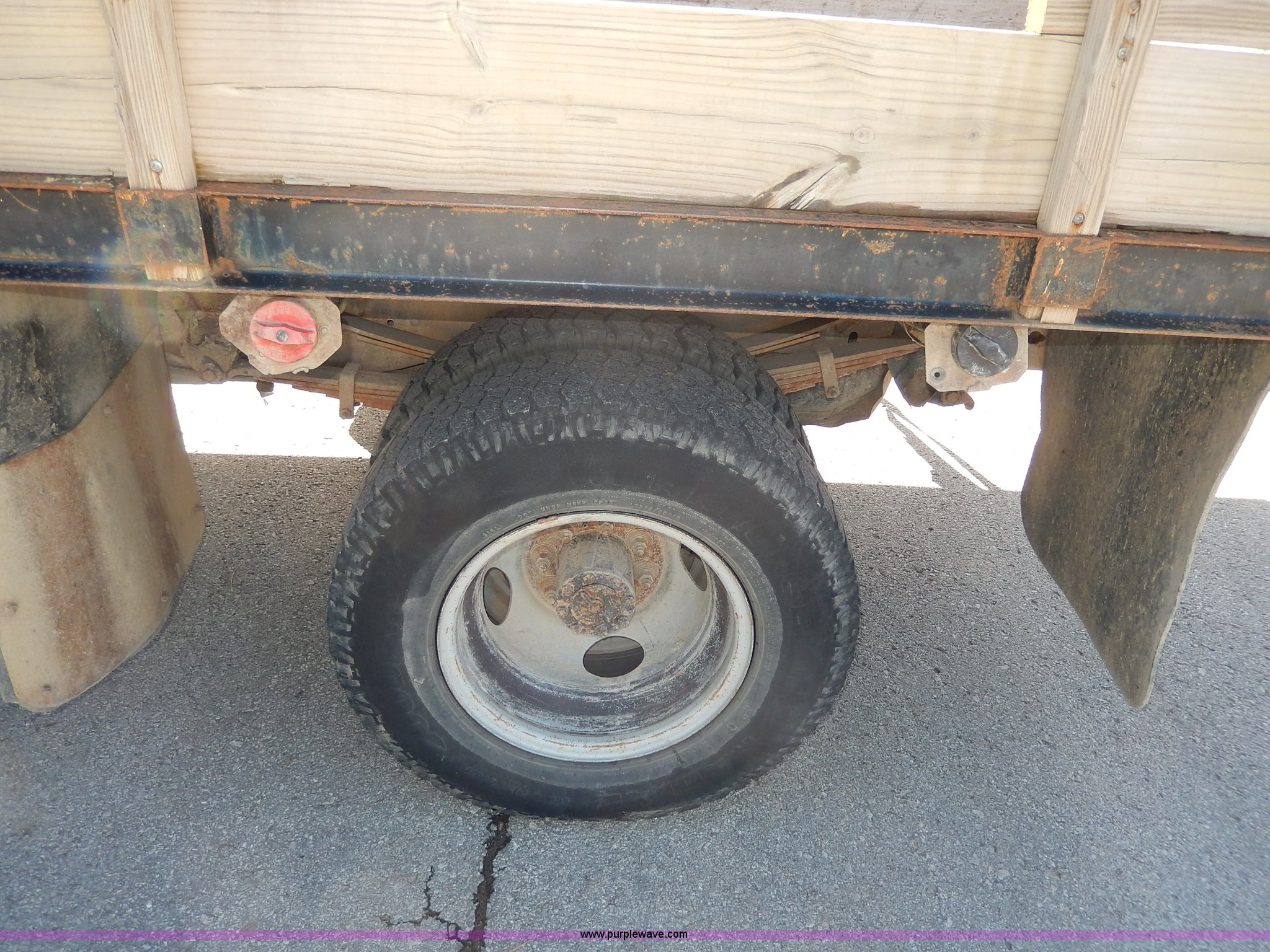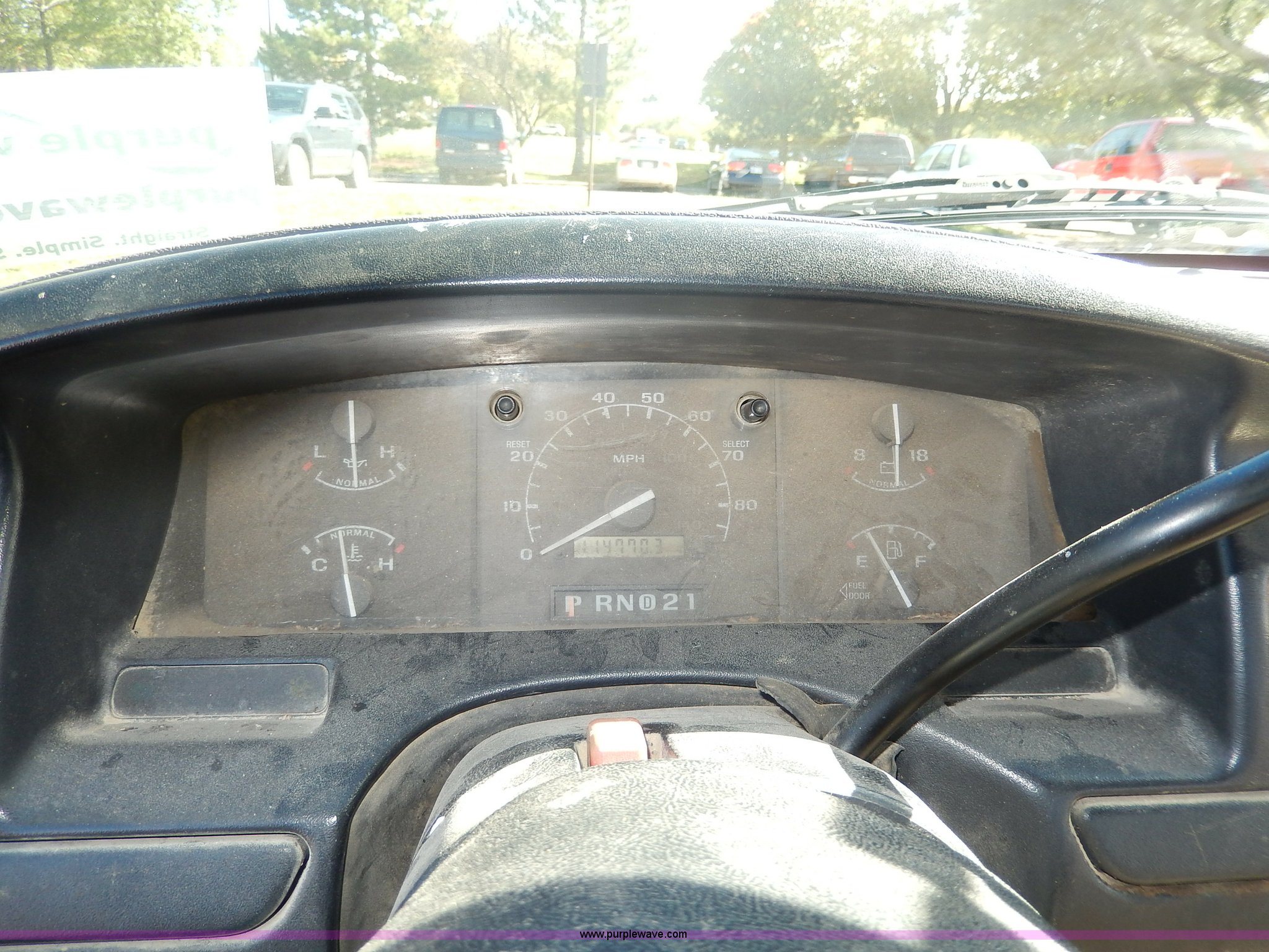 Purple Wave is selling a used Passenger Vehicle in Kansas. This item is a 1997 Ford F350 XL flatbed truck with the following: 114,770 miles on odometer, 5.8L V8 OHV 16V gas engine, Automatic transmission, Heat, AM/FM, Manual windows and locks, Vinyl interior, 10' x 89" flatbed, Headache rack, Strobe light, Steel construction, Stake pockets, Wood side boards, Dual fuel tanks, Receiver hitch, Trailer wiring, 215/85R16 tires, Interior/exterior cosmetic damage, Rust, Dents and scratches, Dash cracked, Headliner damaged