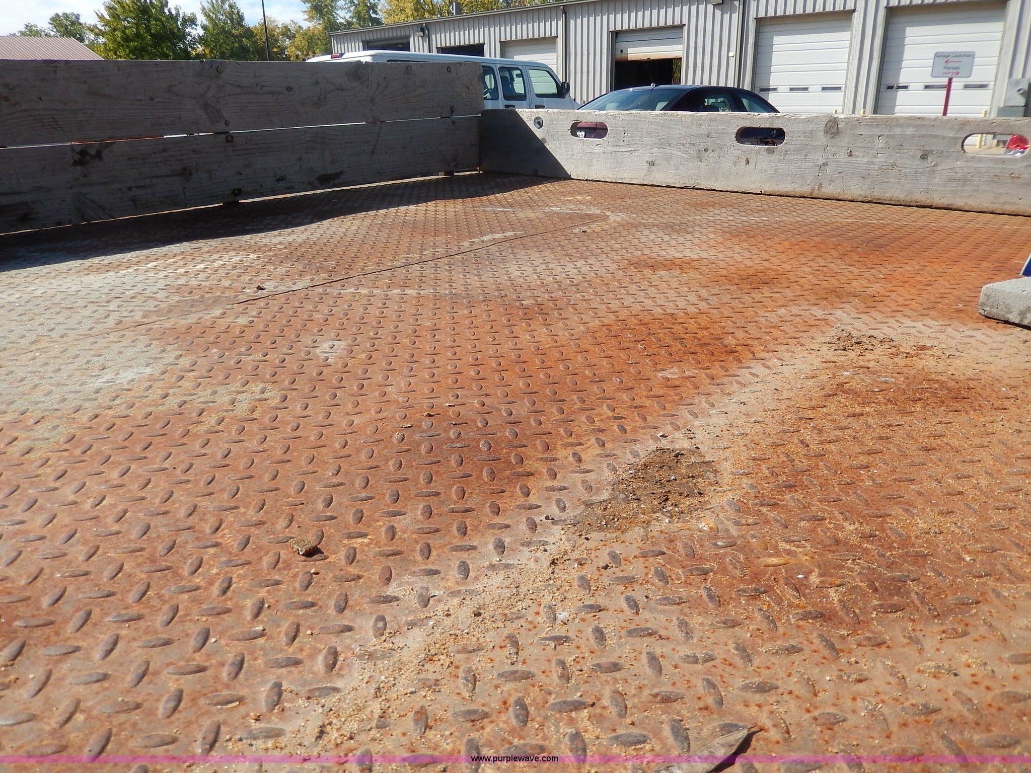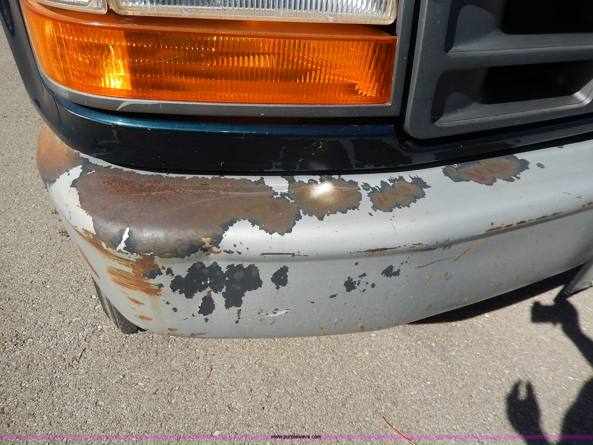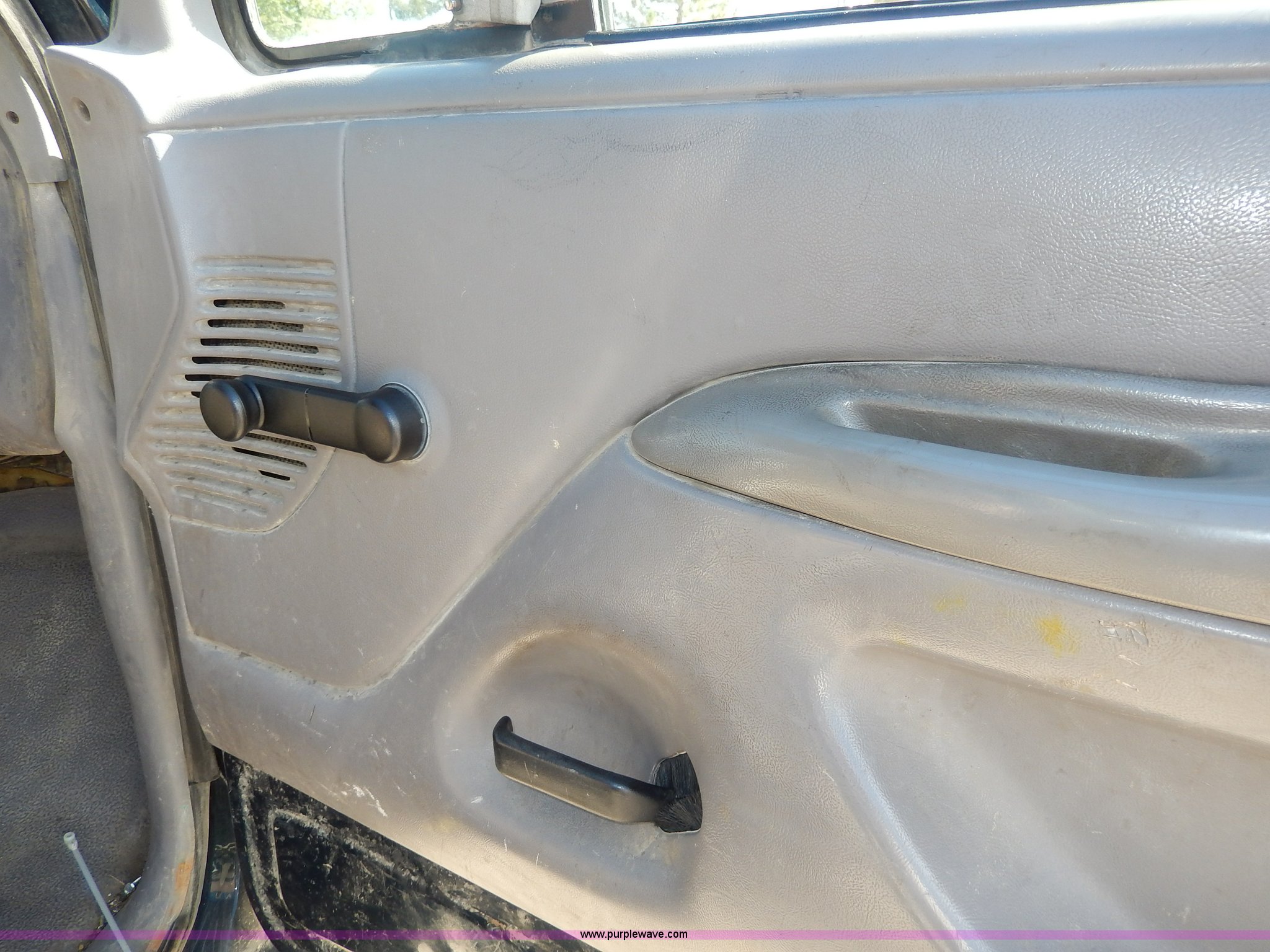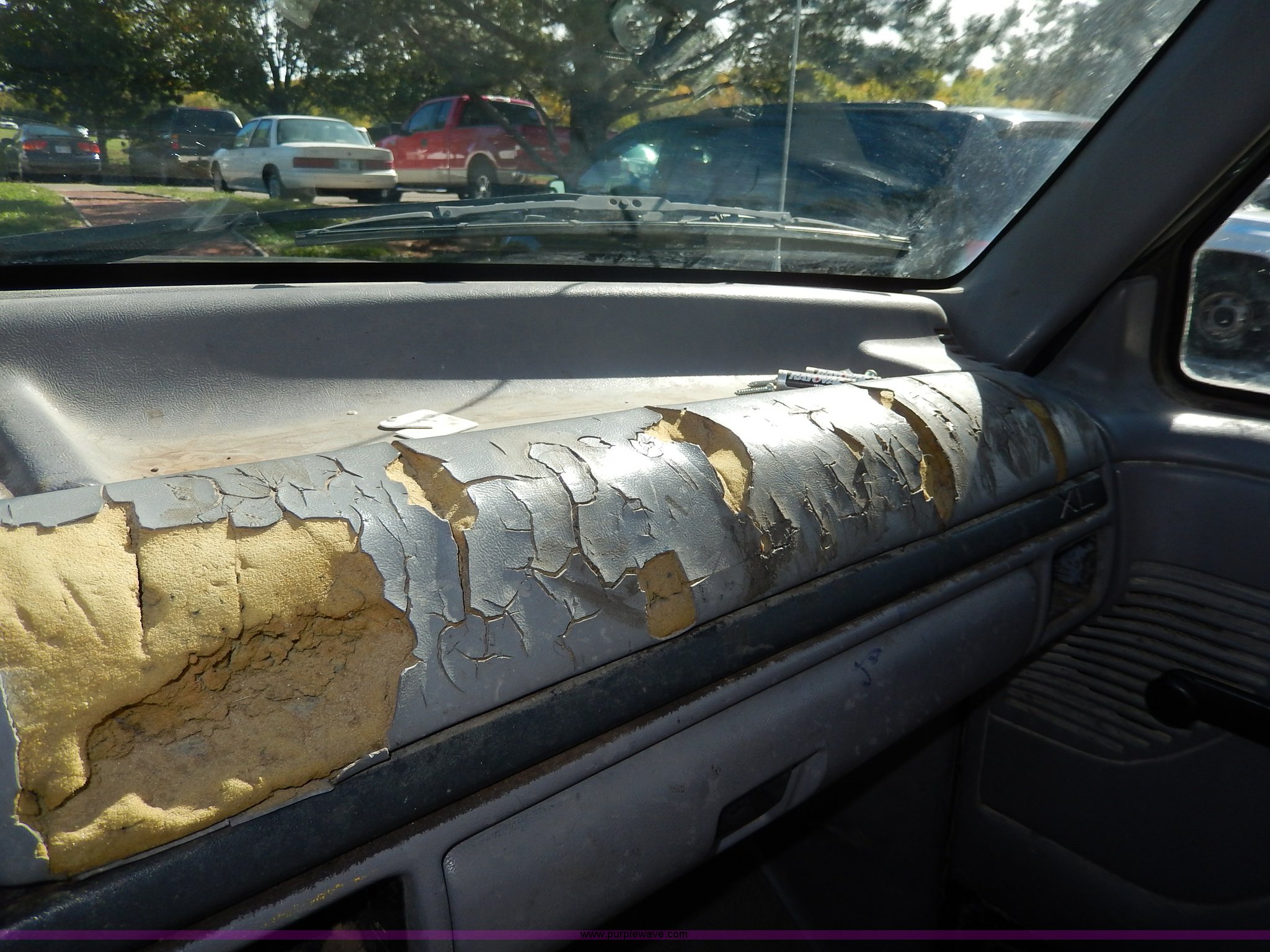 Purple Wave is selling a used Passenger Vehicle in Kansas. This item is a 1997 Ford F350 XL flatbed truck with the following: 114,770 miles on odometer, 5.8L V8 OHV 16V gas engine, Automatic transmission, Heat, AM/FM, Manual windows and locks, Vinyl interior, 10' x 89" flatbed, Headache rack, Strobe light, Steel construction, Stake pockets, Wood side boards, Dual fuel tanks, Receiver hitch, Trailer wiring, 215/85R16 tires, Interior/exterior cosmetic damage, Rust, Dents and scratches, Dash cracked, Headliner damaged