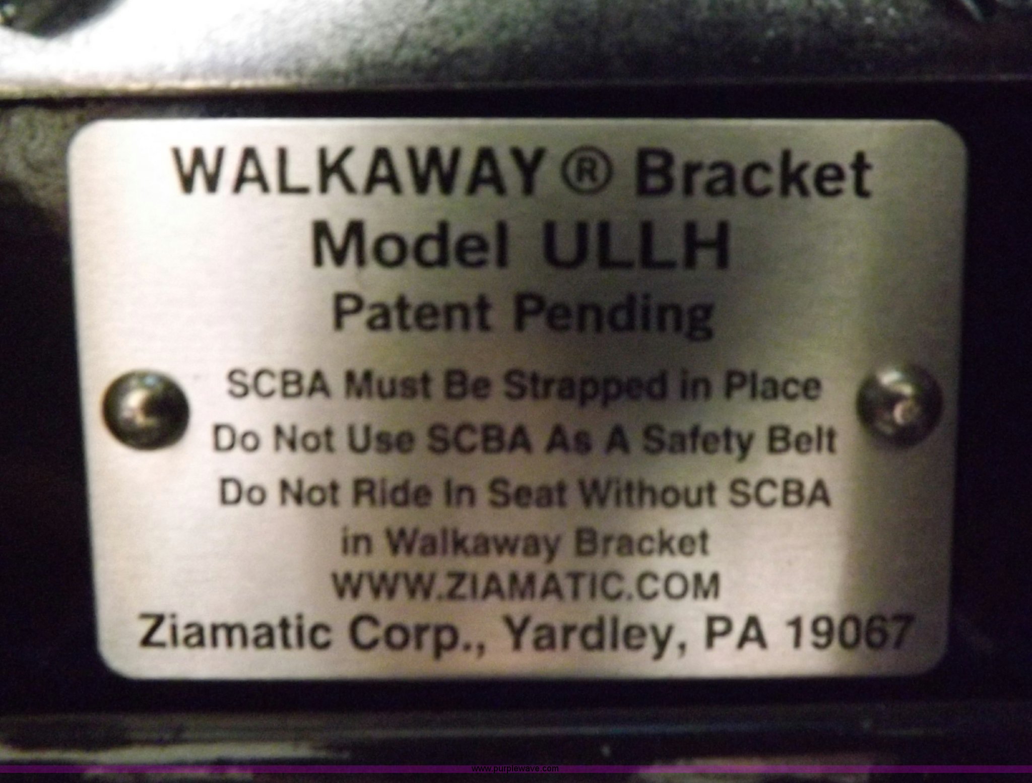 Purple Wave is selling a used Tools in Kansas. This item is a Ziamalic Corp walkway bracket seating with the following: Model ULLH, For use with SCBA in fire fighting application vehicles, Fits 2008 Ford F350 trucks