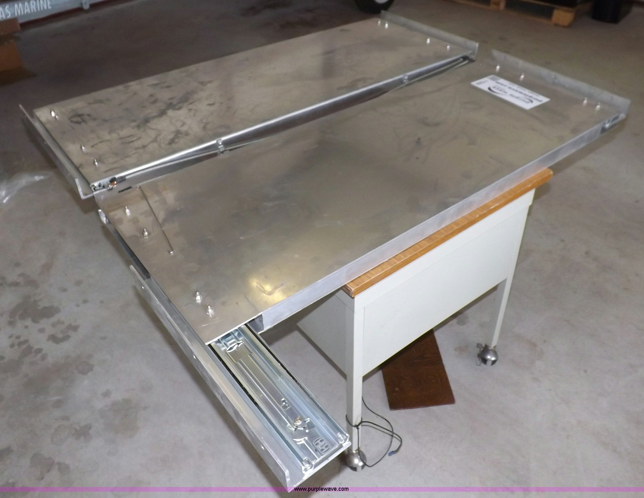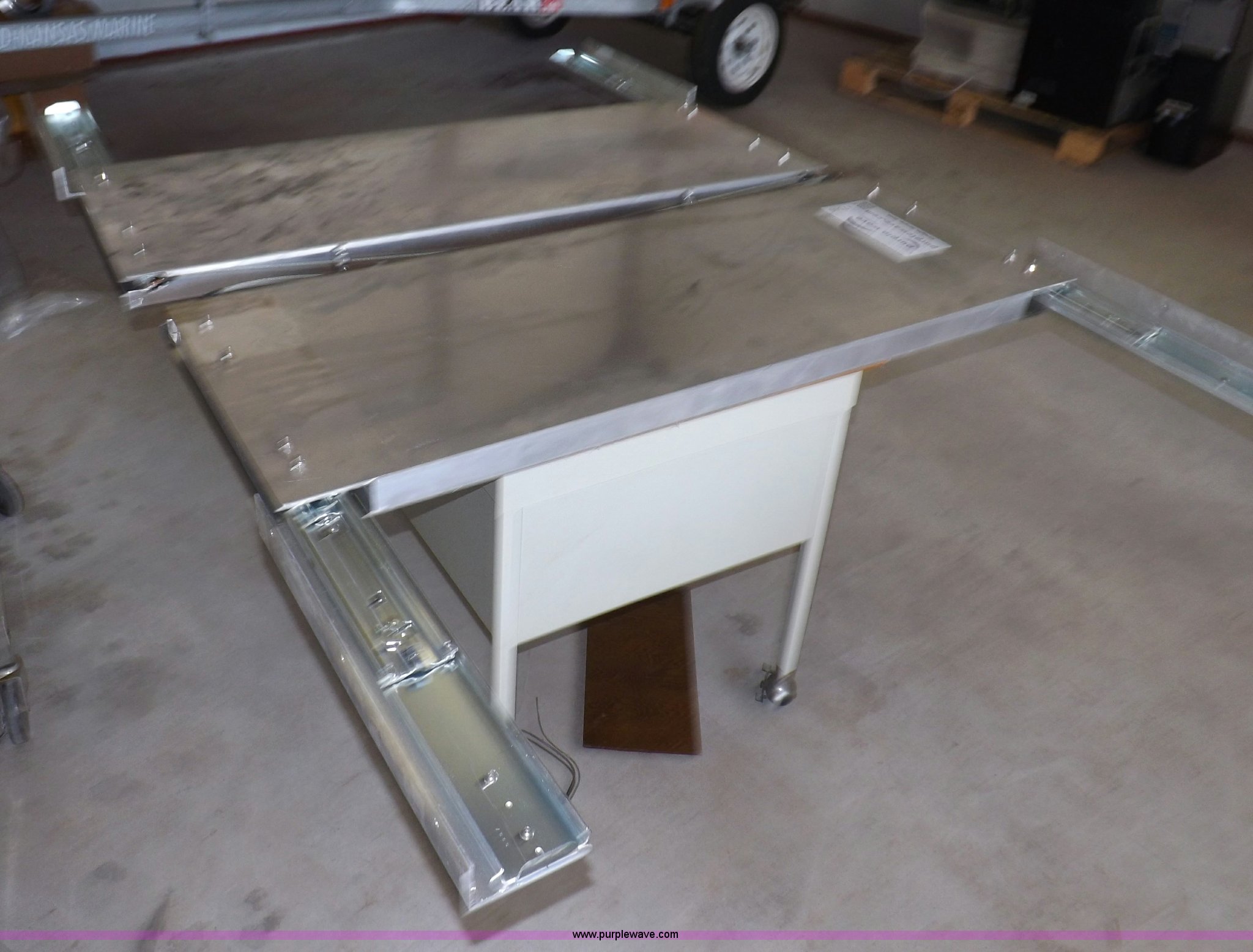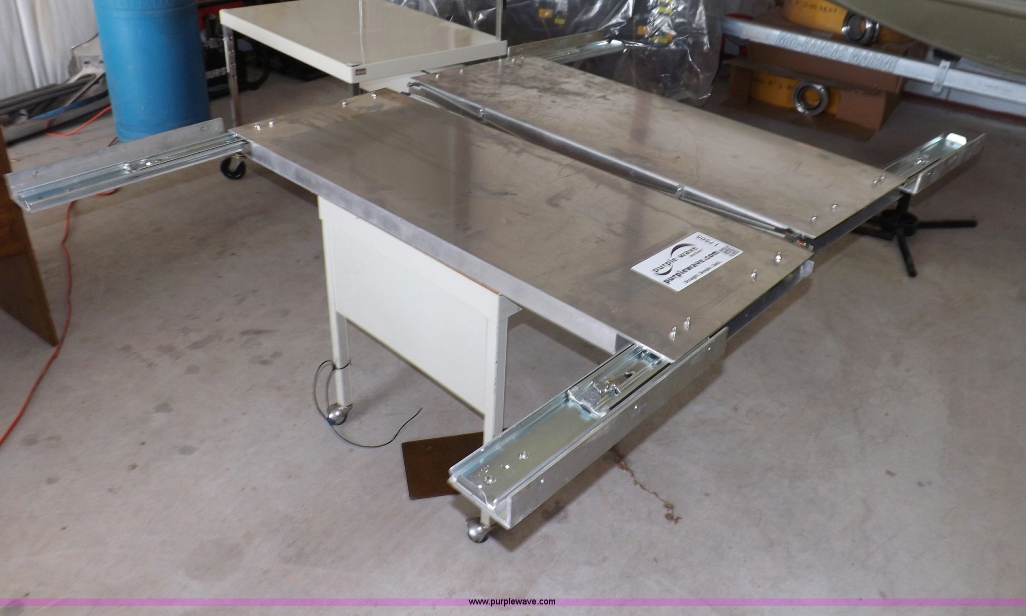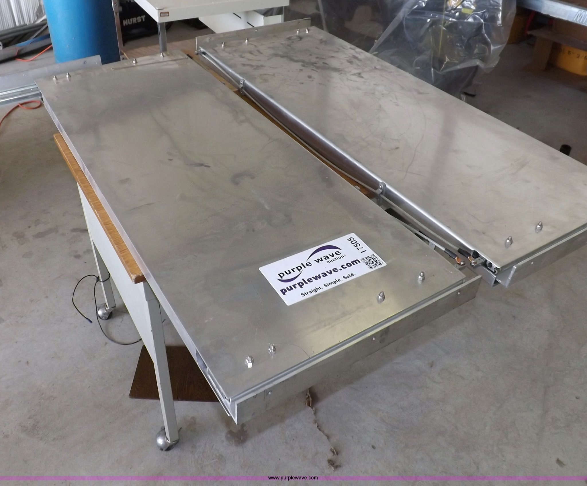 Purple Wave is selling a used Shelving and Storage in Kansas. This item is a (2) aluminum retractable shelf units with the following: 48"W x 18"D shelf, 50"W x 18"D mounting dimensions, Linkage needs repaired on one unit