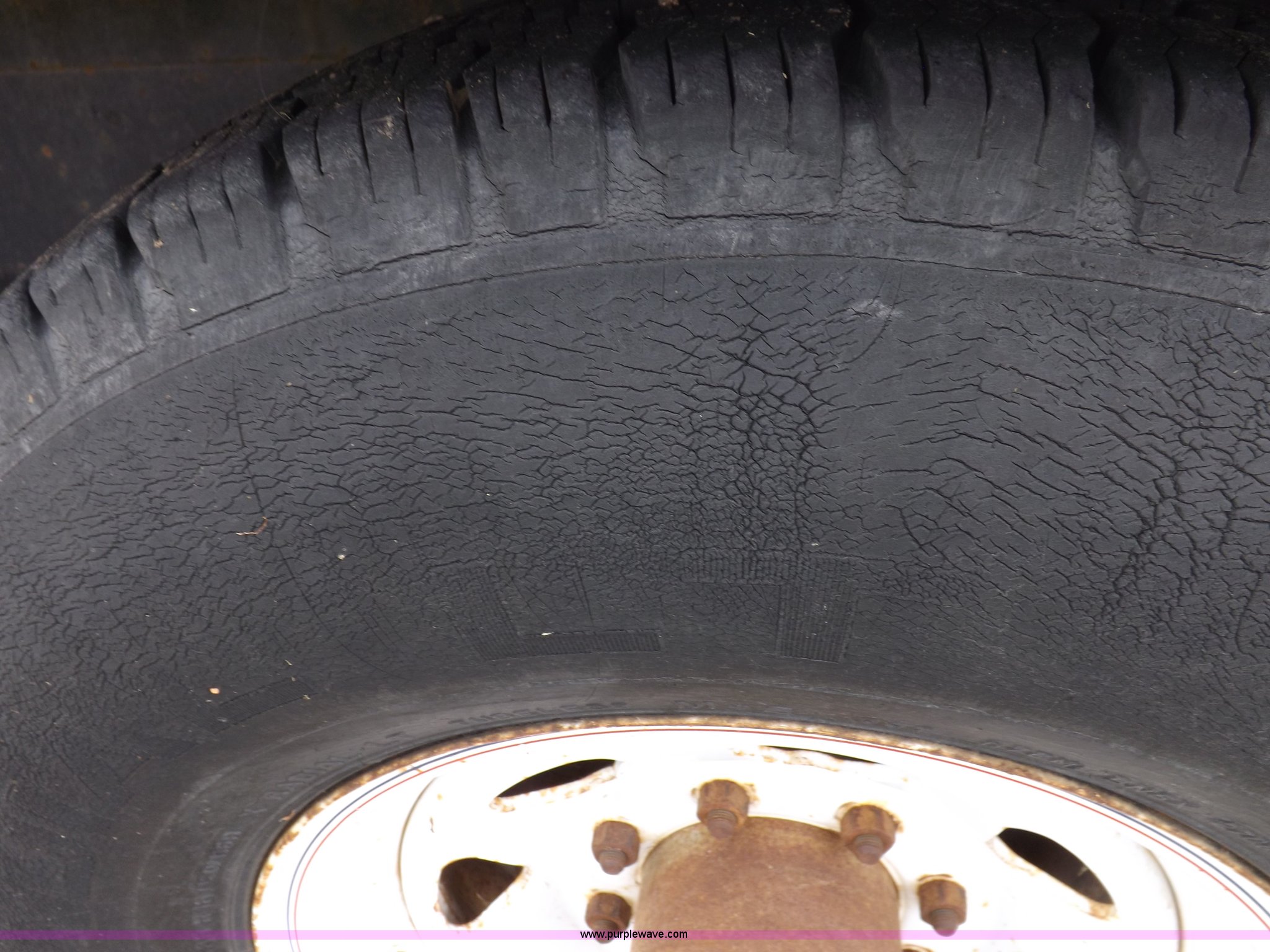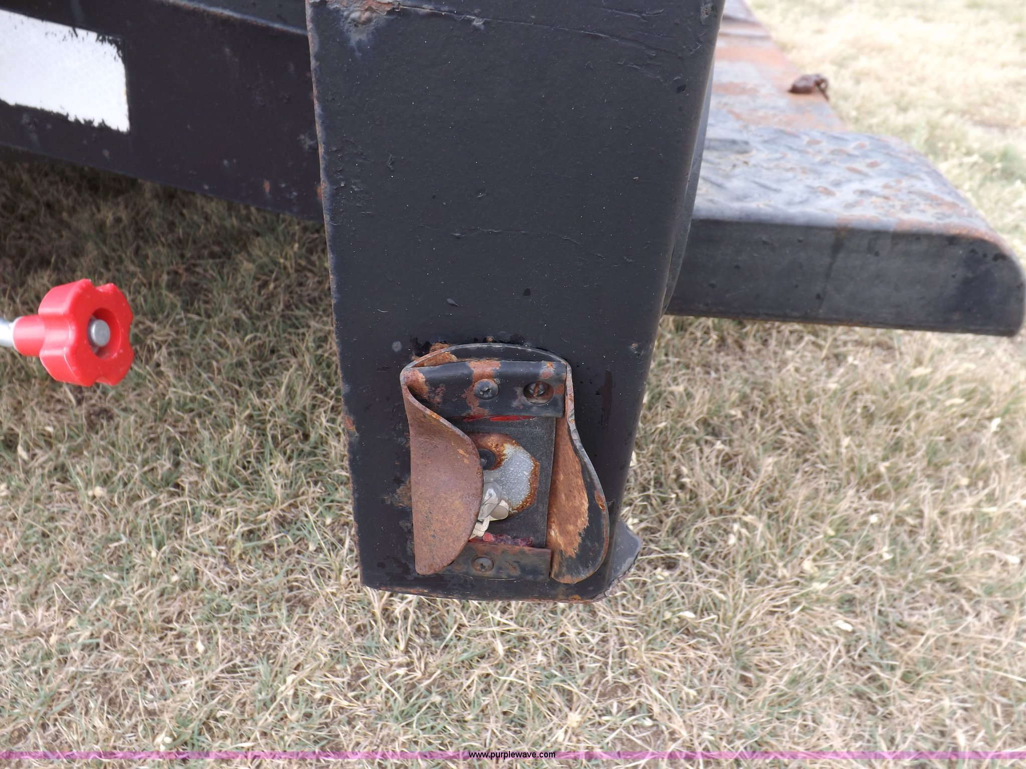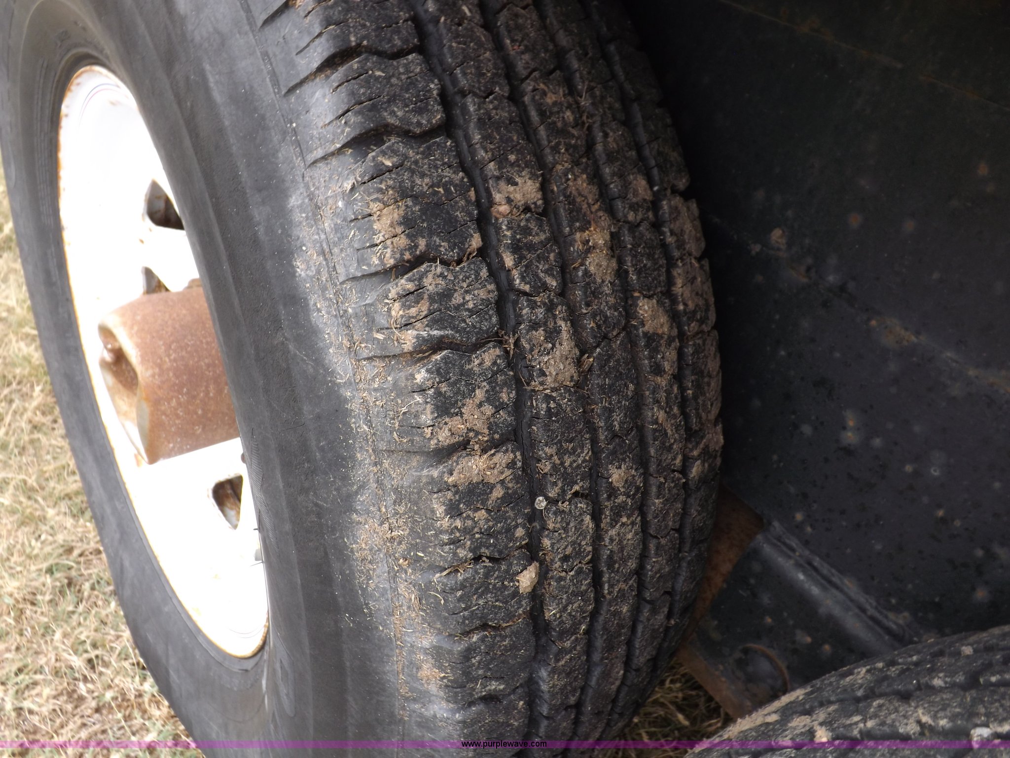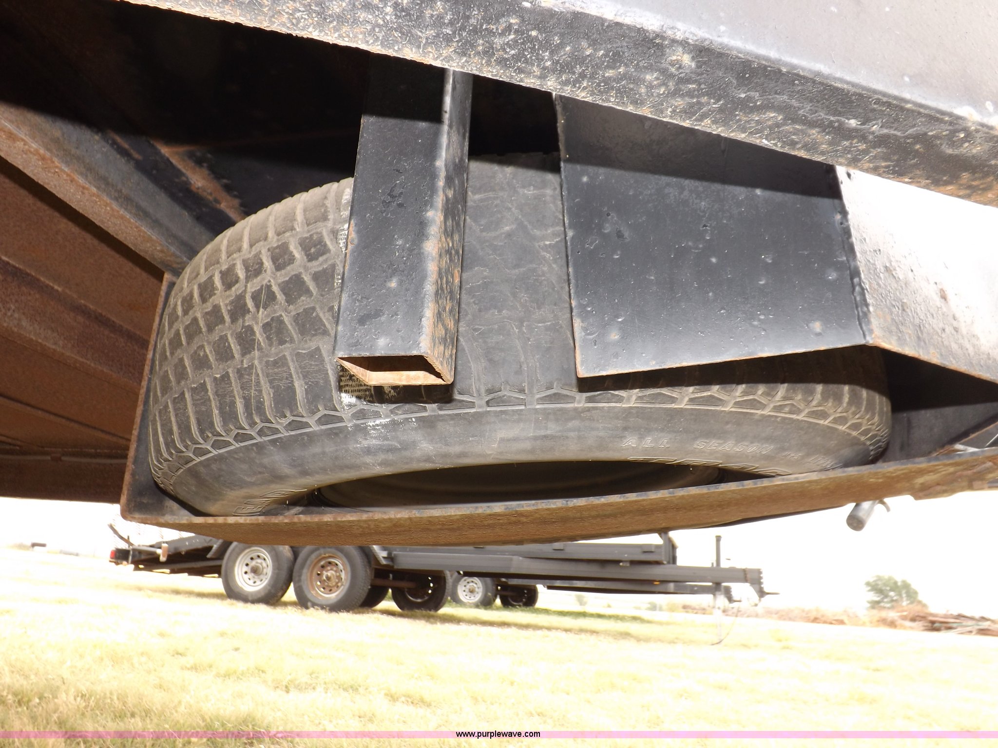 Purple Wave is selling a used Car or Utility Trailer in Kansas. This item is a 1998 shop built tandem axle trailer with the following: 20'8"L x 80"W, 4'L dovetail, Tread plate deck, Stake pockets, Rear stabilizers, Ramp pockets, Side D-ring tie downs, 2" adjustable height ball, Jack stand, Six pin trailer wiring, Safety chains, Eight bolt hubs, 235/85R16 tires, Weathered, Lights damaged, Tongue bent, Unit# GR217