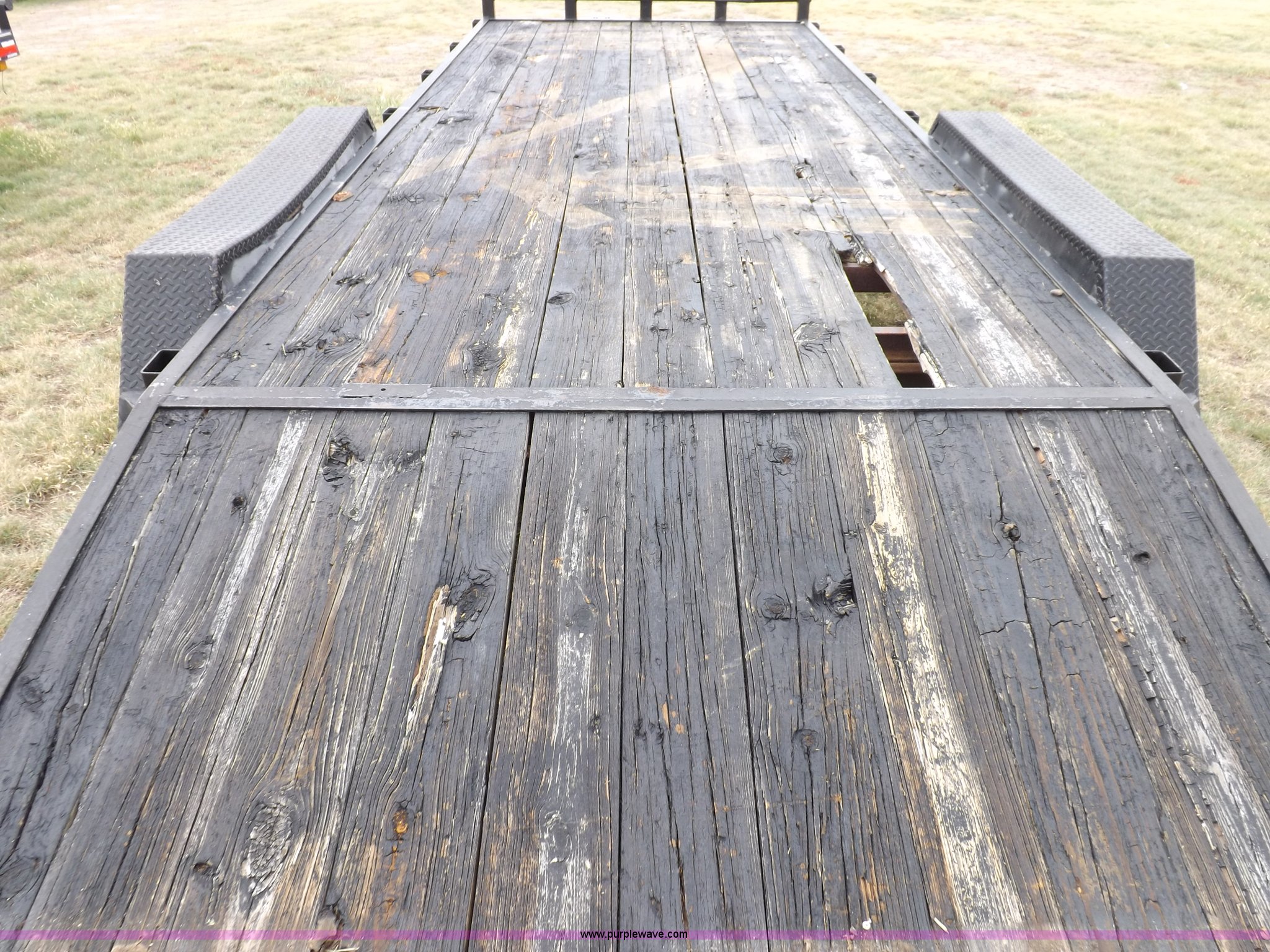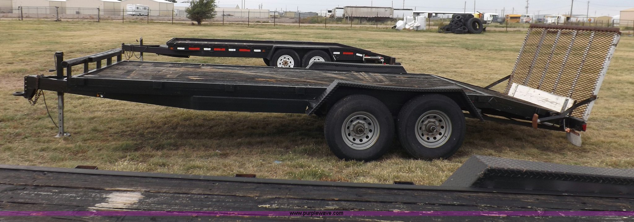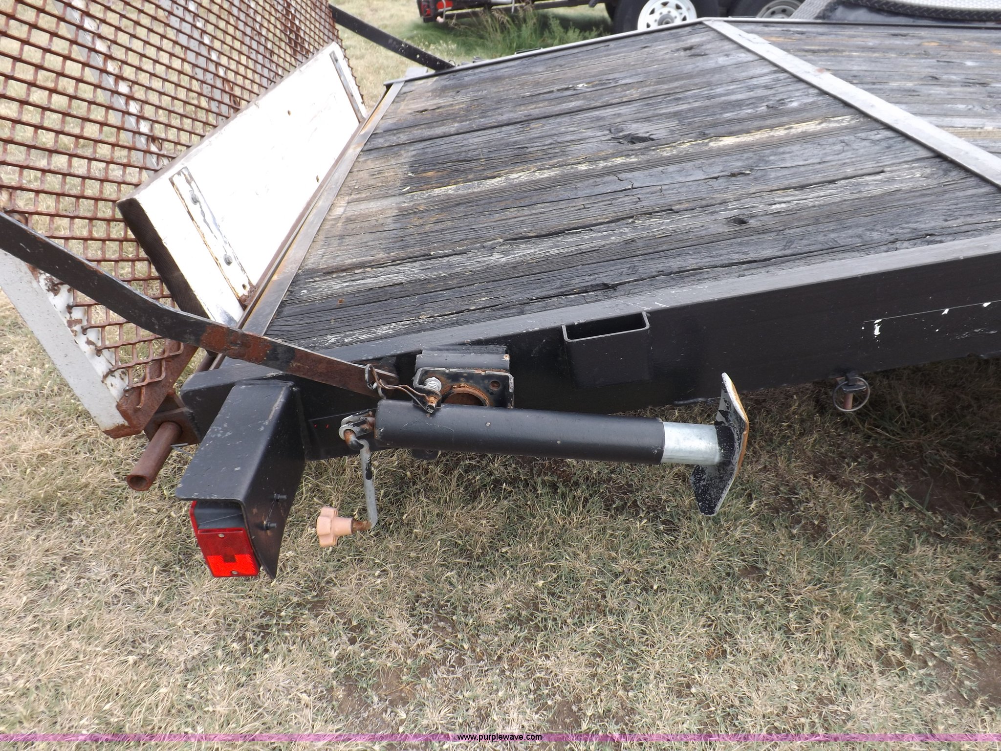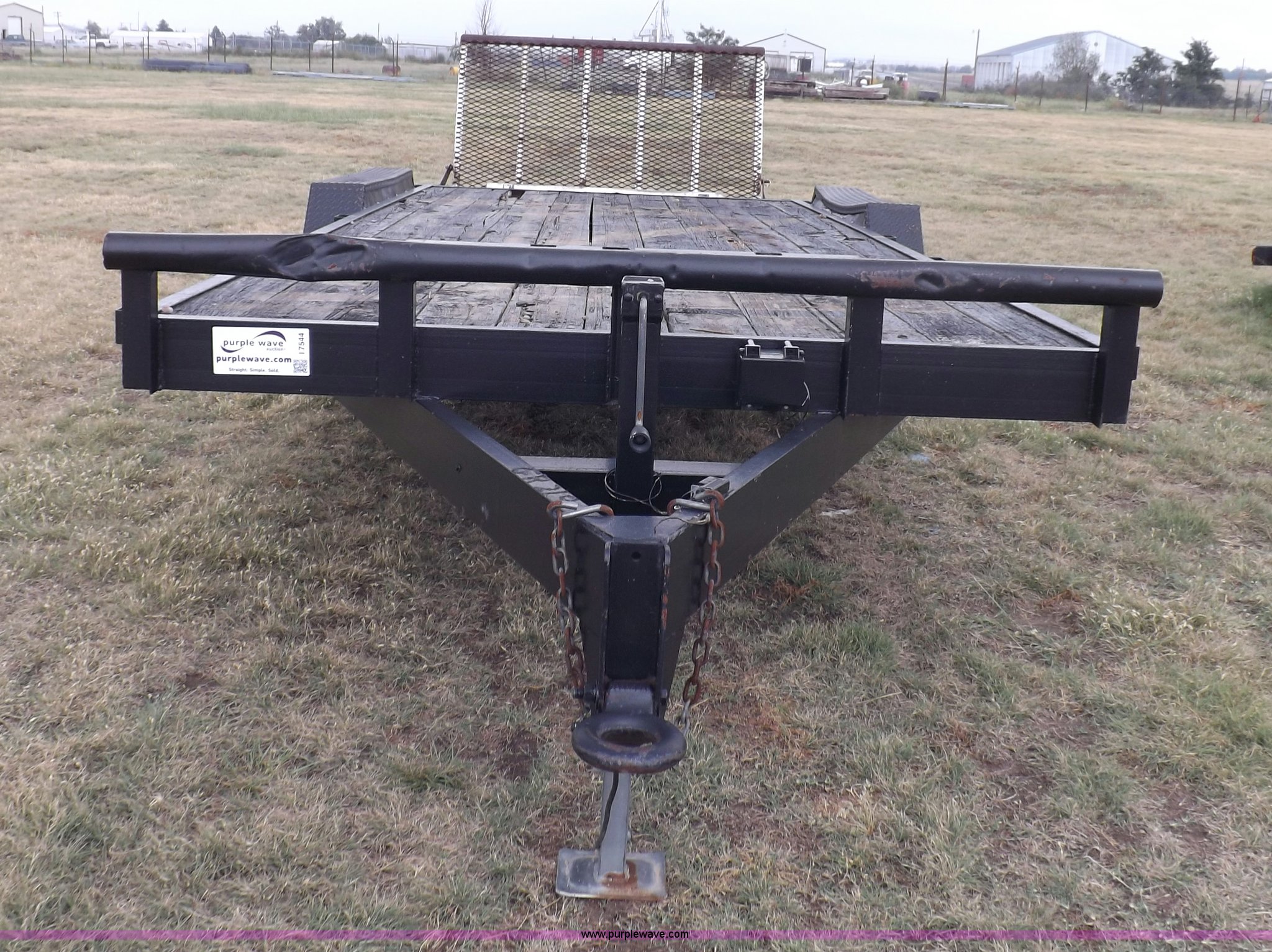 Purple Wave is selling a used Equip. Trailer in Kansas. This item is a 2003 Paris tandem axle trailer with the following: 20'L x 83"W, 4'L dovetail, Wood deck, 4'L x 81"W expanded metal ramp, Stake pockets, Rear stabilizers, Ramp pockets, Adjustable pintle hitch, Jack stand, Break-away device, Safety chains, Six pin trailer wiring, Eight bolt hubs, 235/85R16 tires, Side rail bent, Deck needs replaced, Fenders damaged, Lights damaged, Unit# GR219