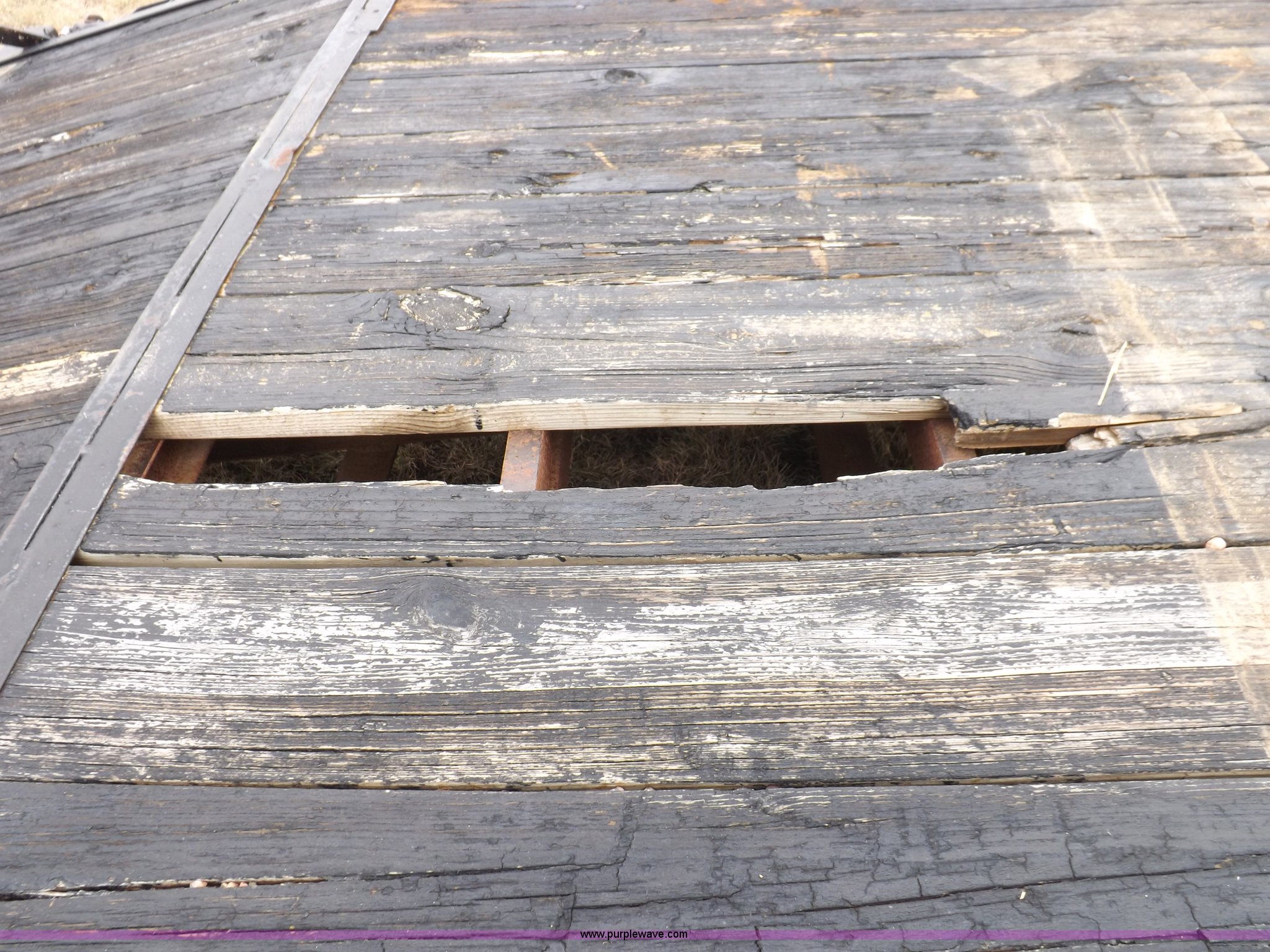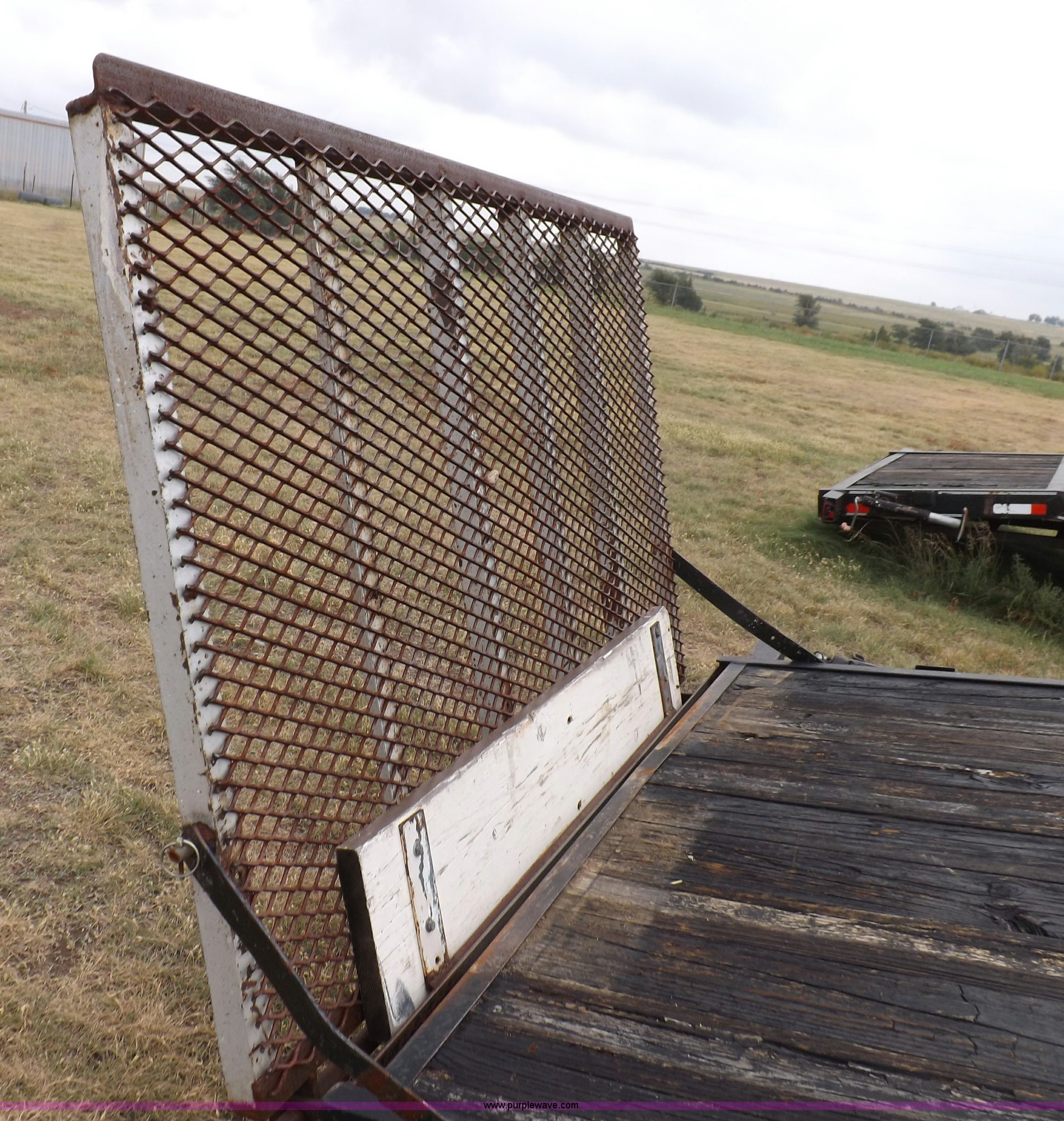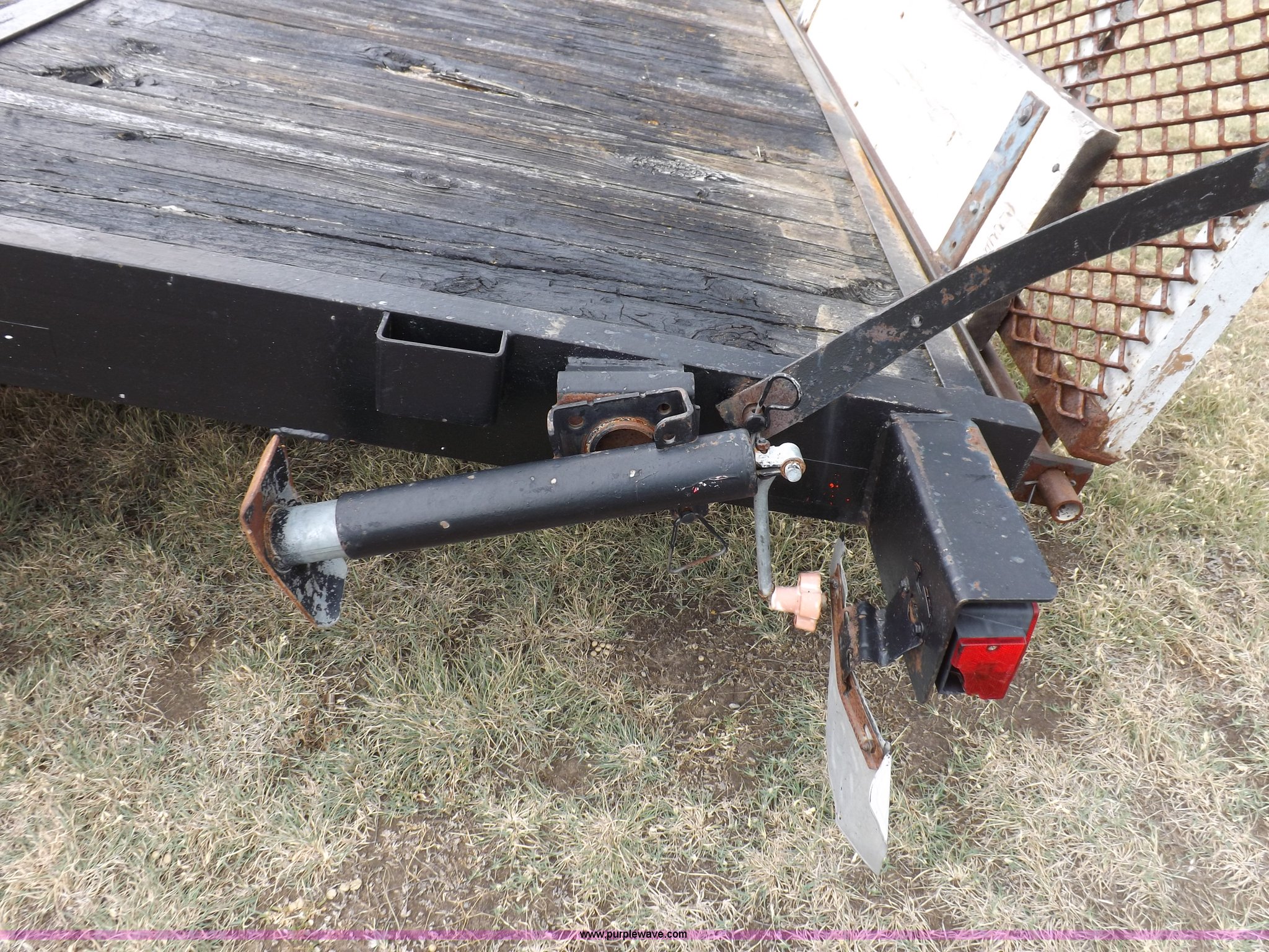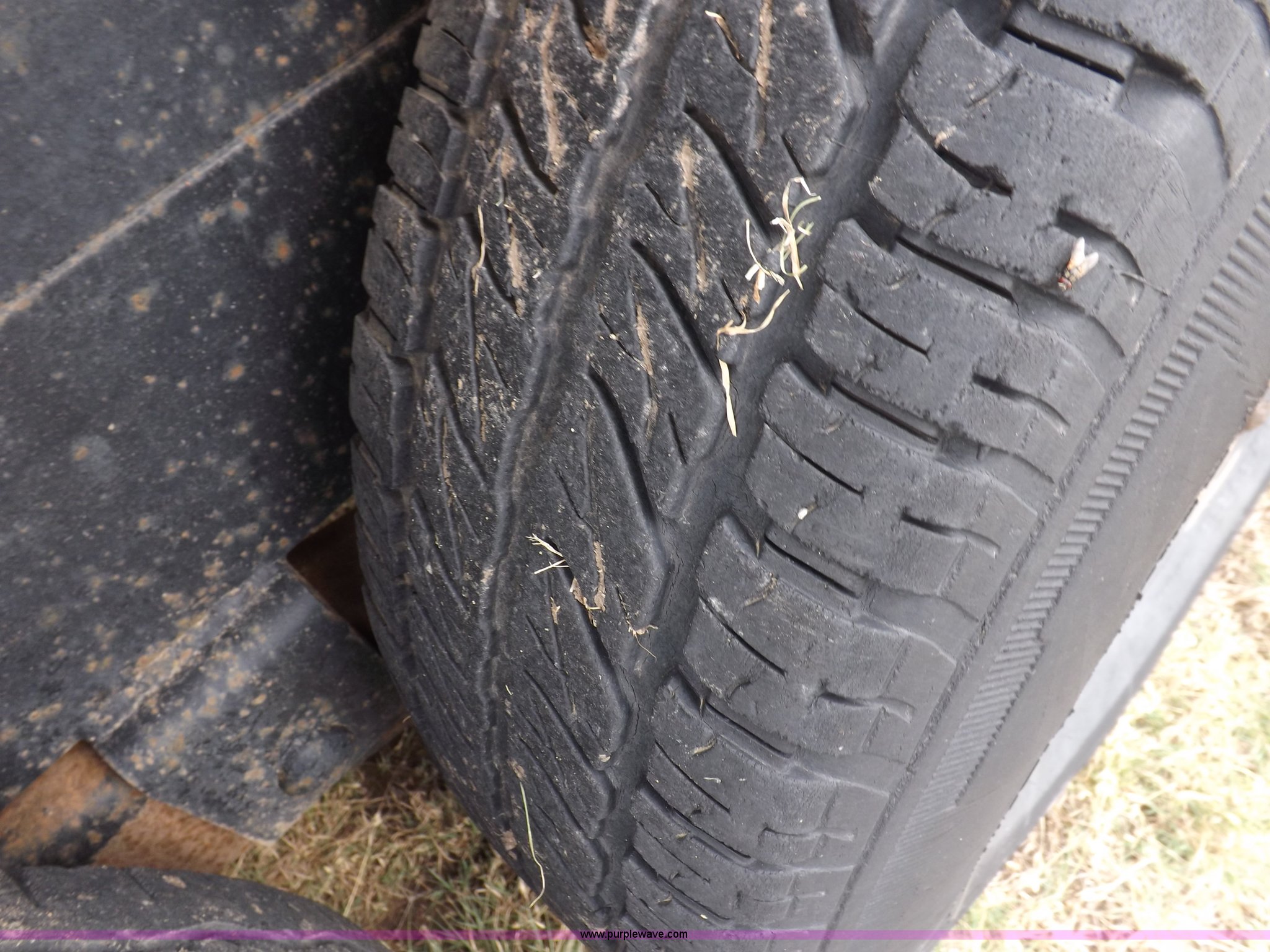 Purple Wave is selling a used Equip. Trailer in Kansas. This item is a 2003 Paris tandem axle trailer with the following: 20'L x 83"W, 4'L dovetail, Wood deck, 4'L x 81"W expanded metal ramp, Stake pockets, Rear stabilizers, Ramp pockets, Adjustable pintle hitch, Jack stand, Break-away device, Safety chains, Six pin trailer wiring, Eight bolt hubs, 235/85R16 tires, Side rail bent, Deck needs replaced, Fenders damaged, Lights damaged, Unit# GR219