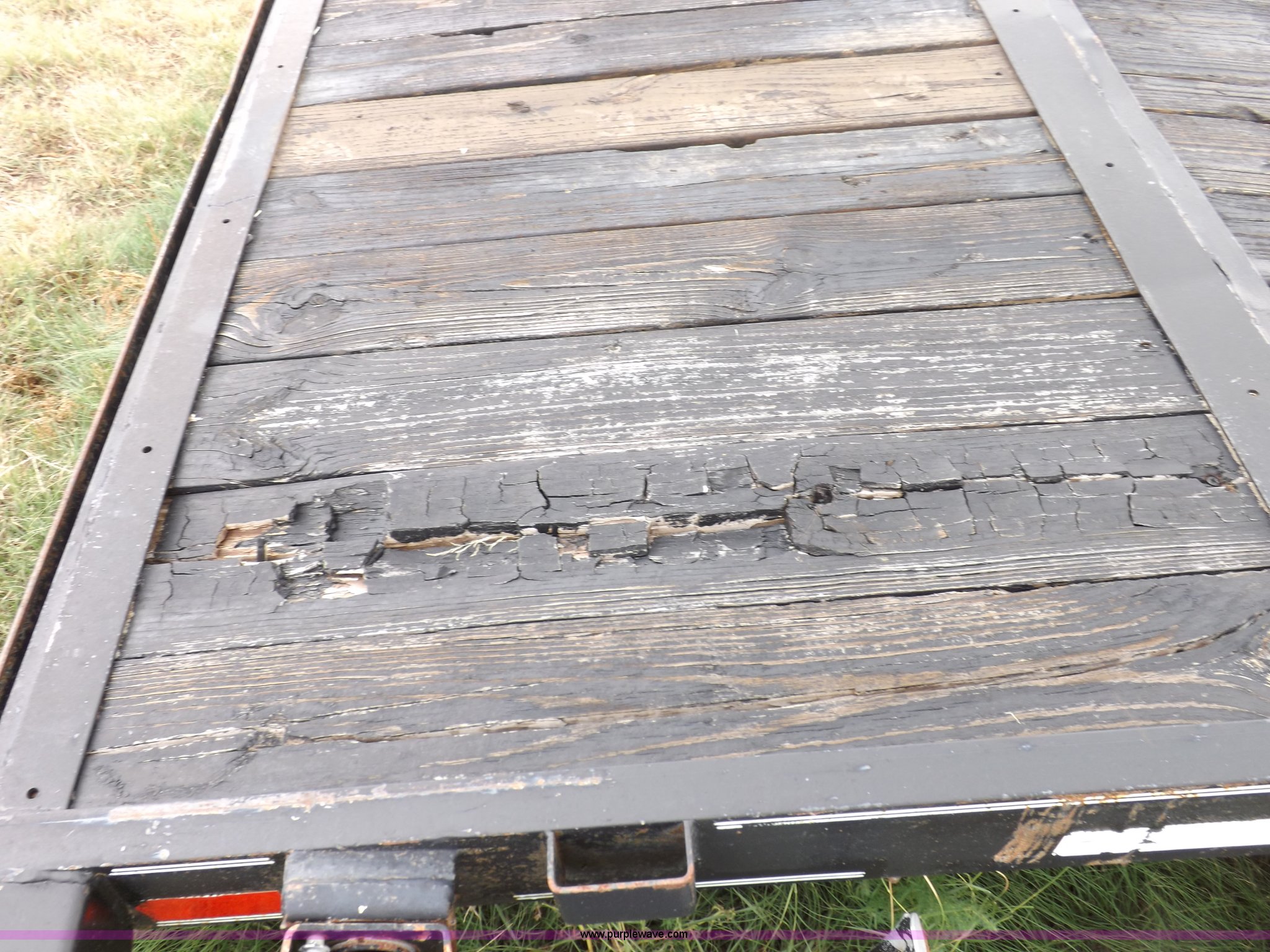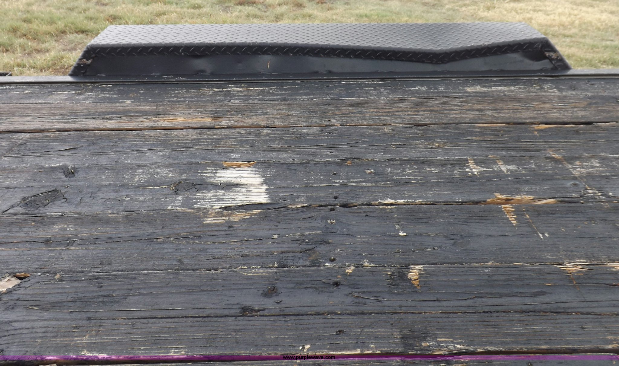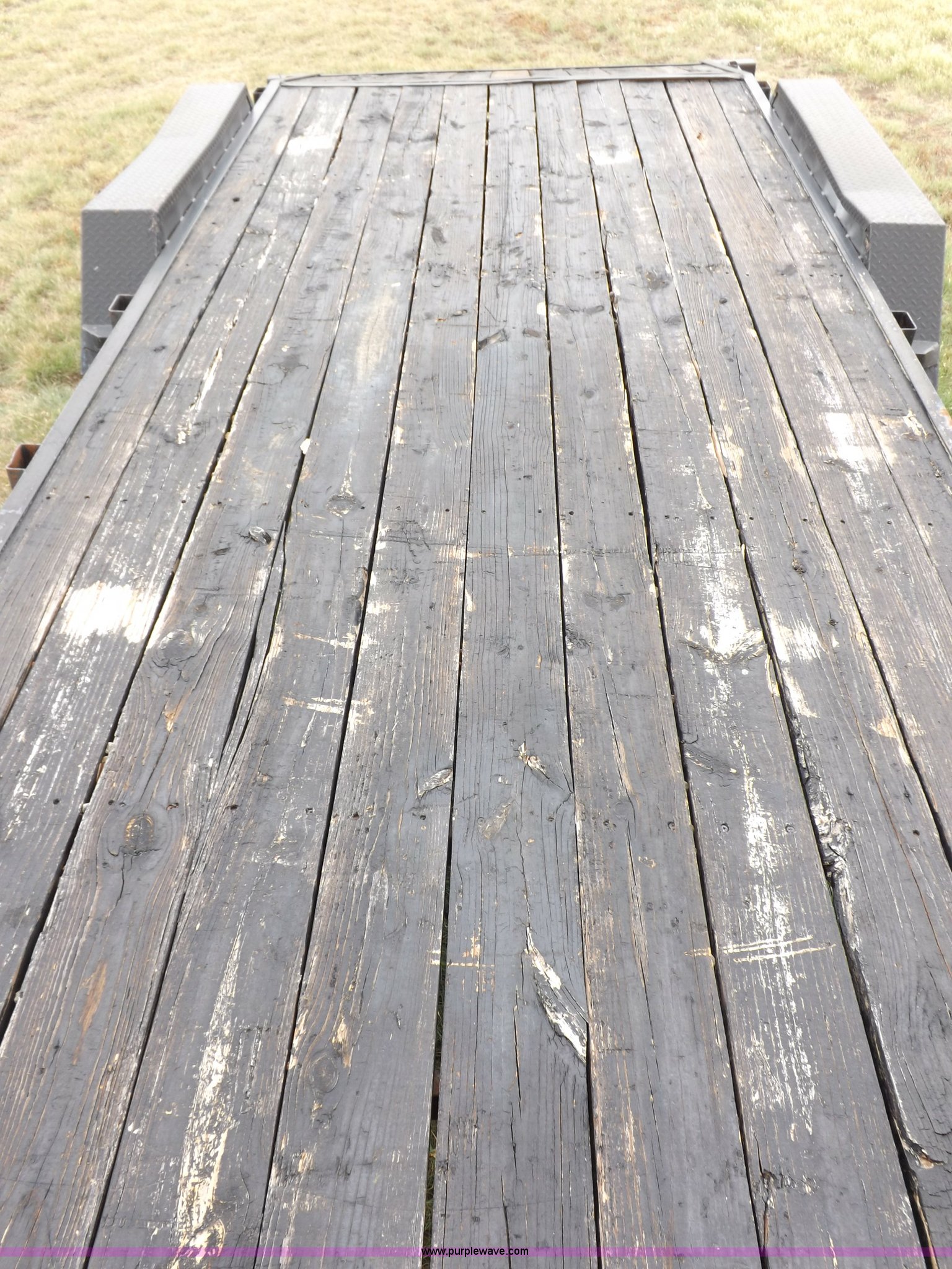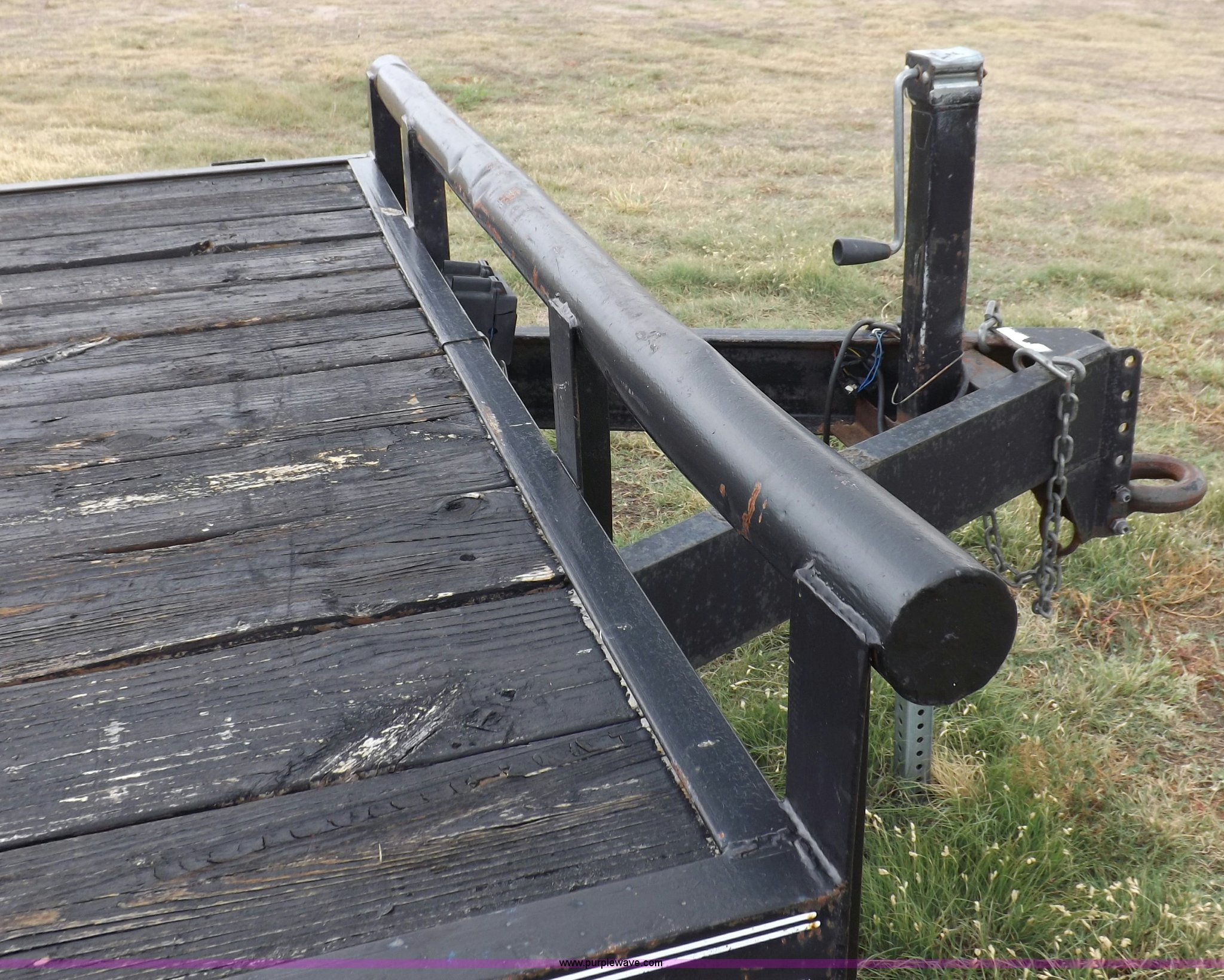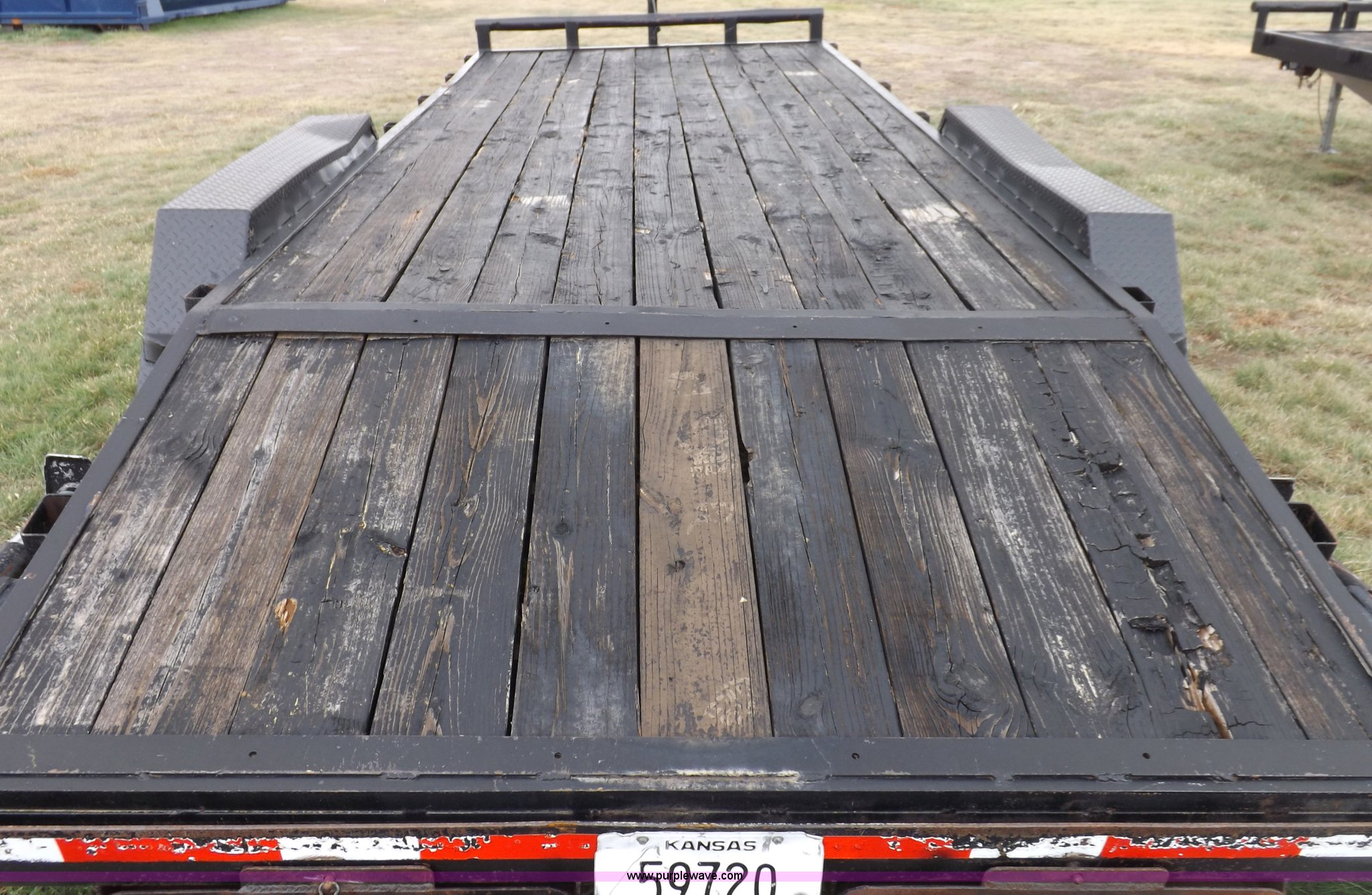 Purple Wave is selling a used Car or Utility Trailer in Kansas. This item is a 2003 Paris tandem axle trailer with the following: 20'L x 83"W, 4'L dovetail, Wood deck, Stake pockets, Rear stabilizers, Ramp pockets, Adjustable pintle hitch, Jack stand, Break-away device, Not wired, Safety chains, Six pin trailer wiring, Eight bolt hubs, 235/85R16 tires, Side rail bent, Deck needs replaced, Fenders damaged, Lights damaged, Unit# GR218