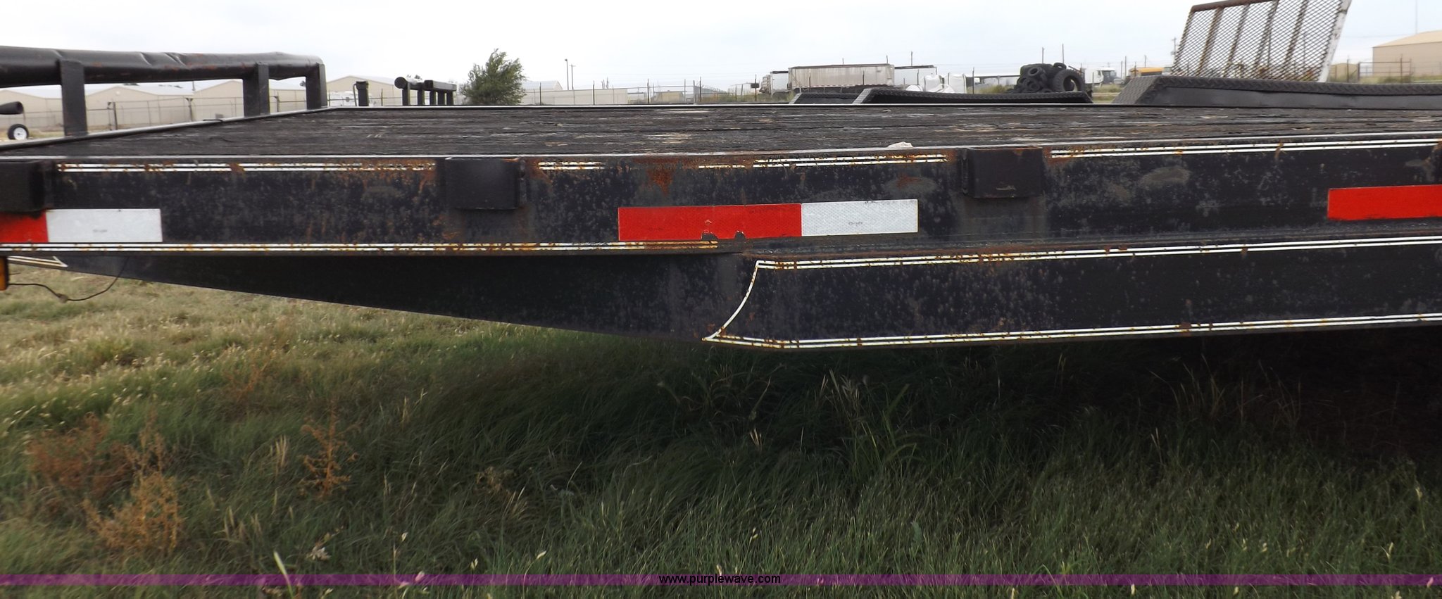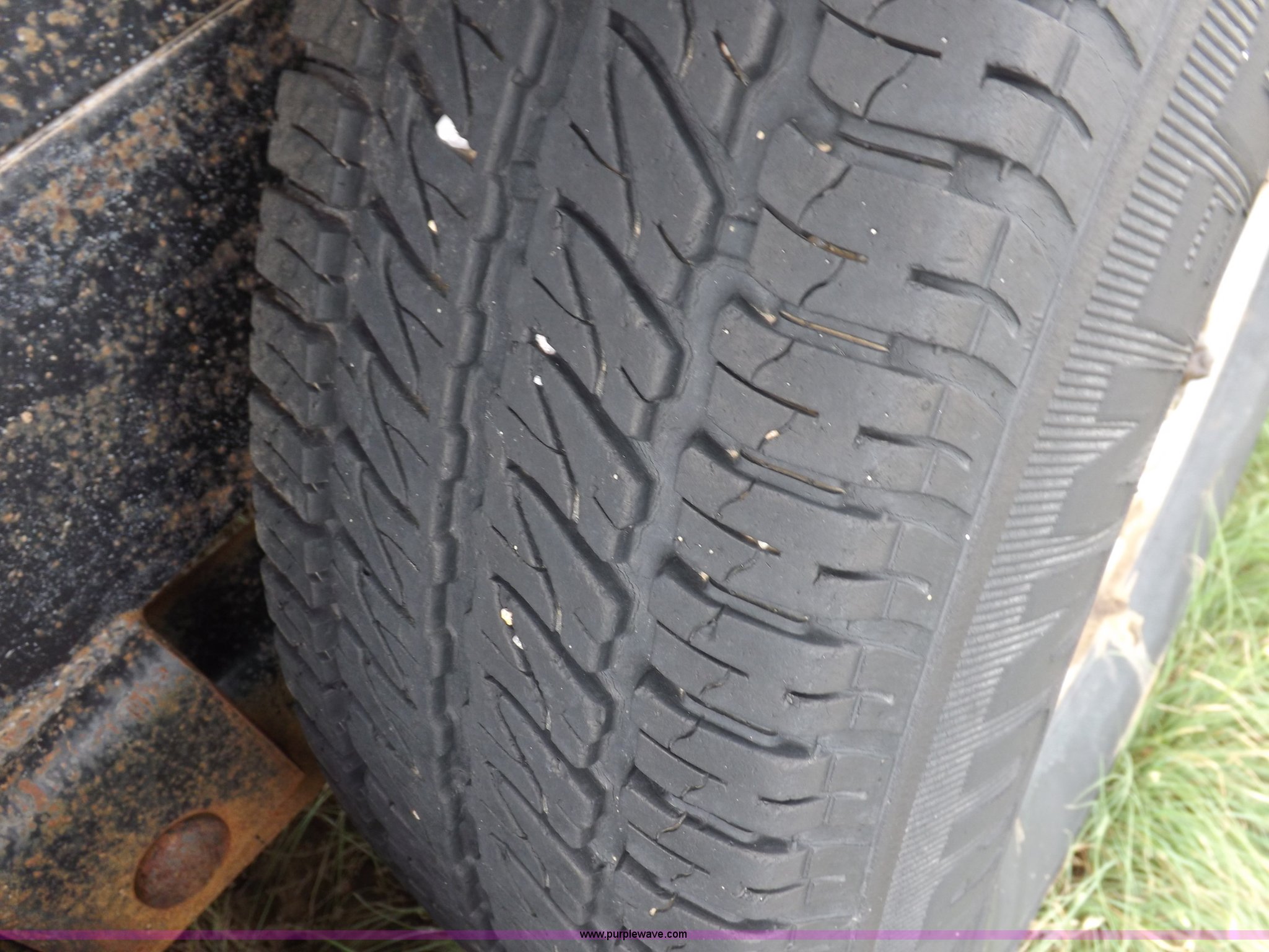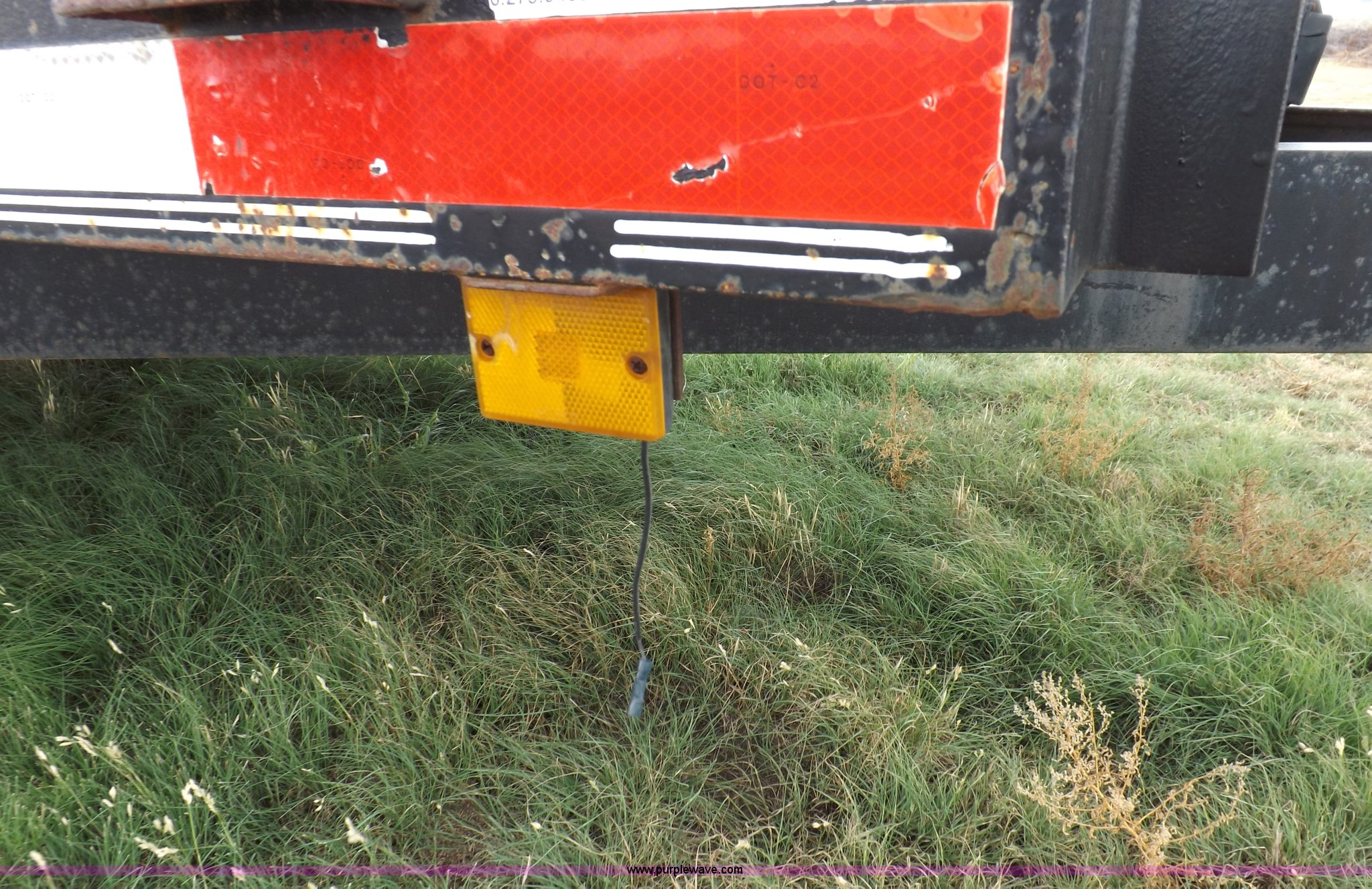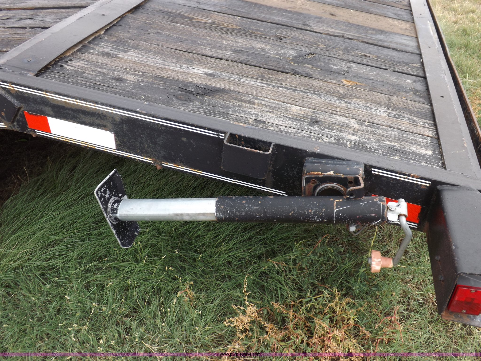 Purple Wave is selling a used Car or Utility Trailer in Kansas. This item is a 2003 Paris tandem axle trailer with the following: 20'L x 83"W, 4'L dovetail, Wood deck, Stake pockets, Rear stabilizers, Ramp pockets, Adjustable pintle hitch, Jack stand, Break-away device, Not wired, Safety chains, Six pin trailer wiring, Eight bolt hubs, 235/85R16 tires, Side rail bent, Deck needs replaced, Fenders damaged, Lights damaged, Unit# GR218