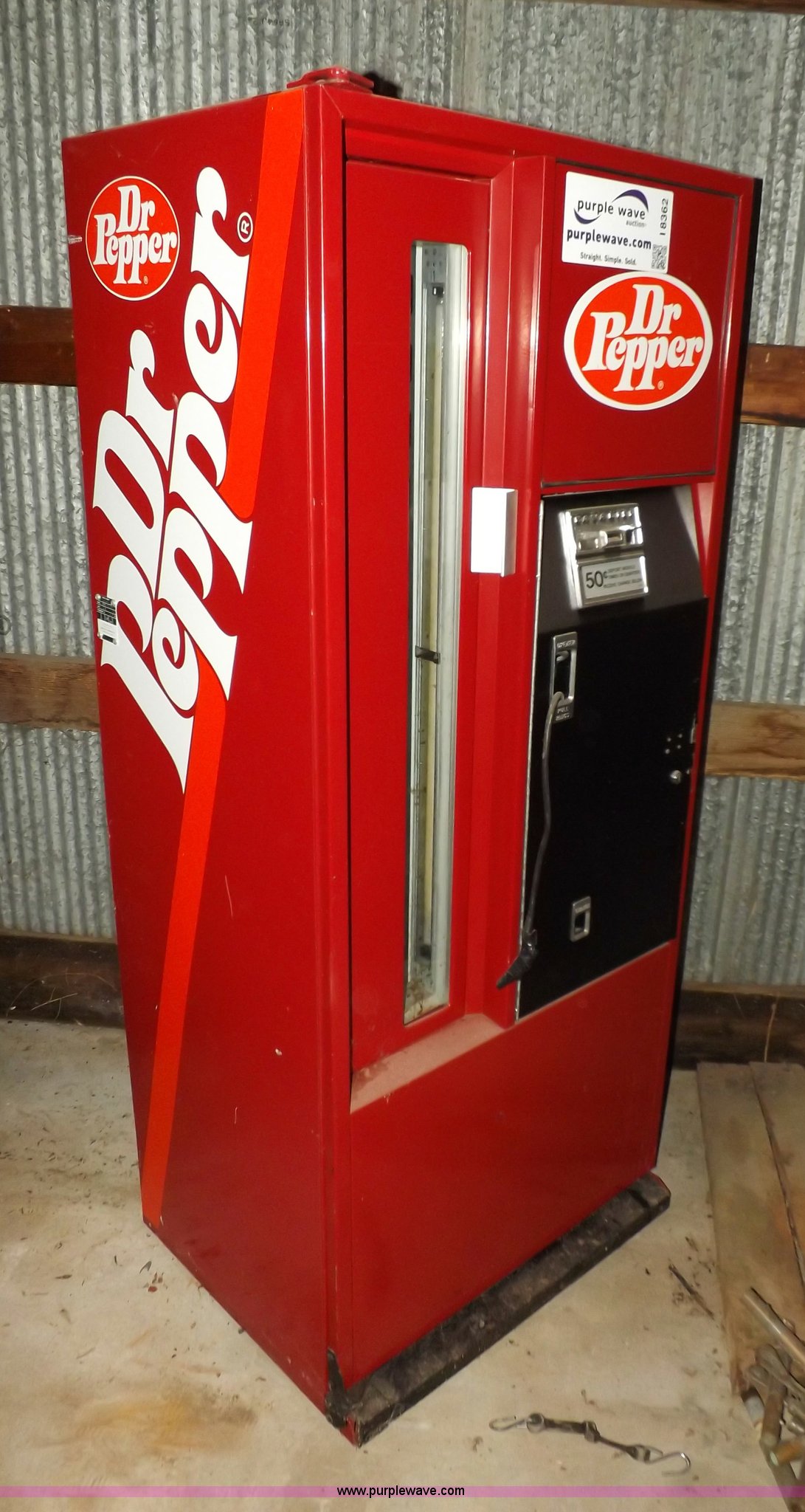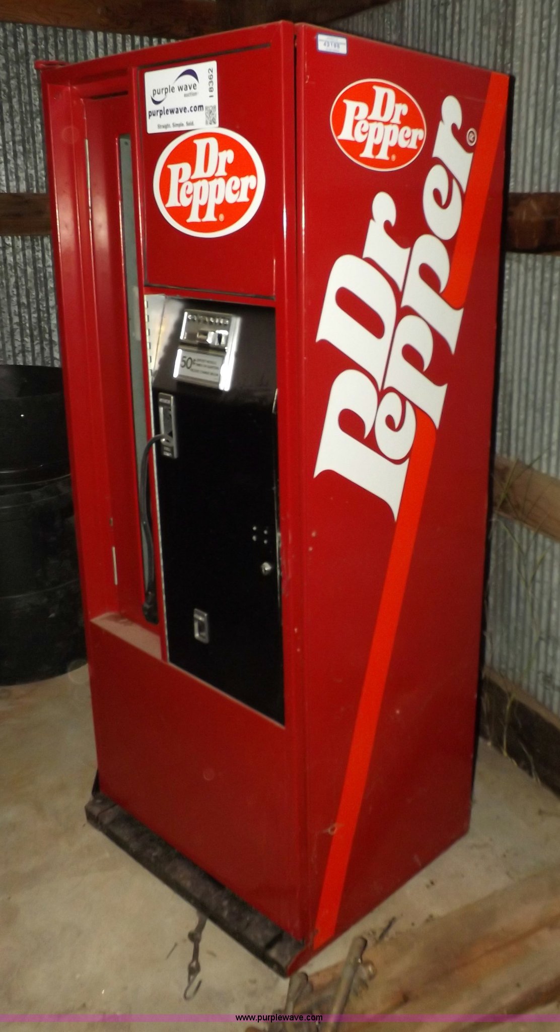 Purple Wave is selling a used Retail Displays in Kansas. This item is a Cavalier Dr Pepper soda machine with the following: Model USS12-96, 28"W x 68"H x 22"D, (12) product choices, Wired around coin operator
