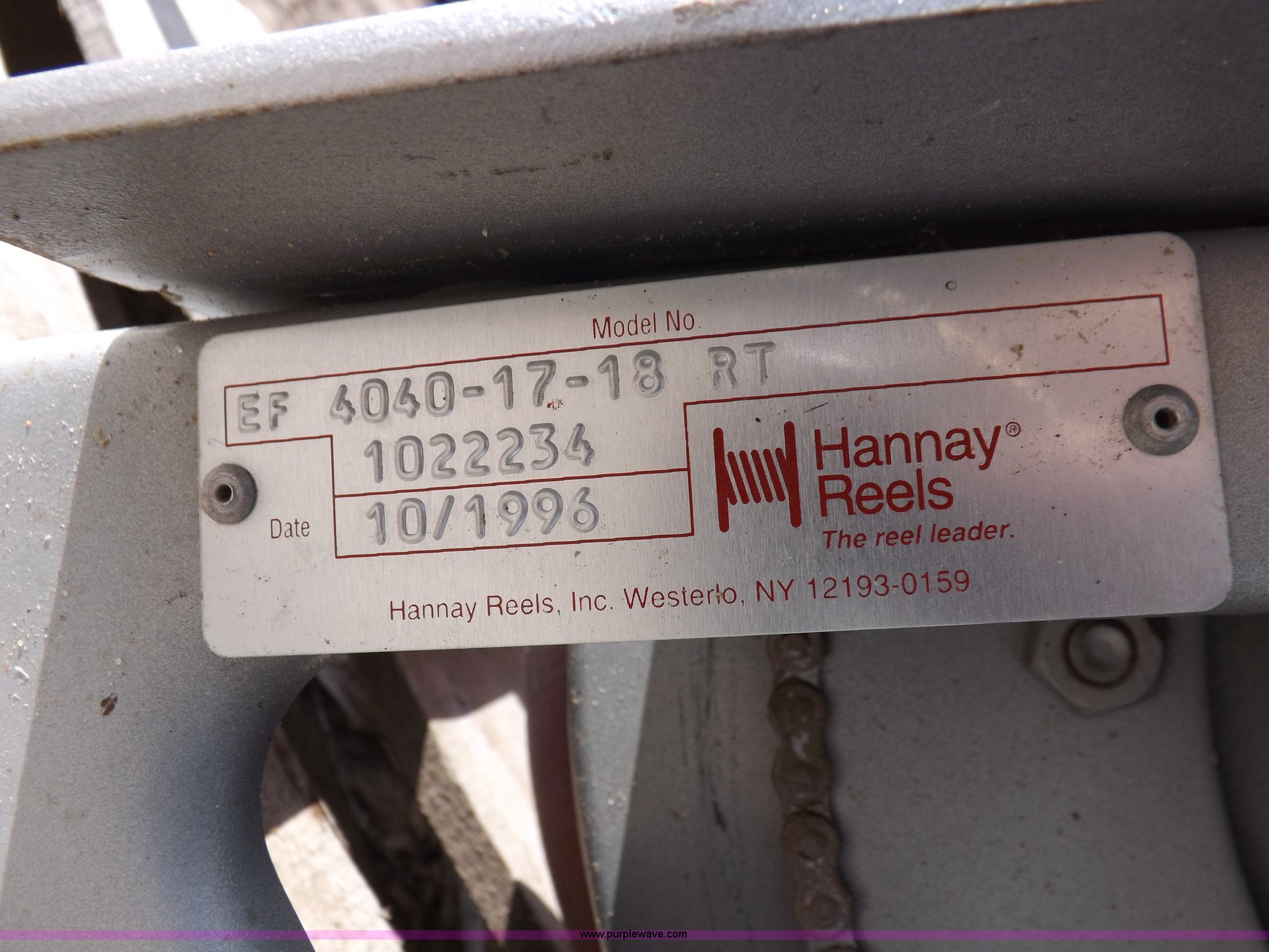 Purple Wave is selling a used Tools in Kansas. This item is a Hannay reels with the following: Model EF4040-17-18RT, Booster reel, 1", Electric 12V rewind, Approx. 125' 1" hose