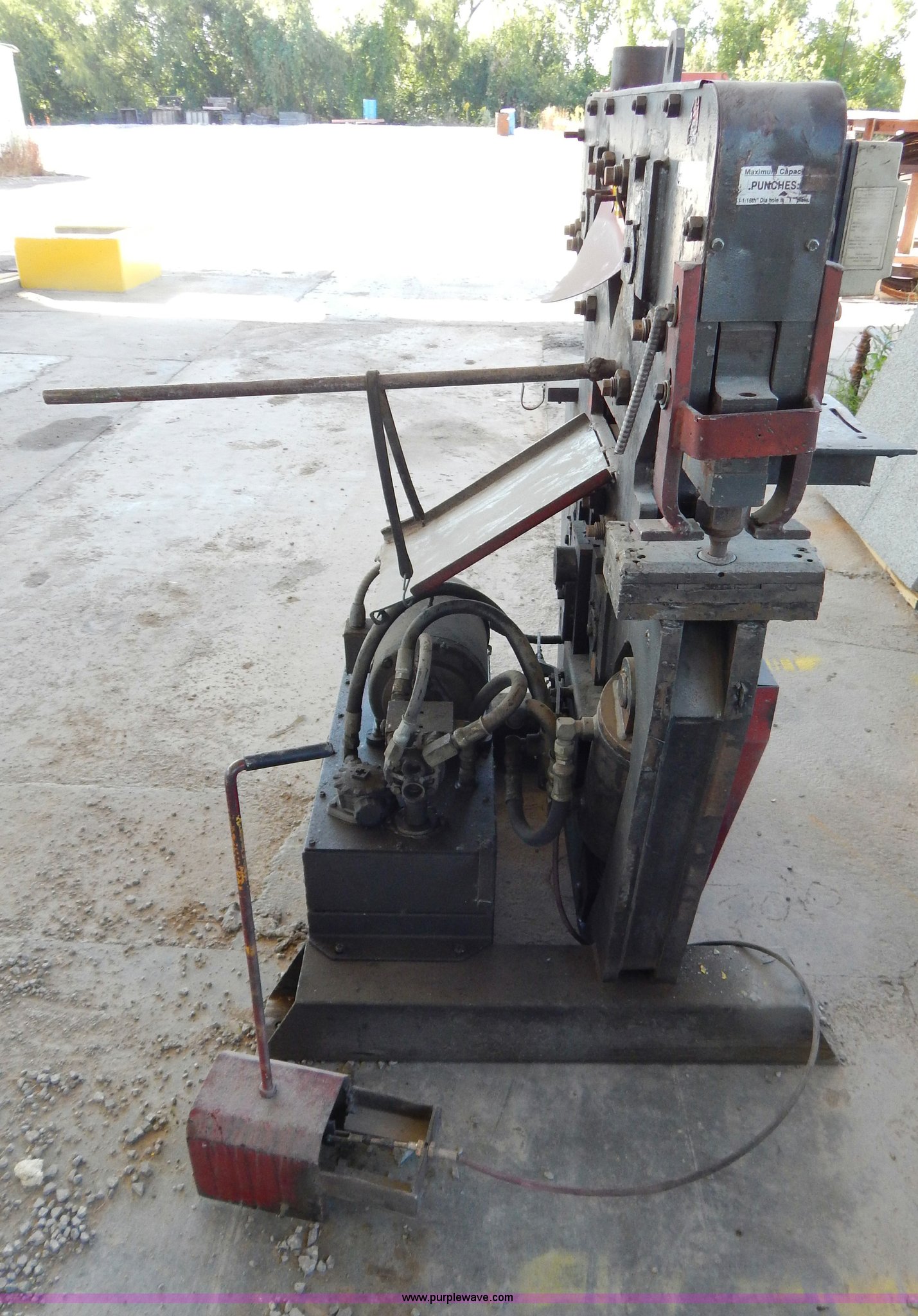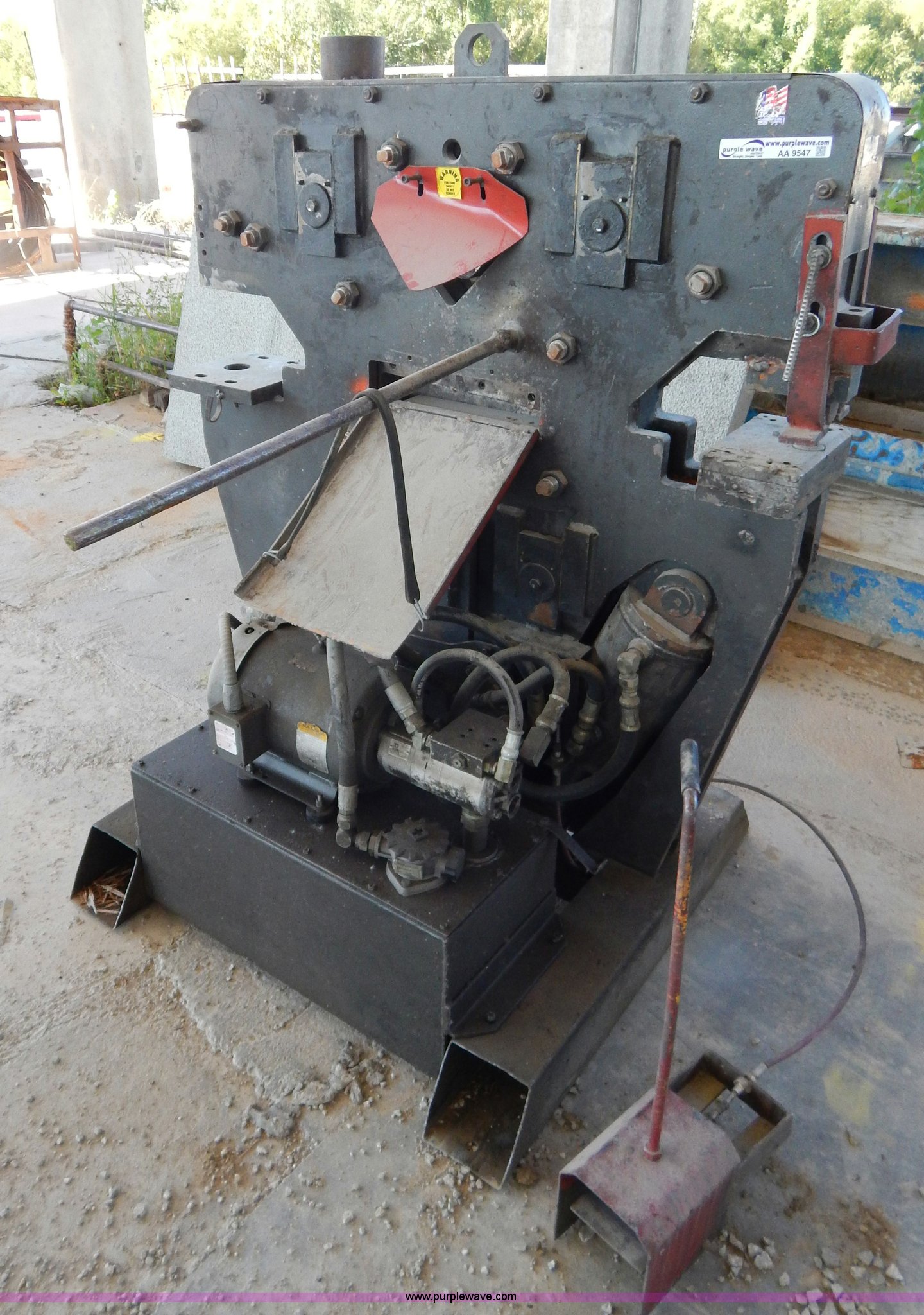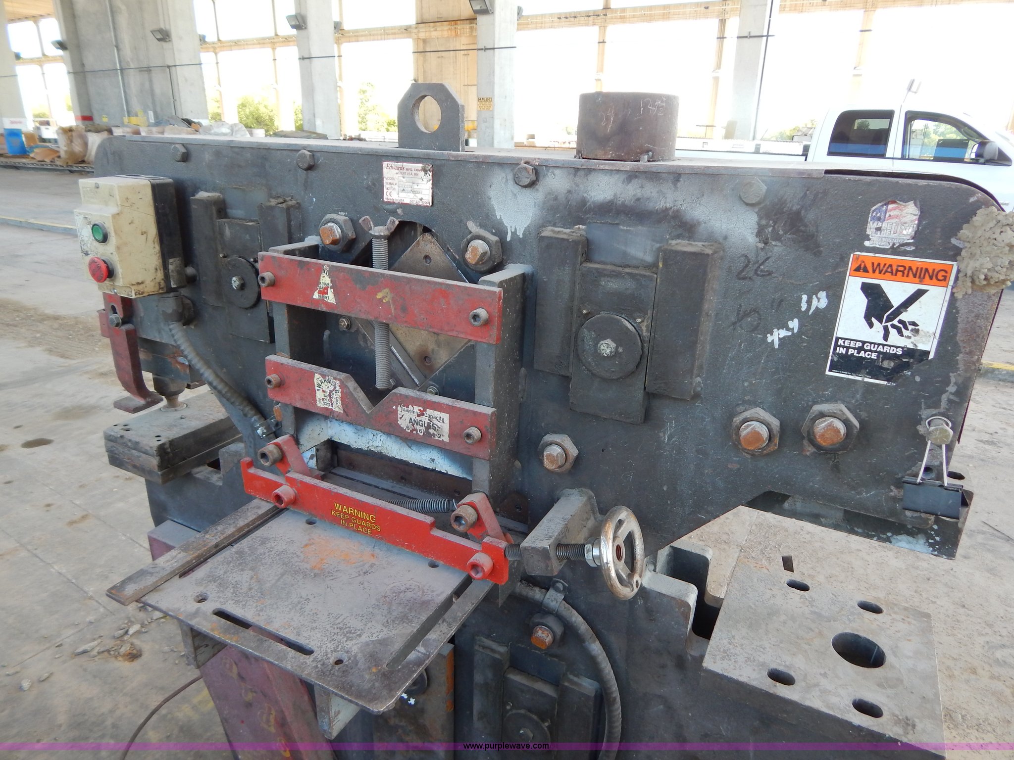 Purple Wave is selling a used Tools in Oklahoma. This item is a Edwards 100 ton iron worker with the following: 220V, Three phase, Serial 12521000