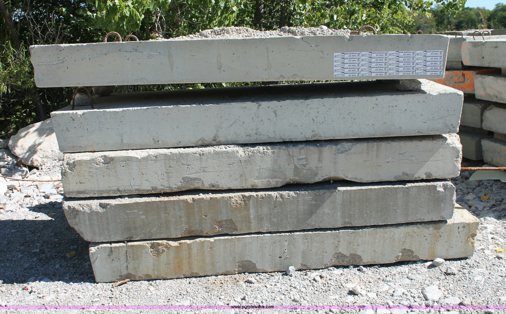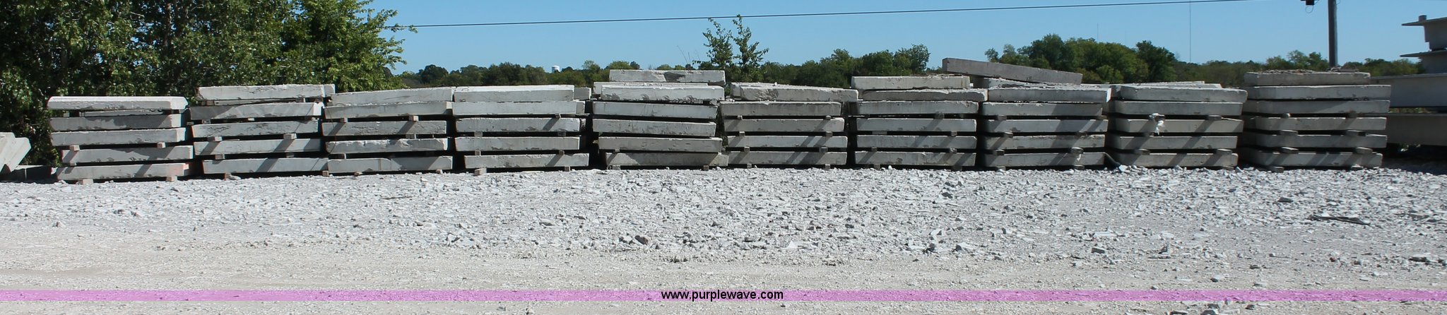 Purple Wave is selling a used Building Materials in Oklahoma. This item is a (15) concrete dunnage blocks with the following: Approximately 98"L x 38"W x 10" thick, Embedded rebar hooks, Approximately 3,200 lbs each