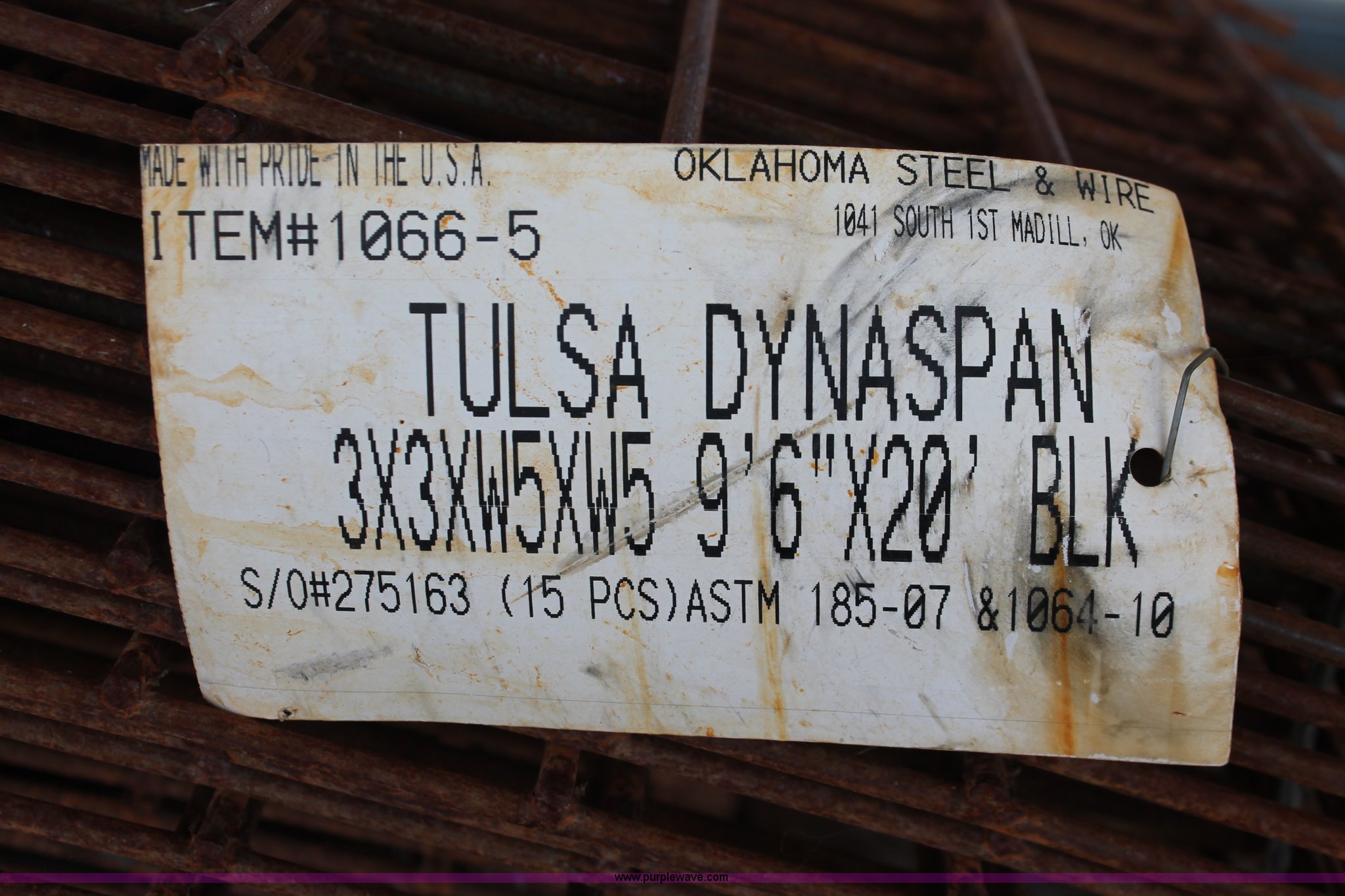 (180) Oklahoma 1066-5 steel and wire pre-cast concrete mesh panels. 20'L x 9.5'W, 3" x 3" grid spacing, (15) pieces per bundle. Tulsa Dynaspan, Inc.. 1601 E Houston Street. Broken Arrow, OK 74012
