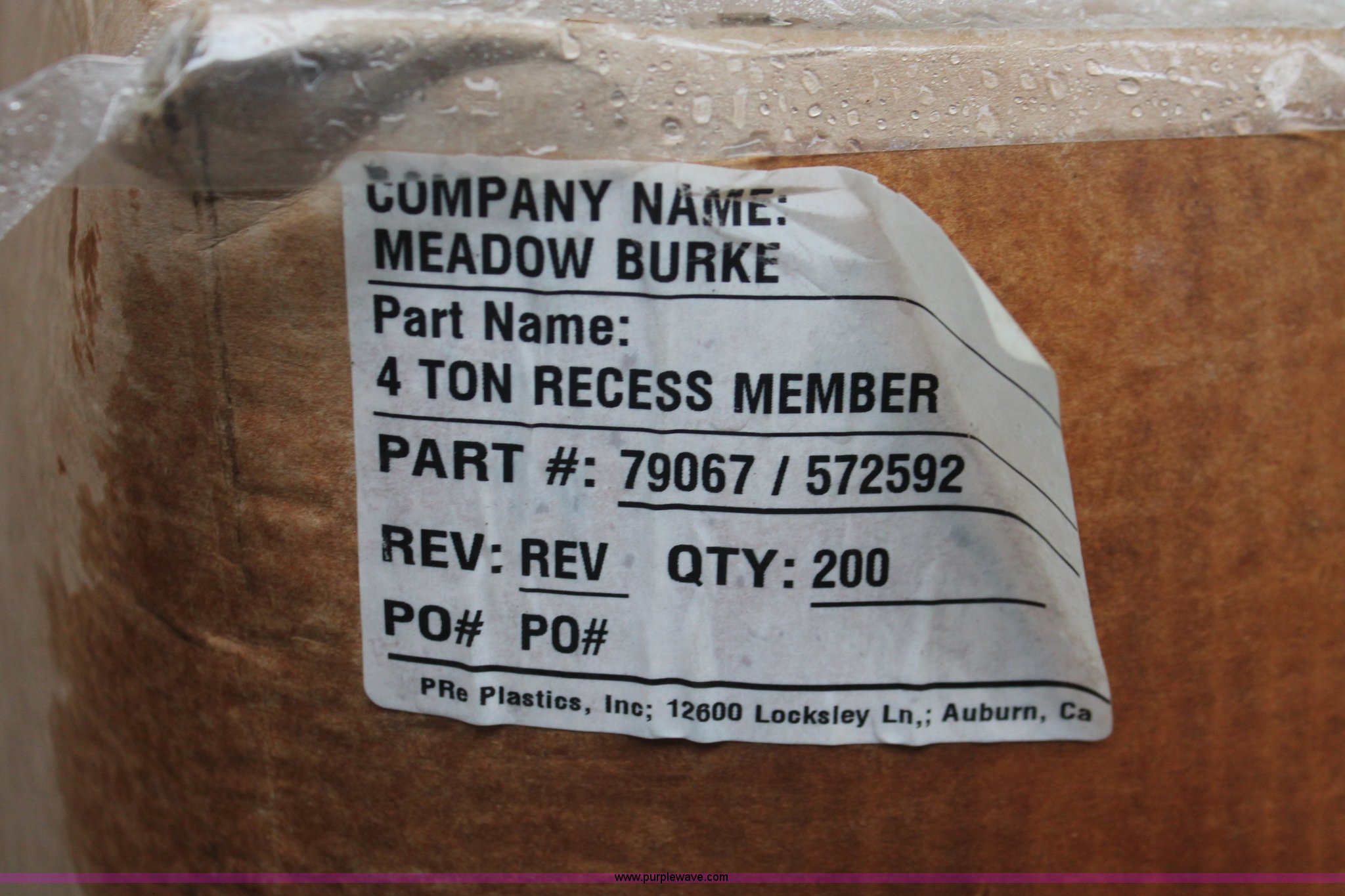 Purple Wave is selling a used Concrete Equip. or Acces. in Oklahoma. This item is a Assorted concrete hardware materials with the following: Meadow Burke plastic recess members, (1,692) four ton, Part No. 79067, Eight boxes, (1,157) four ton, Part No. 79065, (12) boxes, (1,509) four ton, Part No. 6160, (1,410) Burkes 4/5 ton, Part No. 79548, Five barrels, (124) Burkes 4/5 ton, Part No. 79077, (36) Burkes 4/5 ton, Part No. 79589-SPHS, (782) Burkes 4/5 ton, One barrel, (115) Burkes 4/5 ton, Part No. 79044, One barrel,, Shear bars, (279) four ton, Part No. 45847, (1,509) four ton, Part No. 79141,, Tension bars, (103) 38", No. 5, (166) 25", No. 4, (365) 26", No. 4,