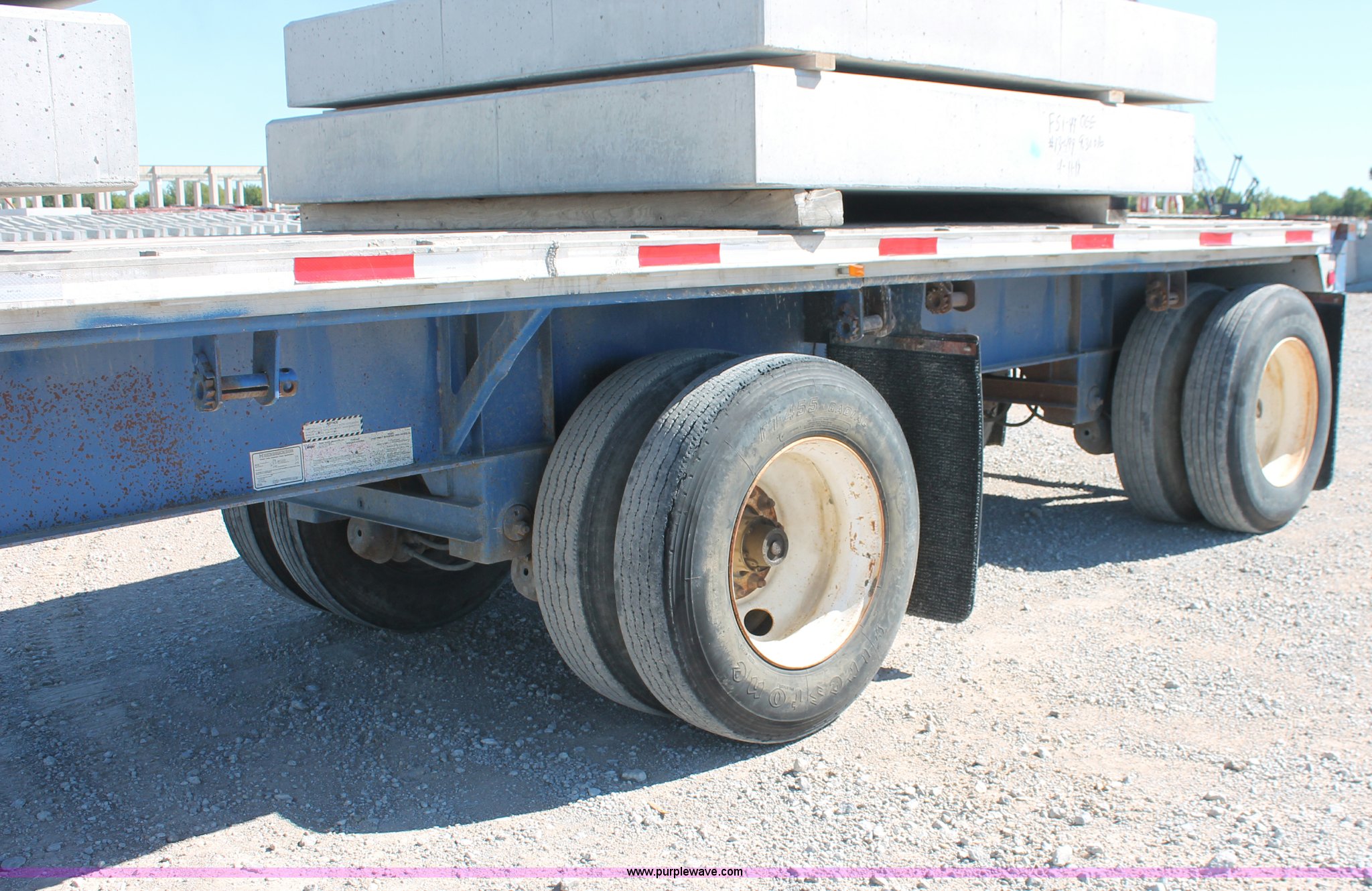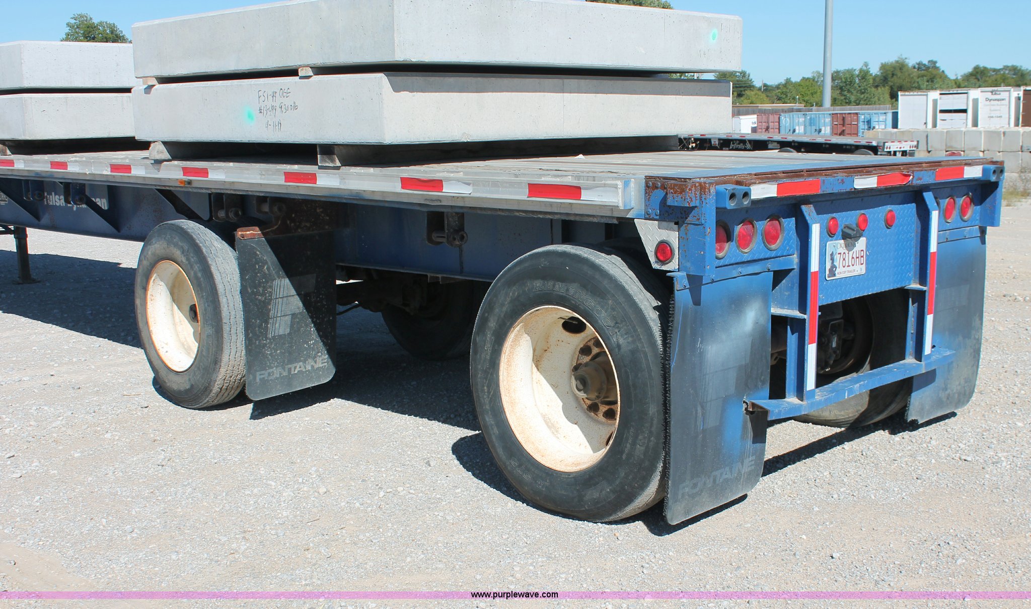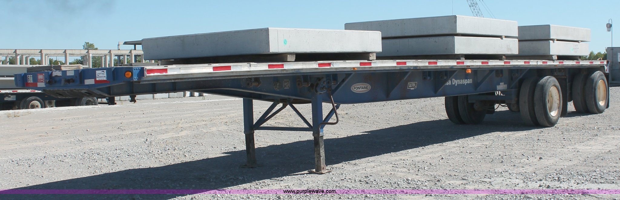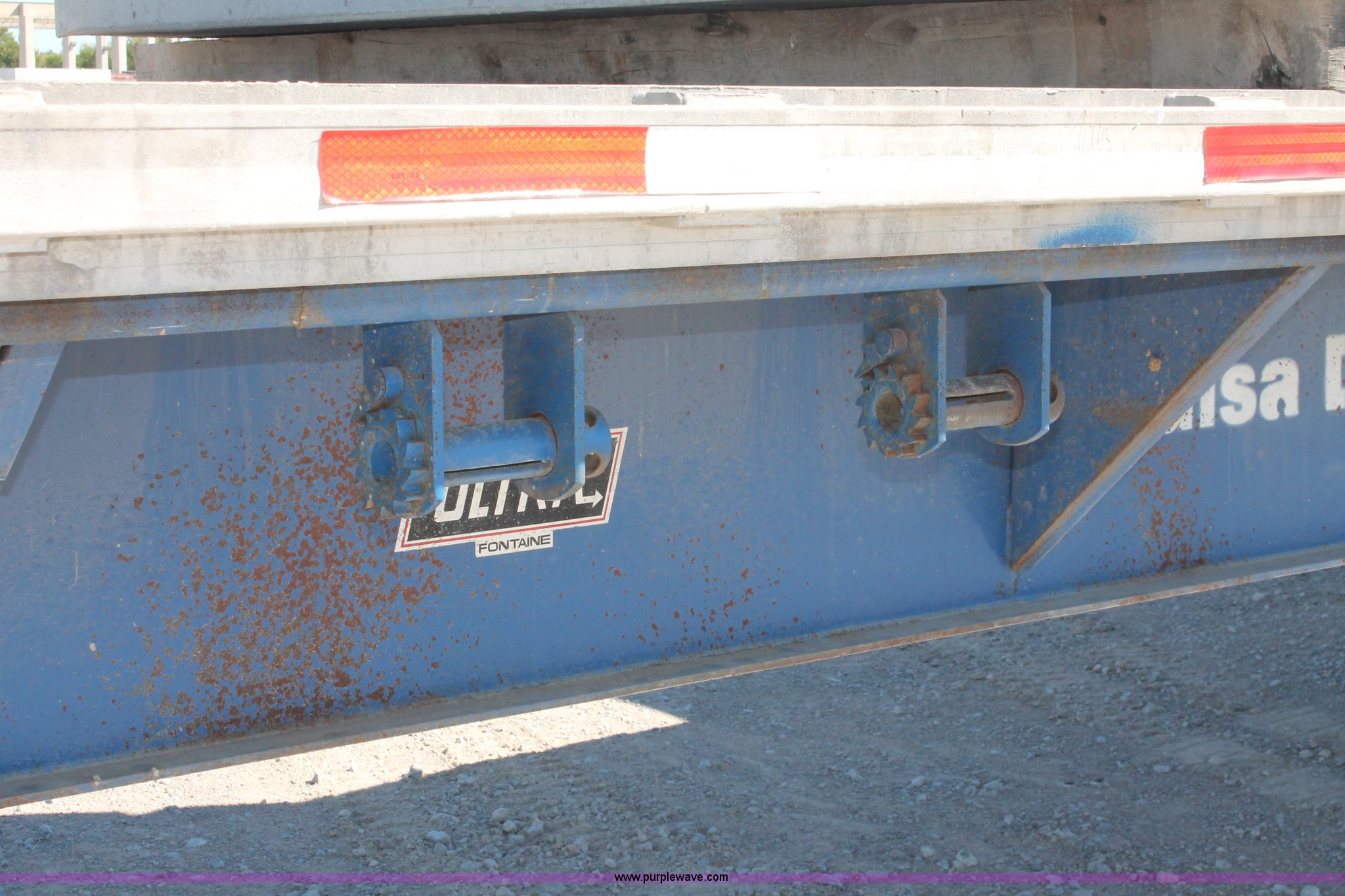 Purple Wave is selling a used Flat or Drop Deck Trailer in Oklahoma. This item is a 1997 Fontaine LFTN-6-8048WSAK flatbed spread axle trailer with the following: 10' axle spread, 96"W, Steel frame, Wood and aluminum deck, Stake side pockets, Manual landing gear, Trailer wiring, Air suspension, Air brakes, 11R24.5 tires, GVWR 80,000 lbs, GAWR 20,000 lbs, TDI 601
