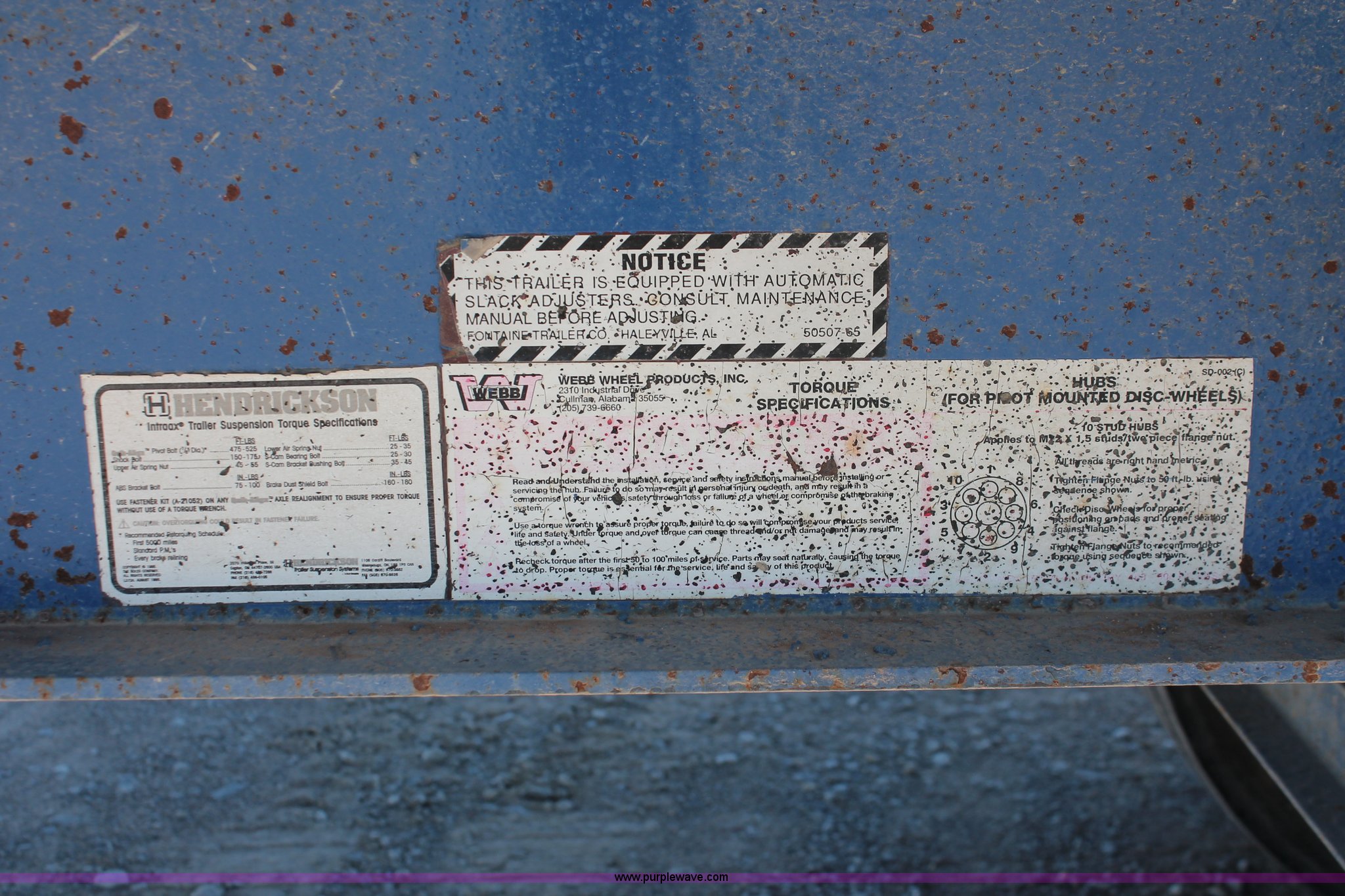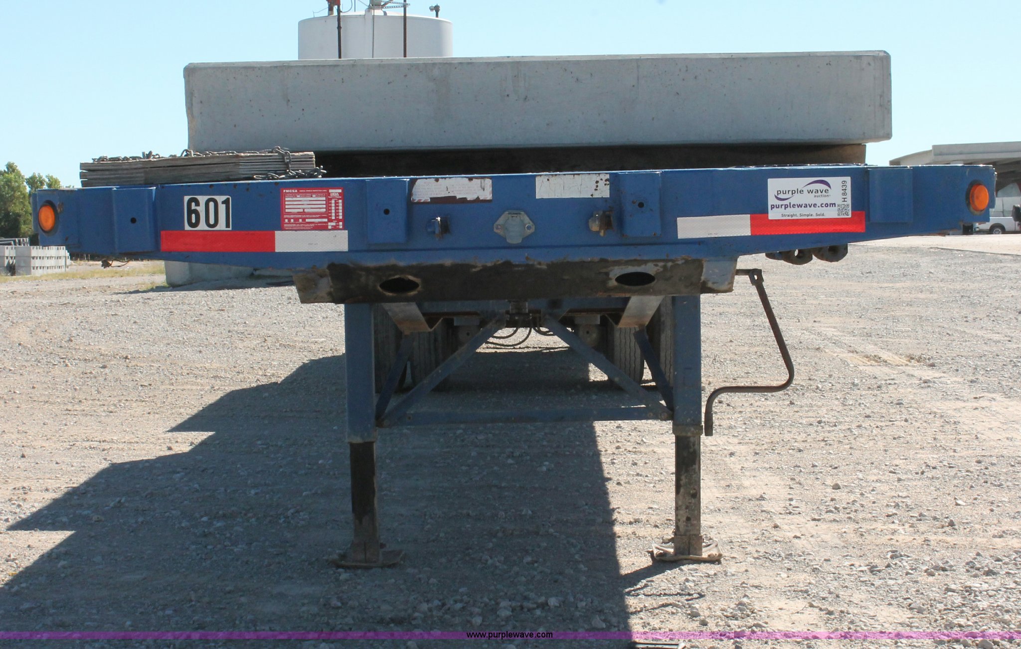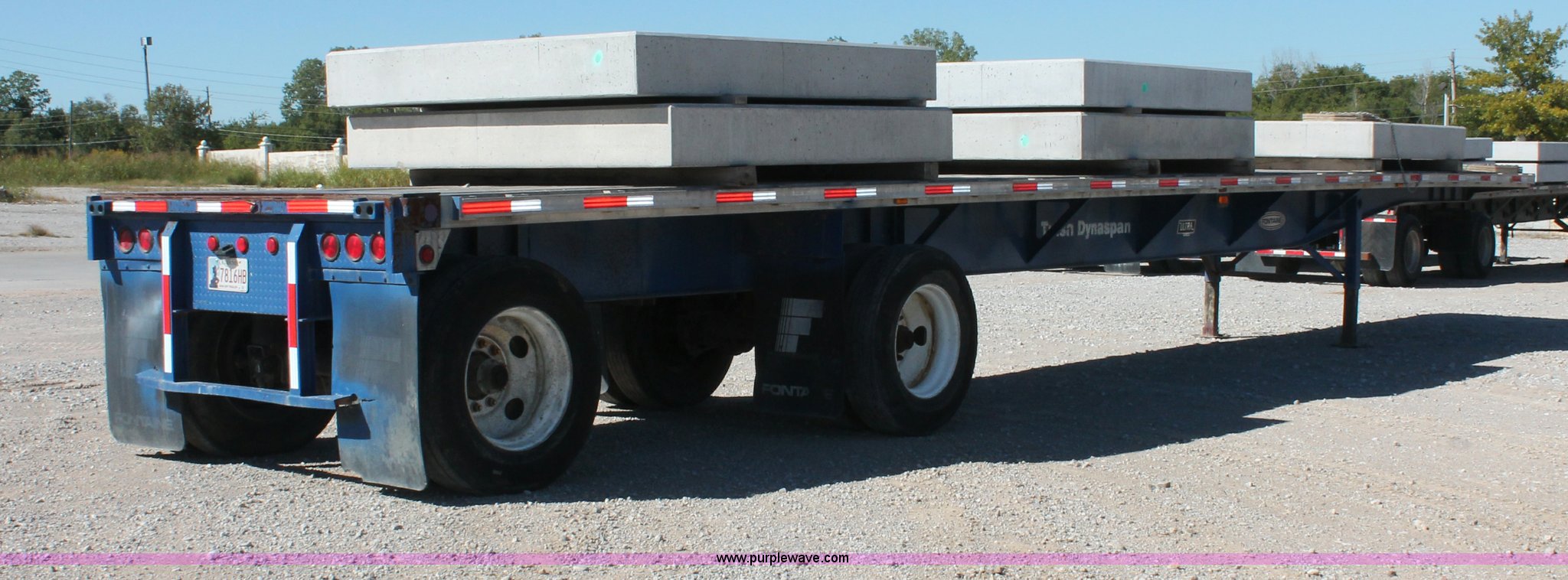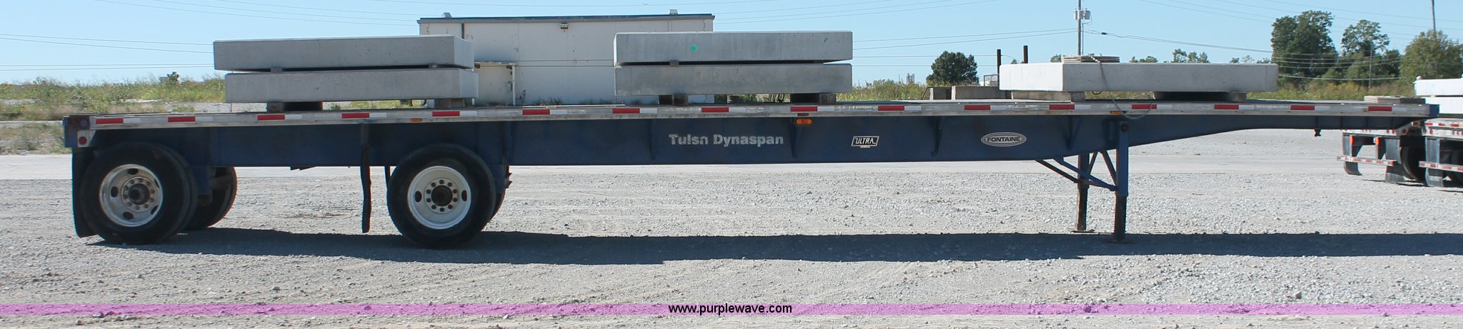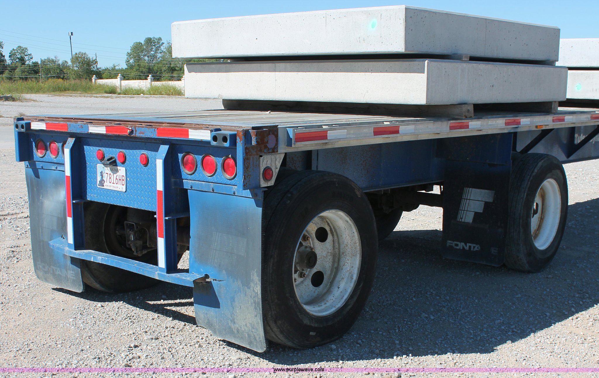 Purple Wave is selling a used Flat or Drop Deck Trailer in Oklahoma. This item is a 1997 Fontaine LFTN-6-8048WSAK flatbed spread axle trailer with the following: 10' axle spread, 96"W, Steel frame, Wood and aluminum deck, Stake side pockets, Manual landing gear, Trailer wiring, Air suspension, Air brakes, 11R24.5 tires, GVWR 80,000 lbs, GAWR 20,000 lbs, TDI 601
