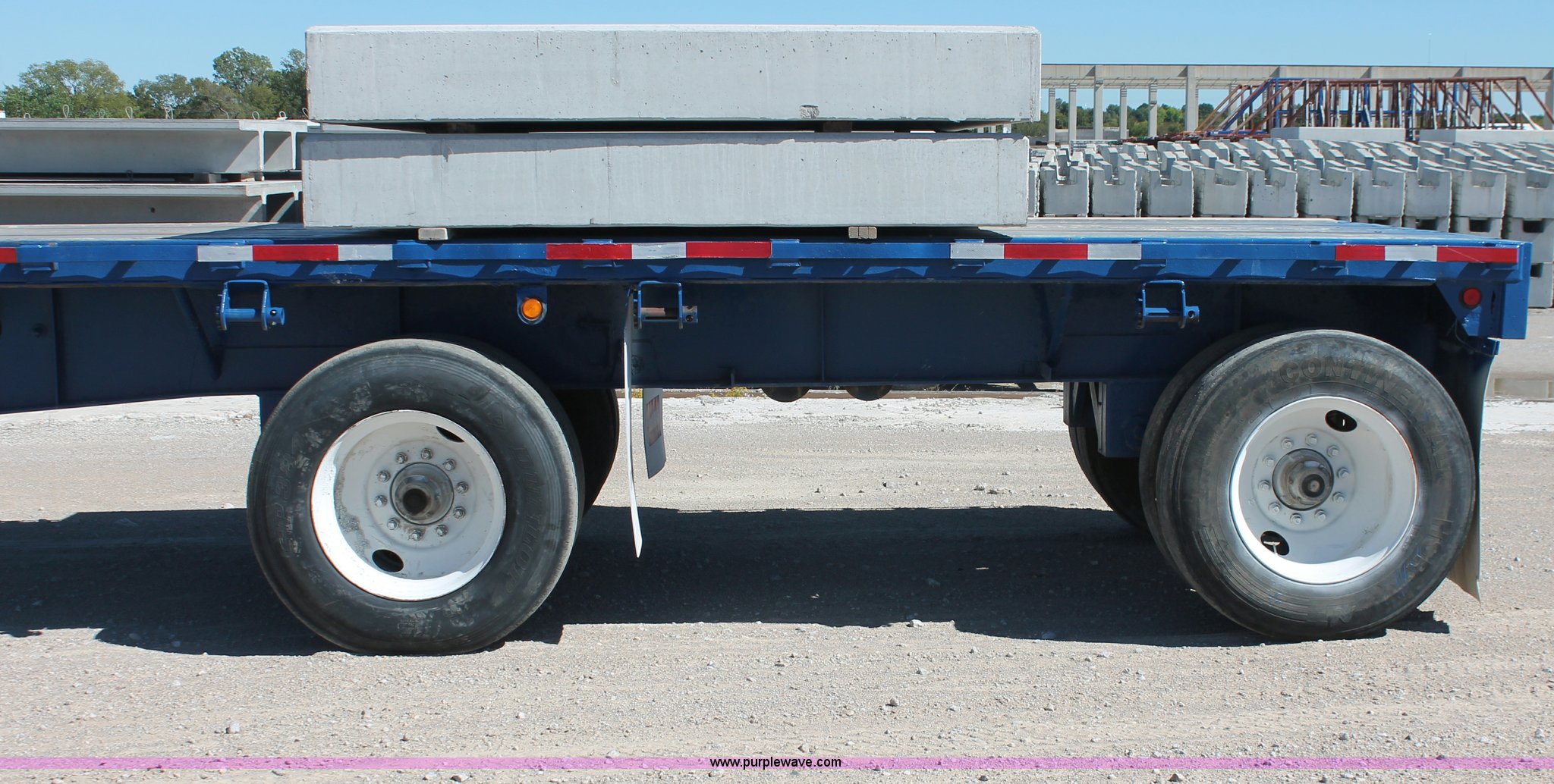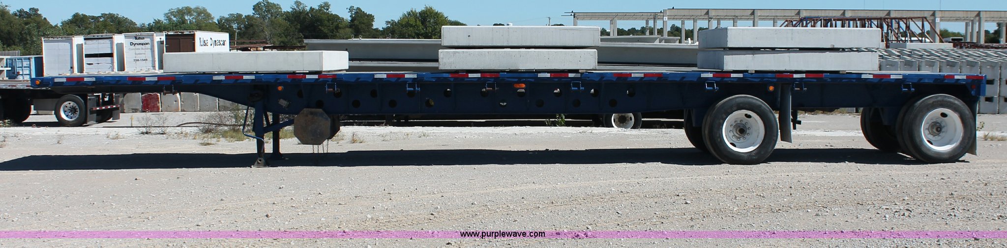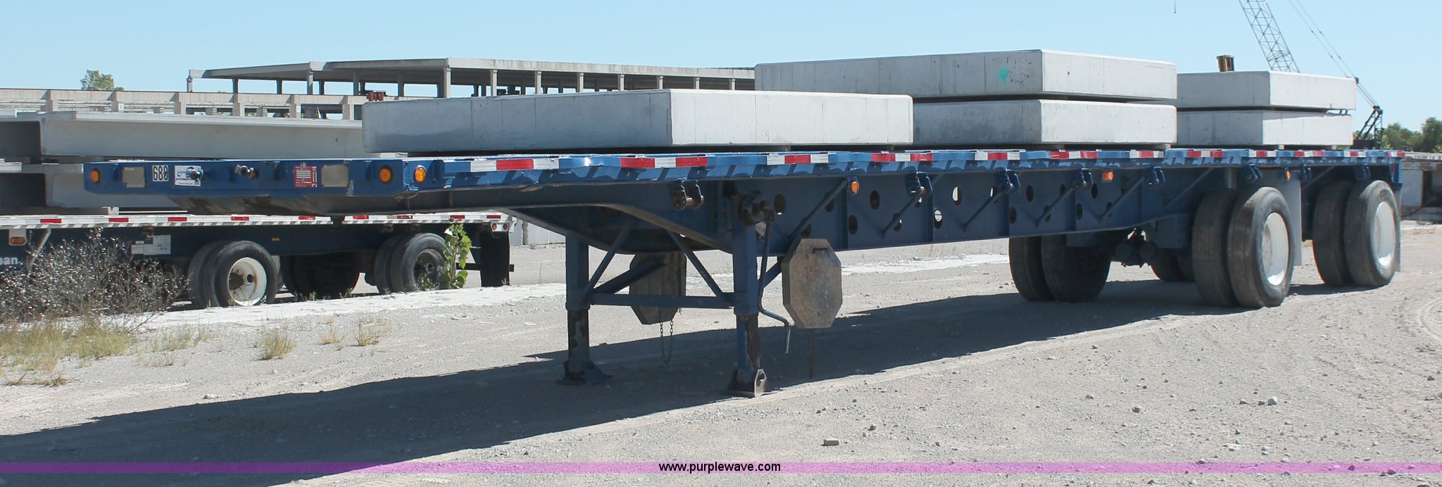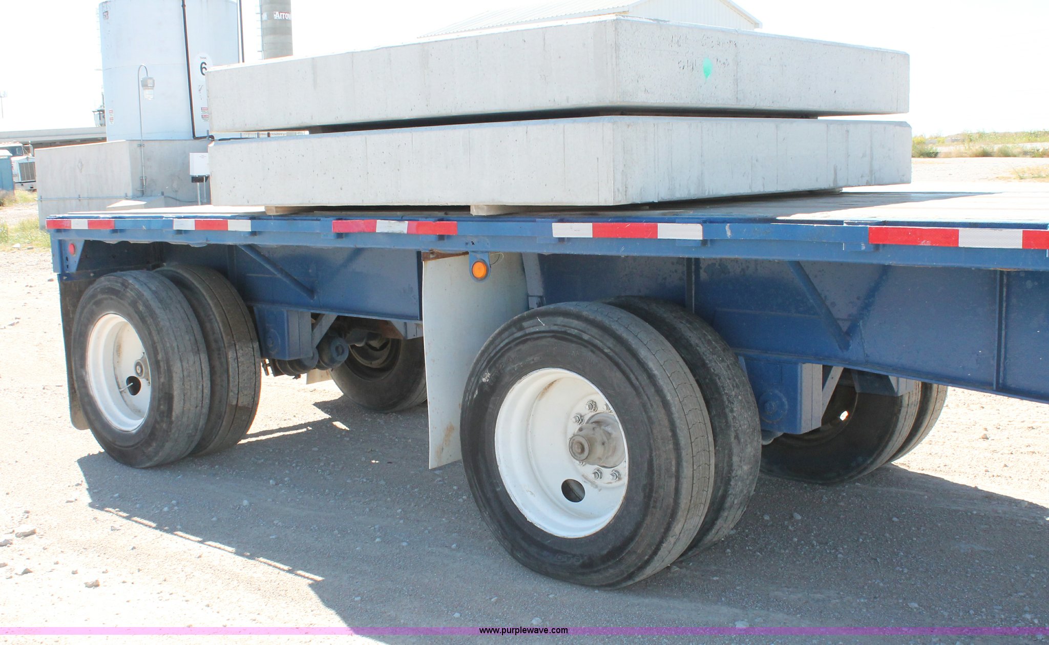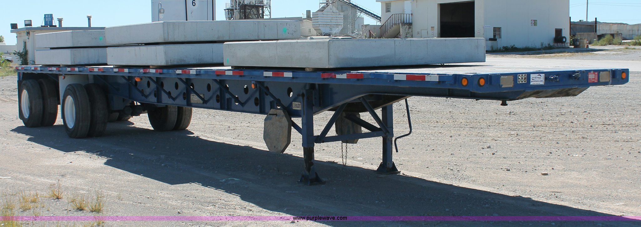 Purple Wave is selling a used Flat or Drop Deck Trailer in Oklahoma. This item is a 1988 Transcraft TL-100K-48 flatbed spread axle trailer with the following: 10' axle spread, 96"W, Steel frame, Wood and aluminum deck, Stake side pockets, Manual landing gear, Trailer wiring, Air suspension, Air brakes, 11R22.5 tires, GVWR 110,000 lbs, 22,500 GAWR, TDI 688