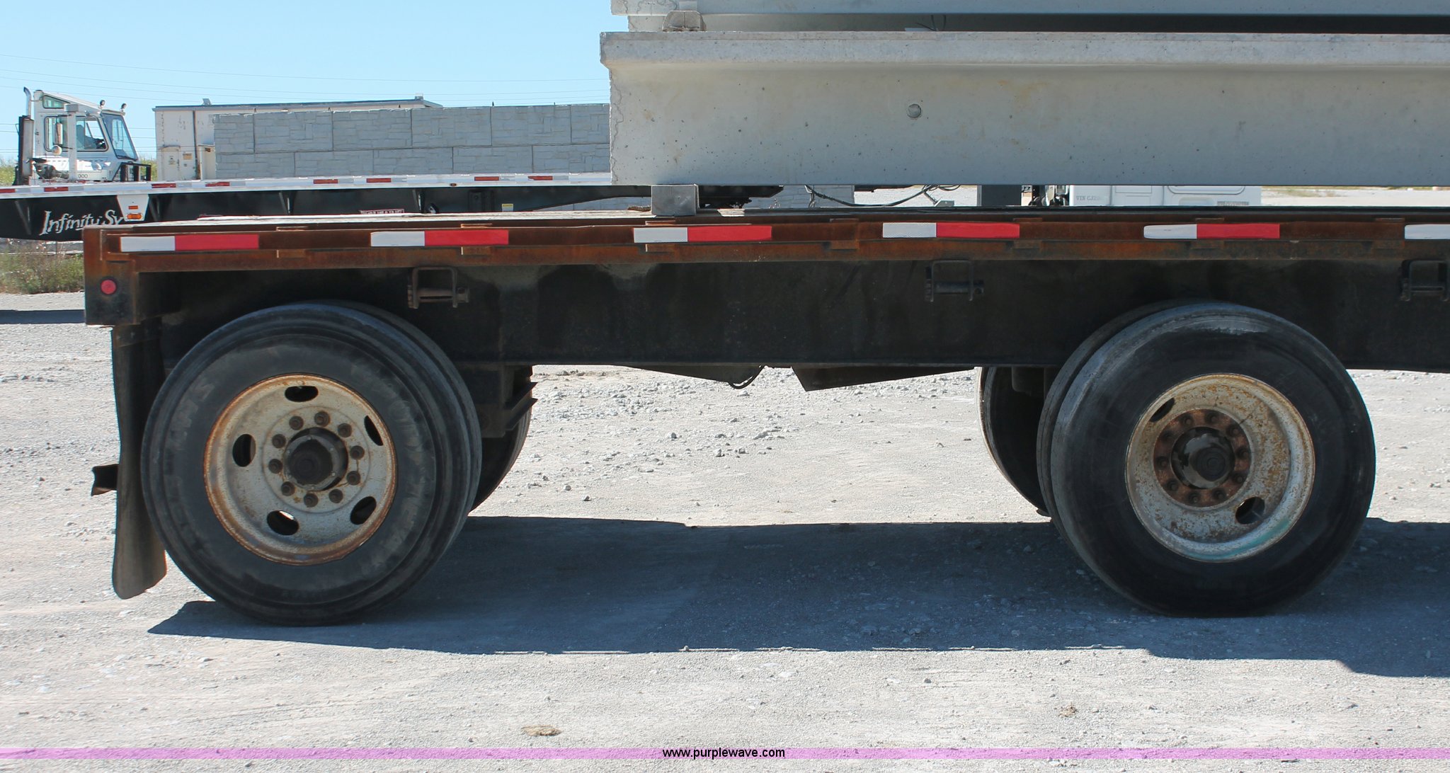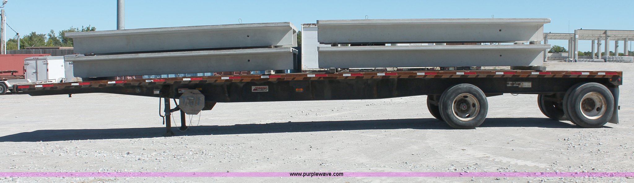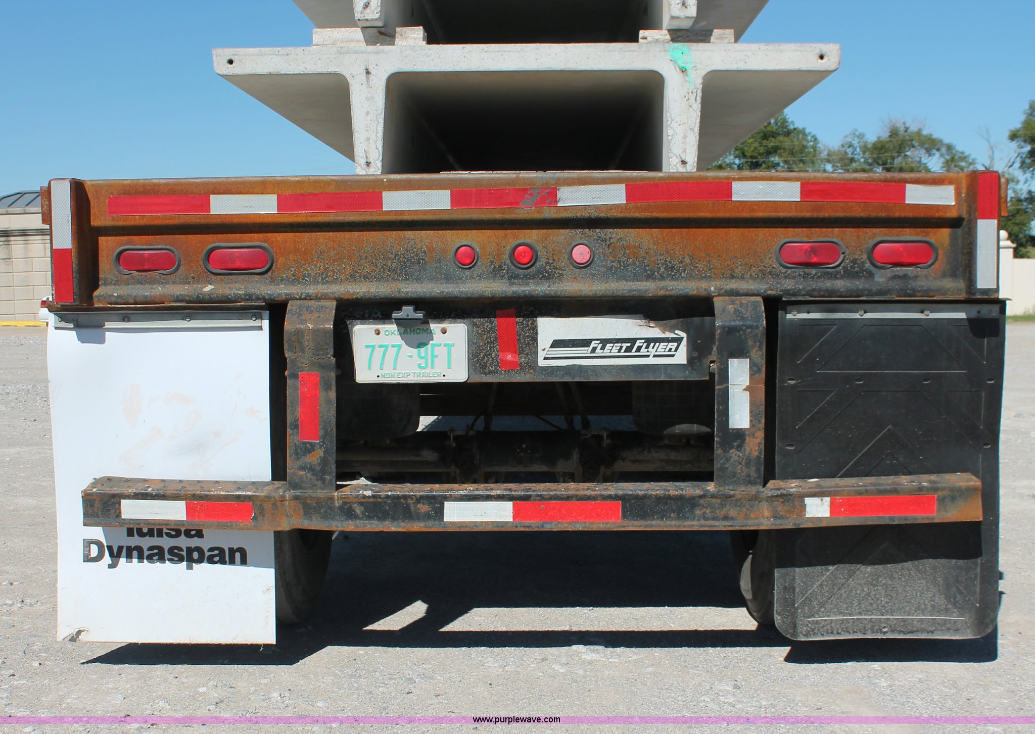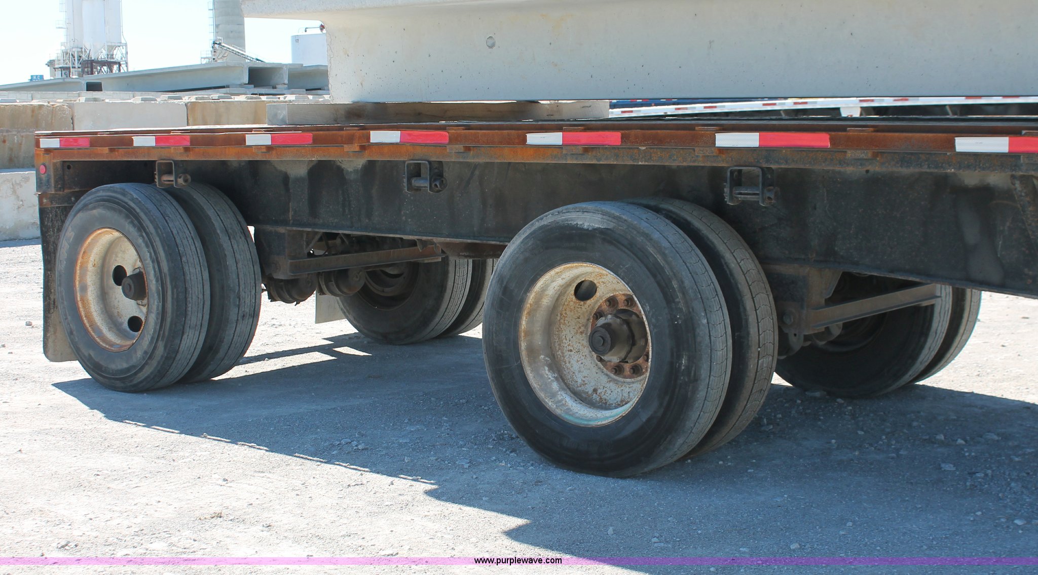 Purple Wave is selling a used Flat or Drop Deck Trailer in Oklahoma. This item is a 2001 Fruehauf Fleet Flyer flatbed spread axle float trailer with the following: 10' spread, 102"W, Steel frame, Wood and aluminum deck, Stake side pockets, Manual landing gear, Trailer wiring, Air suspension, Air brakes, 11R24.5 tires, GVWR 100,000 lbs, GAWR 20,000 lbs, TDI 695