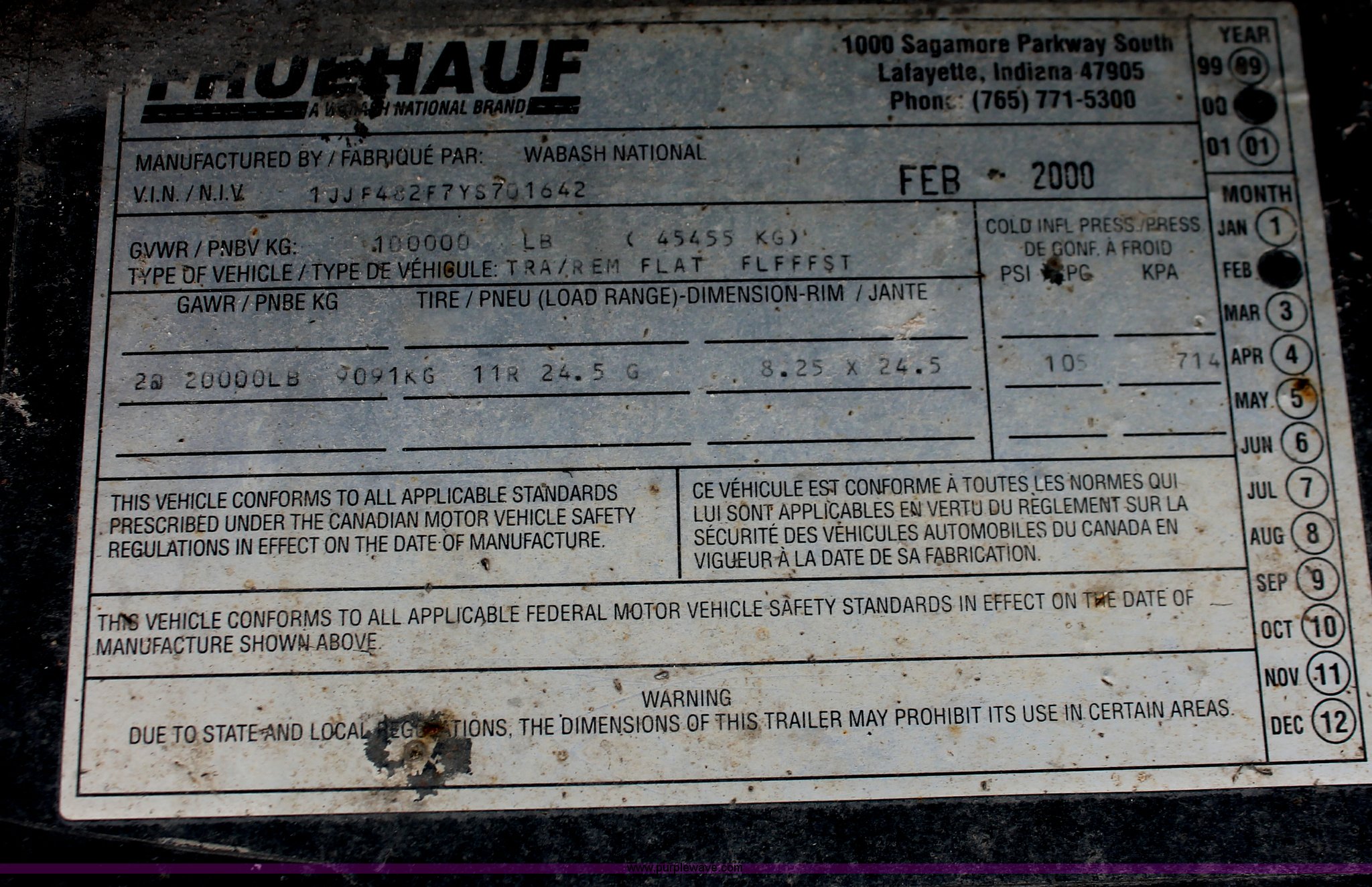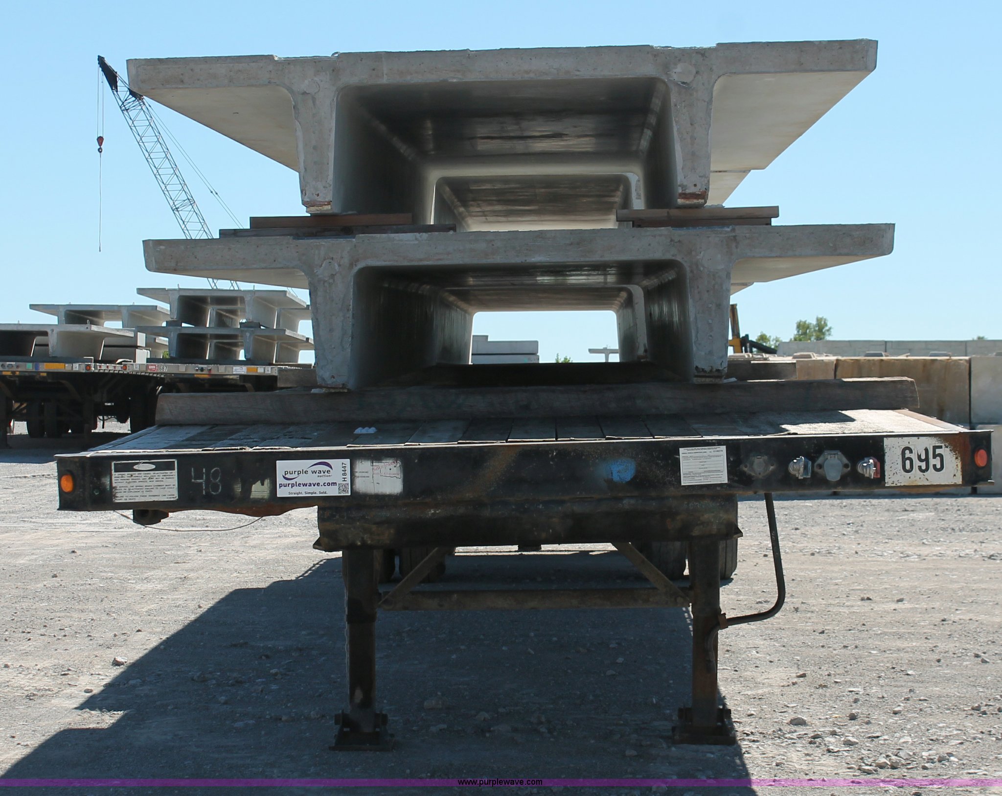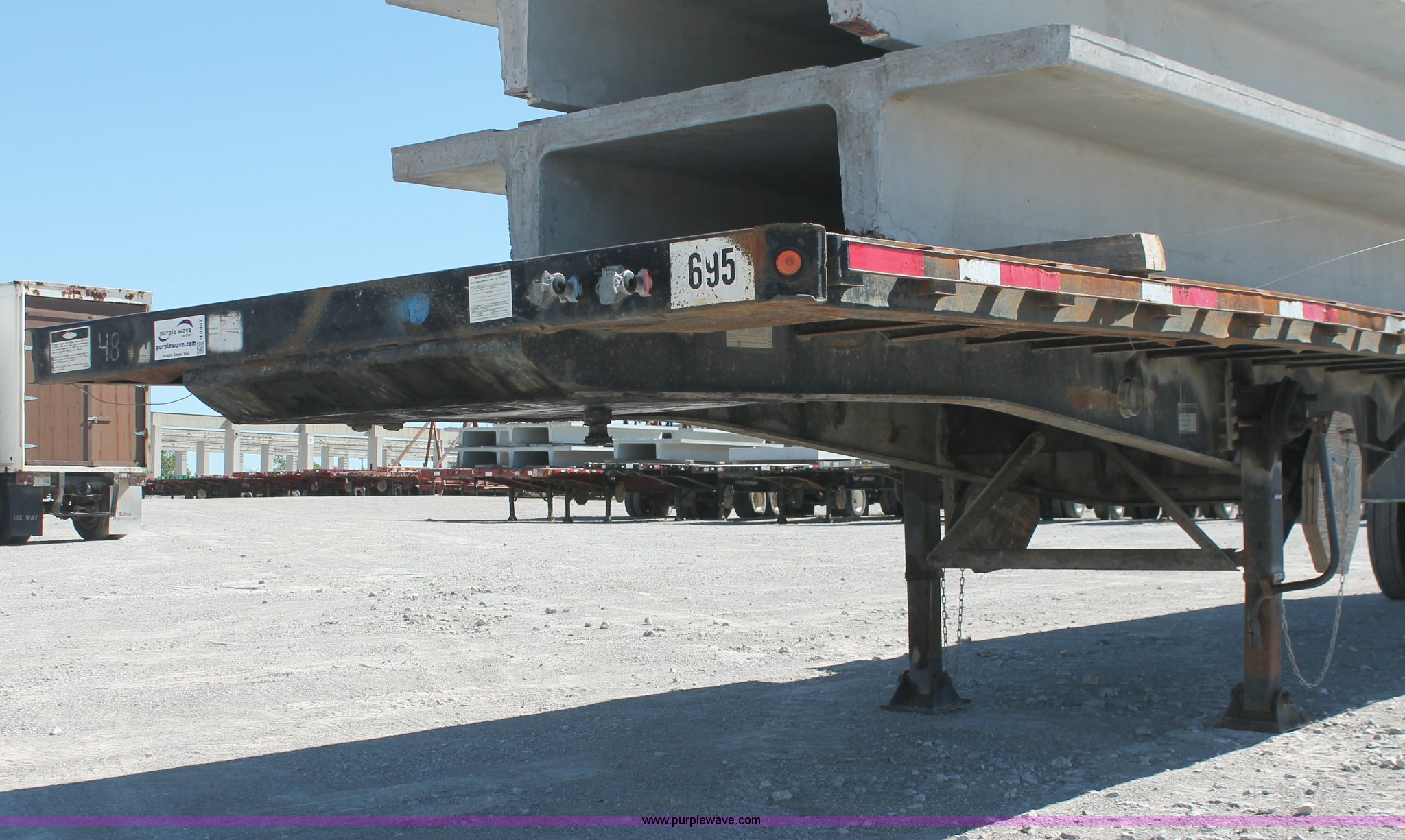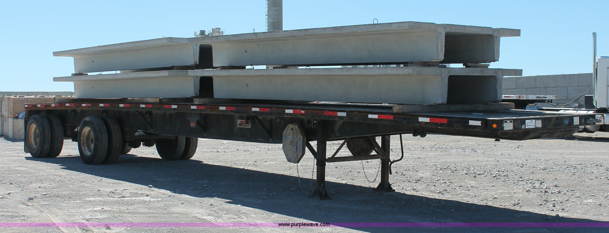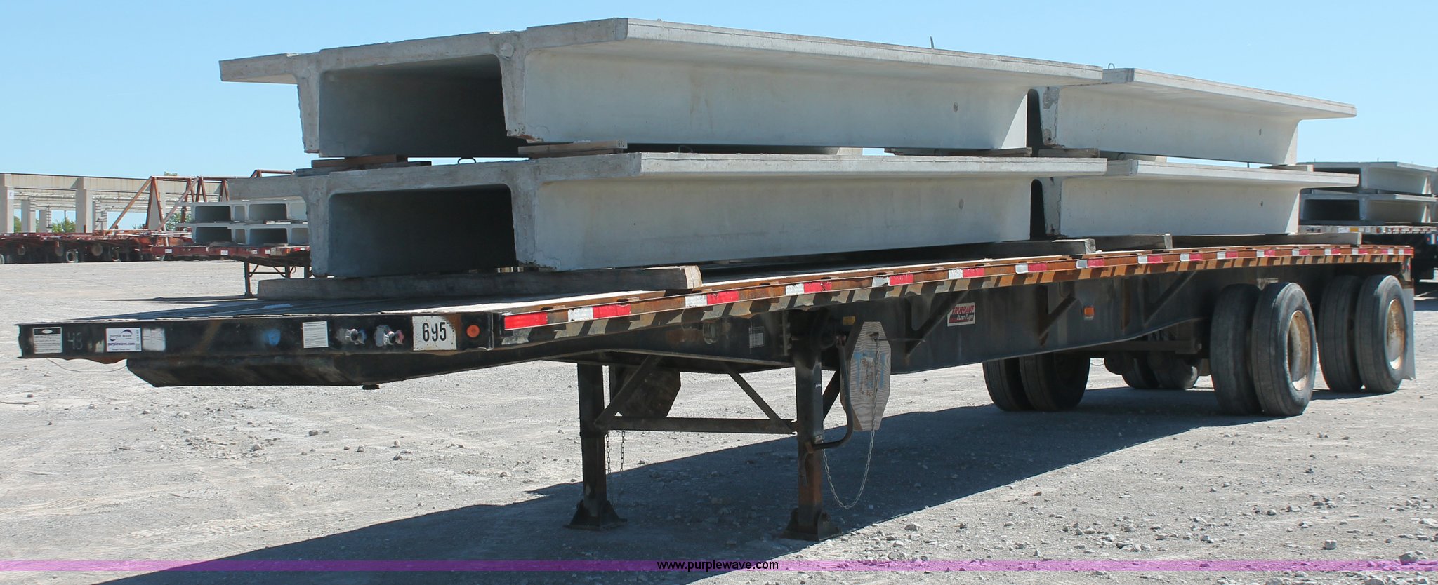 Purple Wave is selling a used Flat or Drop Deck Trailer in Oklahoma. This item is a 2001 Fruehauf Fleet Flyer flatbed spread axle float trailer with the following: 10' spread, 102"W, Steel frame, Wood and aluminum deck, Stake side pockets, Manual landing gear, Trailer wiring, Air suspension, Air brakes, 11R24.5 tires, GVWR 100,000 lbs, GAWR 20,000 lbs, TDI 695