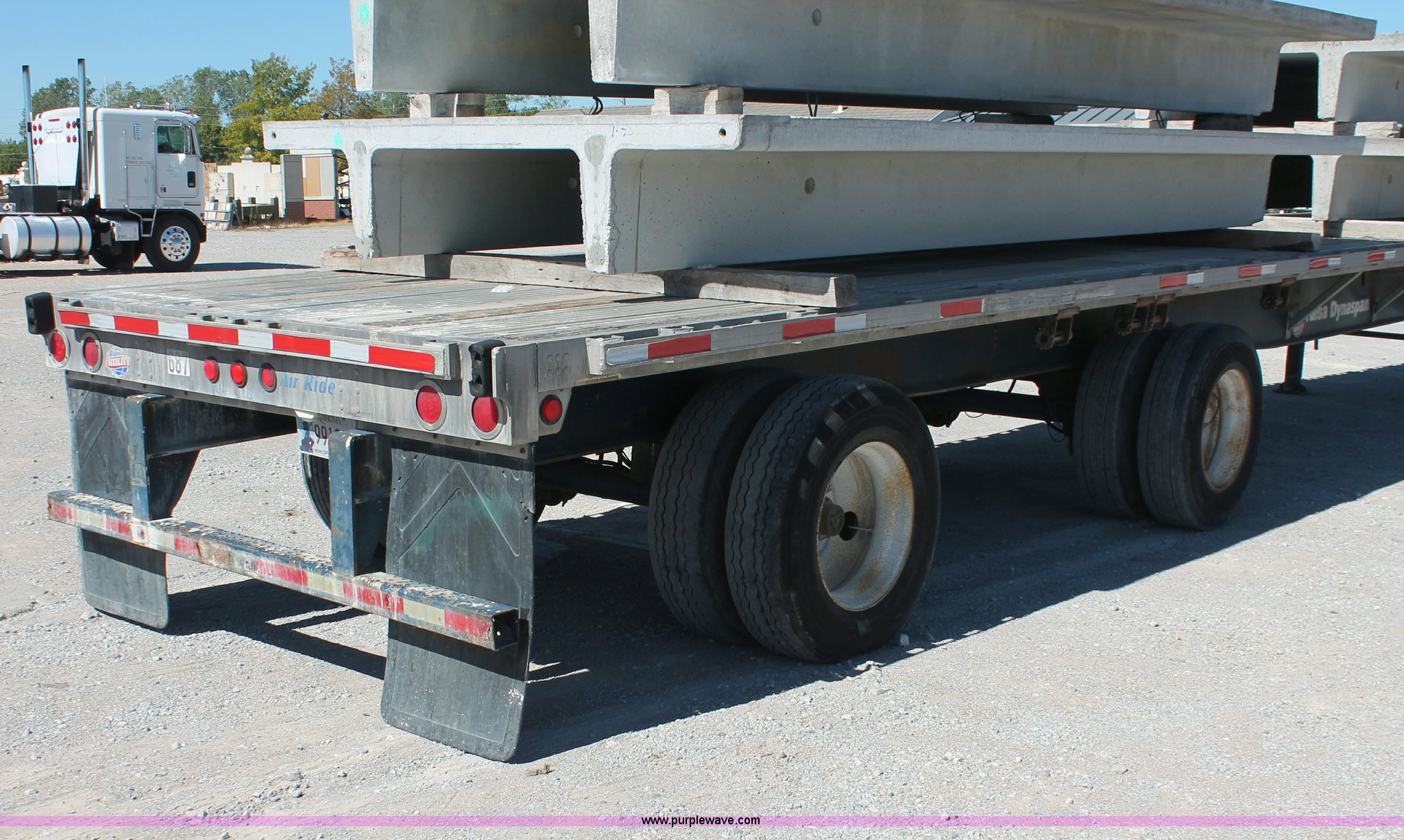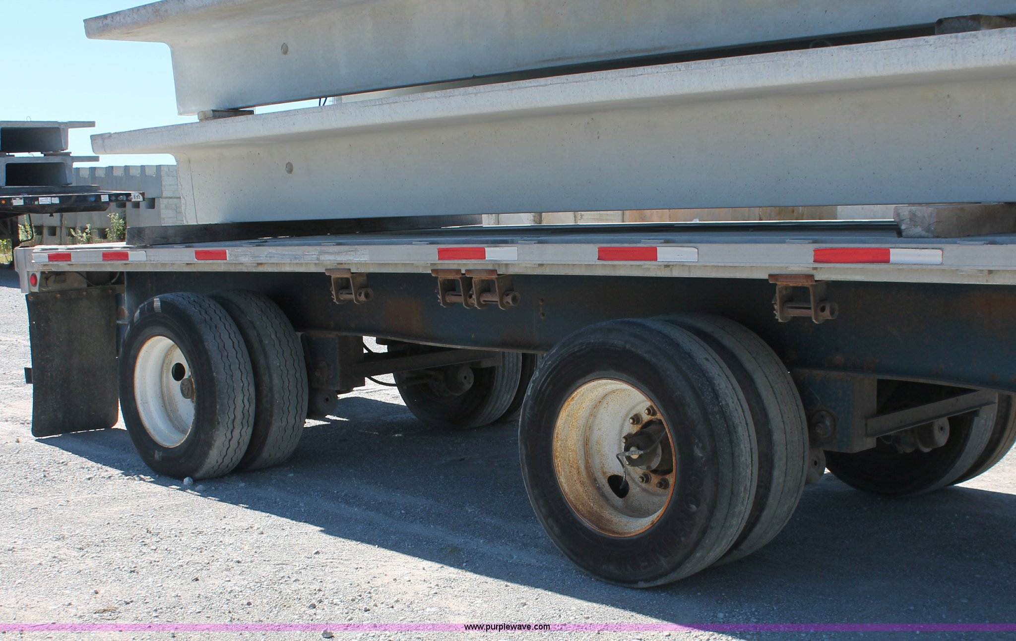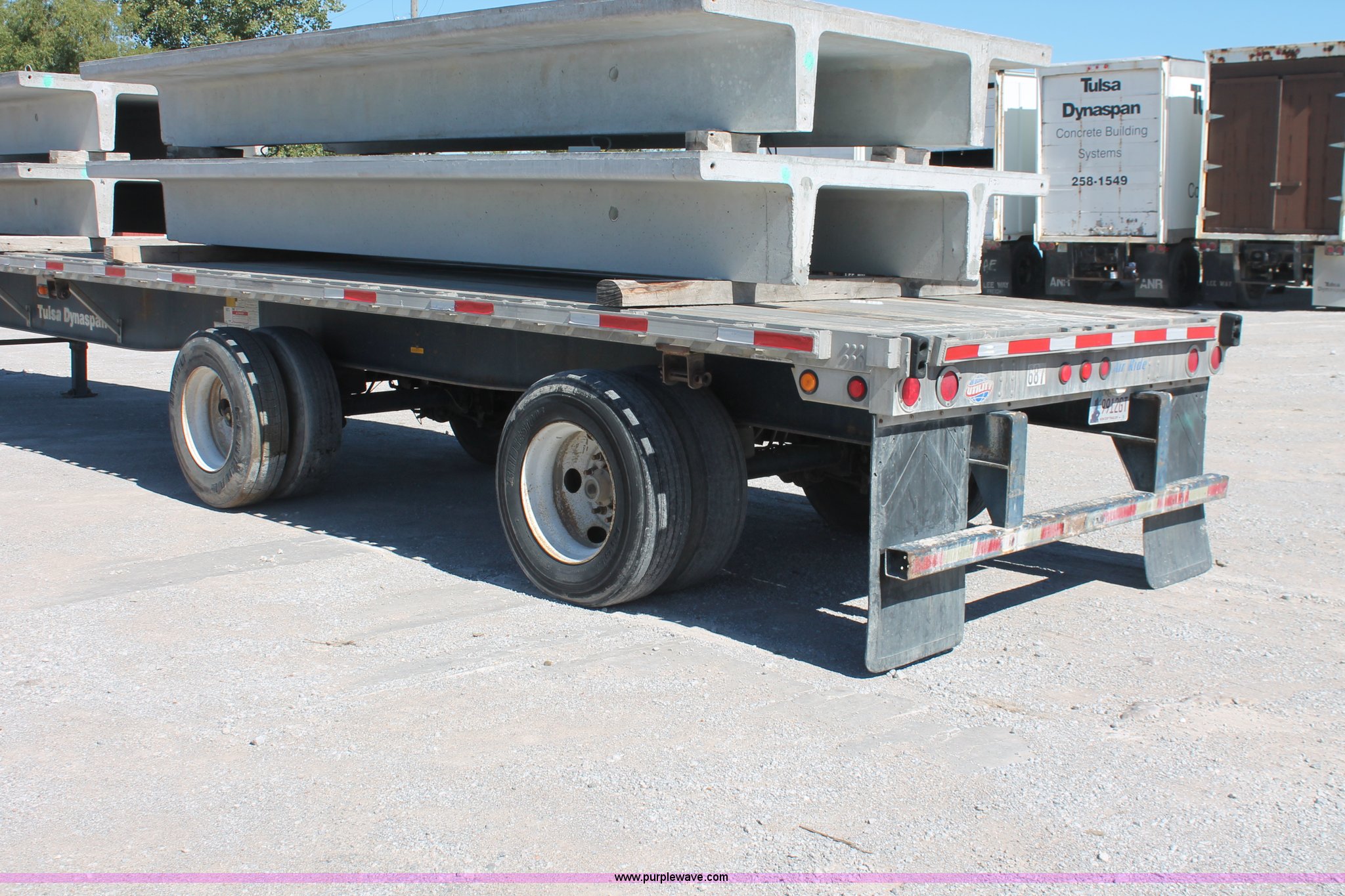 Purple Wave is selling a used Flat or Drop Deck Trailer in Oklahoma. This item is a 2000 Utility flatbed spread axle float trailer with the following: 10' spread, 102"W, Steel frame, Wood and aluminum deck, Stake side pockets, Manual landing gear, Trailer wiring, Air suspension, Air brakes, 295/75R22.5 tires, GVWR 80,000 lbs, TDI 687