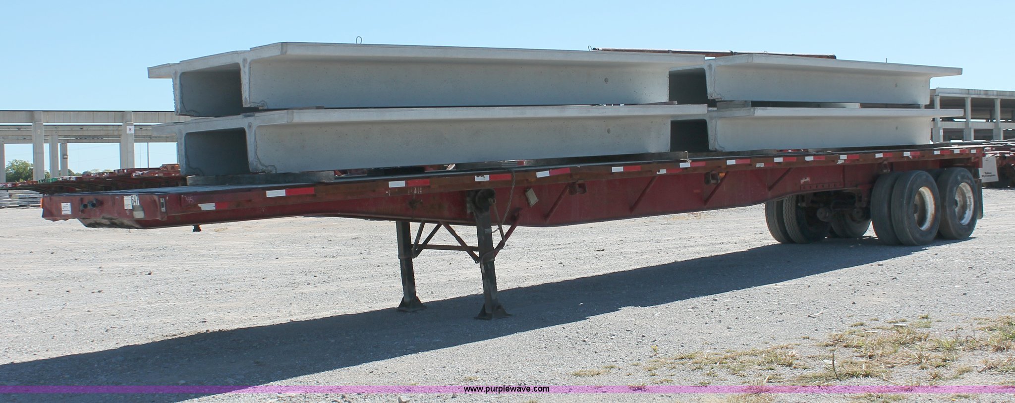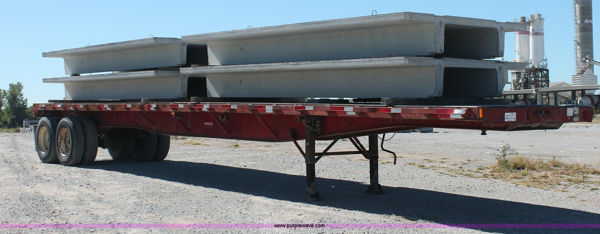This 1989 Fruehauf flatbed tandem axle float trailer will sell to the highest bidder regardless of price.
