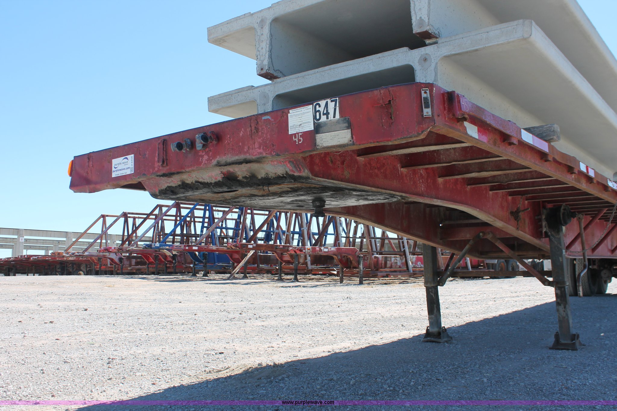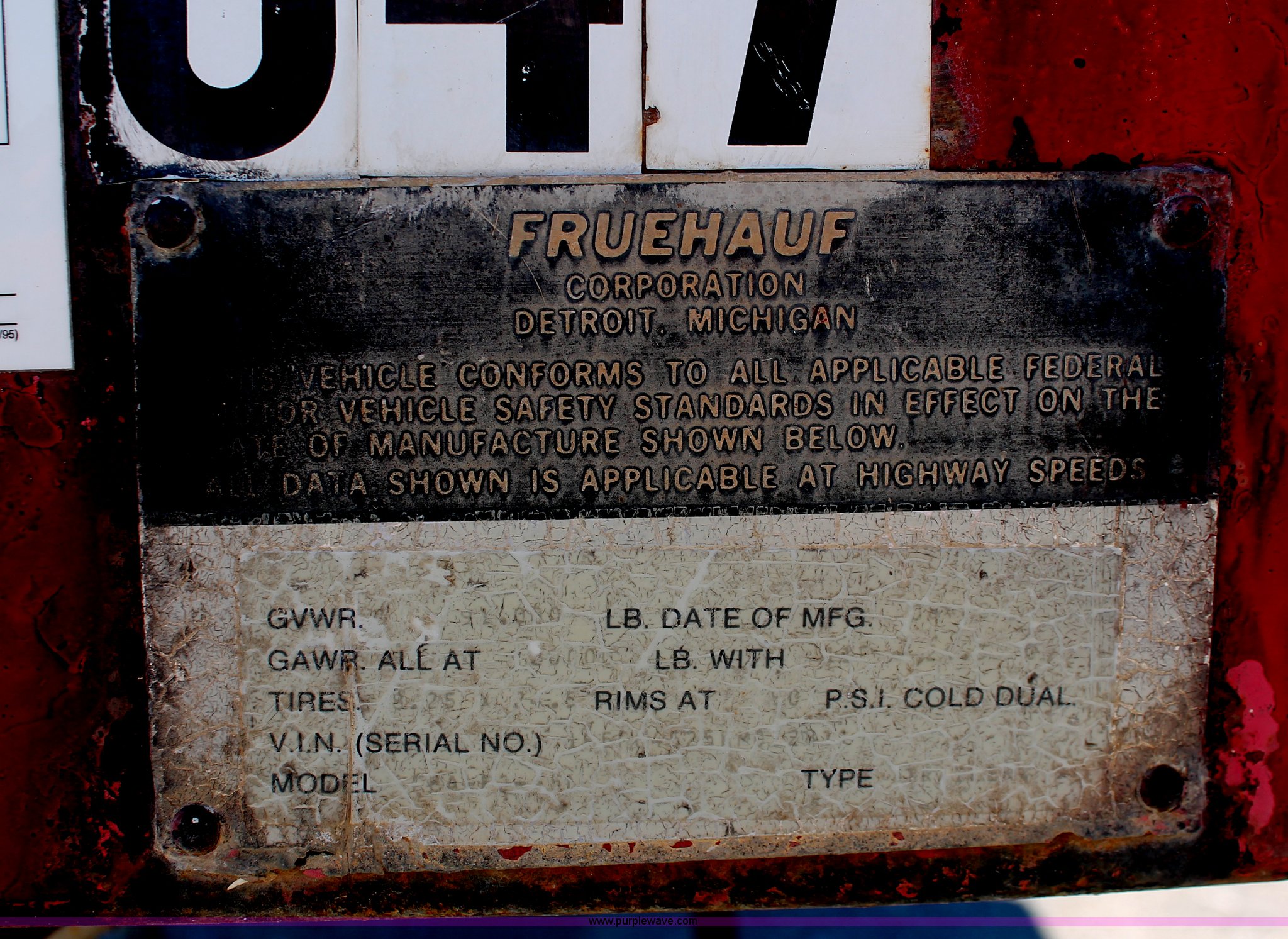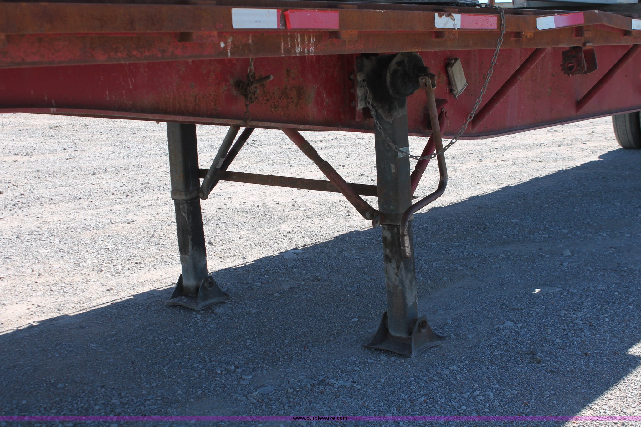 Purple Wave is selling a used Flat or Drop Deck Trailer in Oklahoma. This item is a 1989 Fruehauf flatbed tandem axle float trailer with the following: 96"W, Steel frame, Wood deck, Stake side pockets, 4"W ratchet strap housings, Manual landing gear, Trailer wiring, Spring suspension, Air brakes, 11R24.5 tires, TDI 647