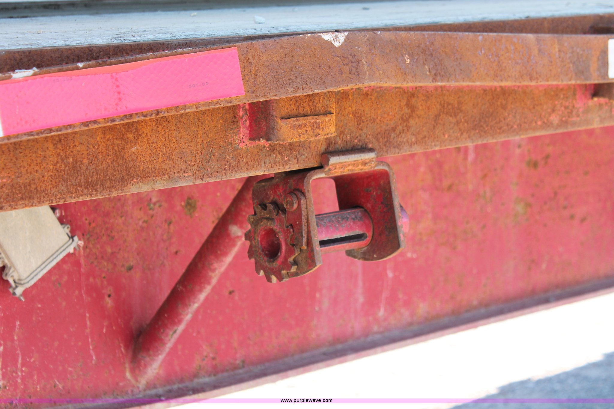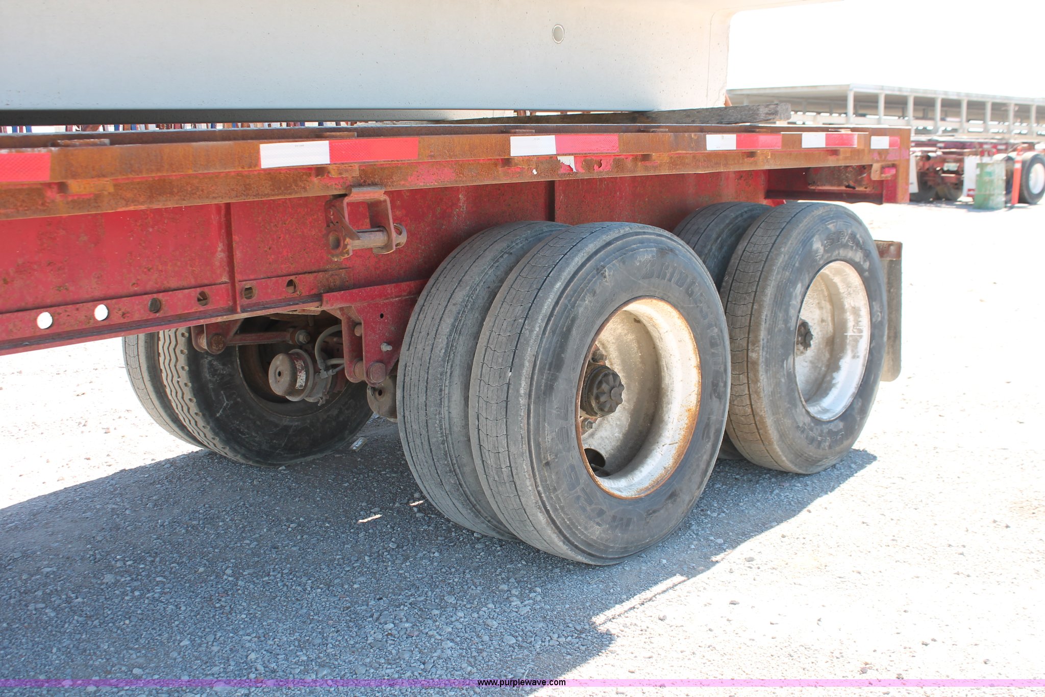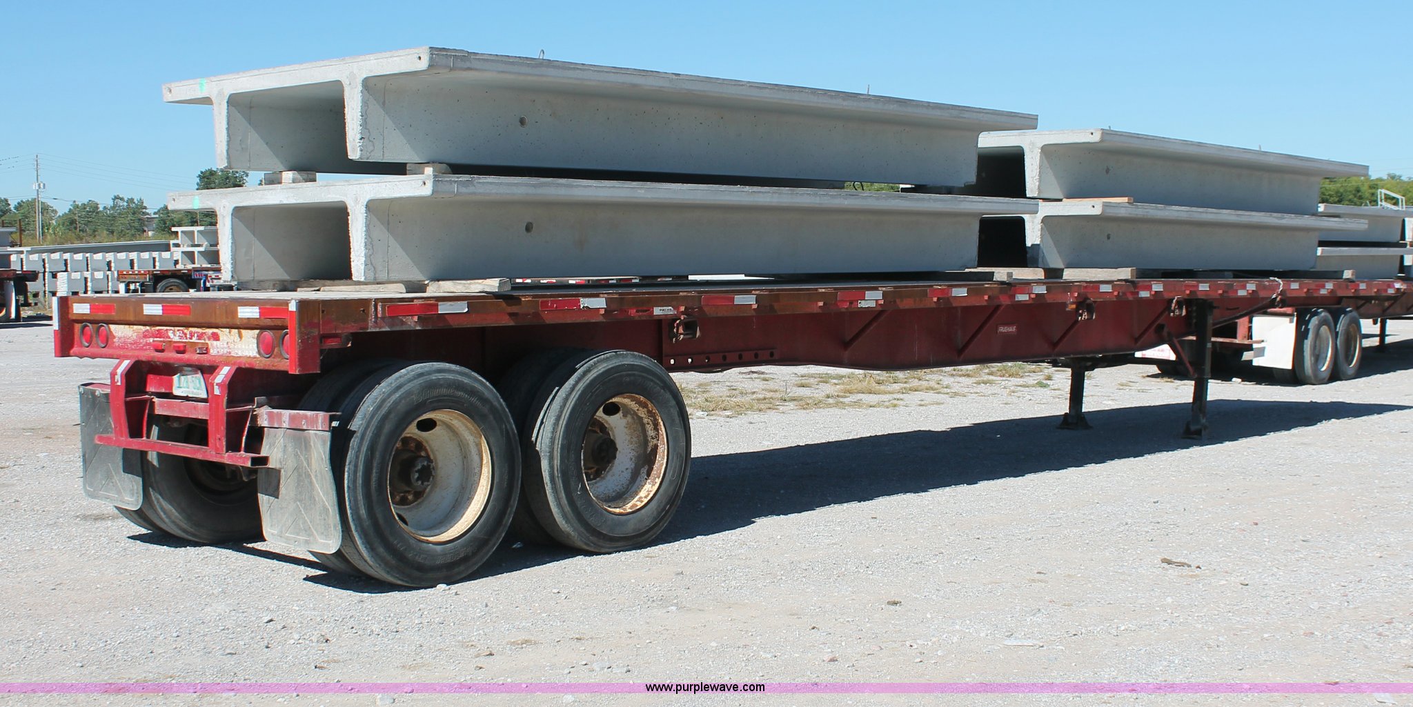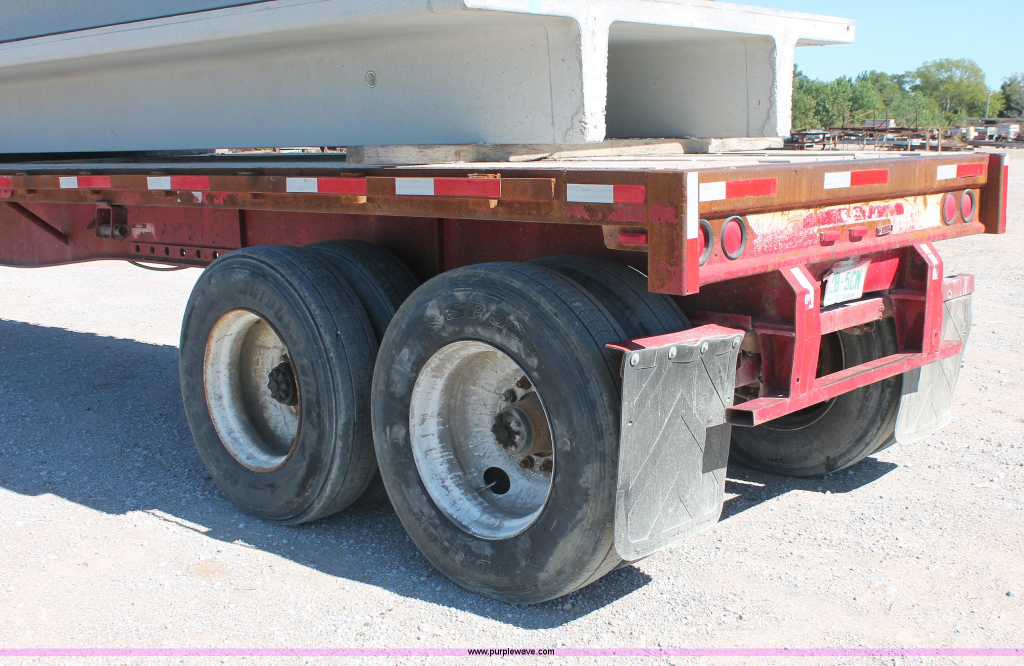 Purple Wave is selling a used Flat or Drop Deck Trailer in Oklahoma. This item is a 1989 Fruehauf flatbed tandem axle float trailer with the following: 96"W, Steel frame, Wood deck, Stake side pockets, 4"W ratchet strap housings, Manual landing gear, Trailer wiring, Spring suspension, Air brakes, 11R24.5 tires, TDI 647