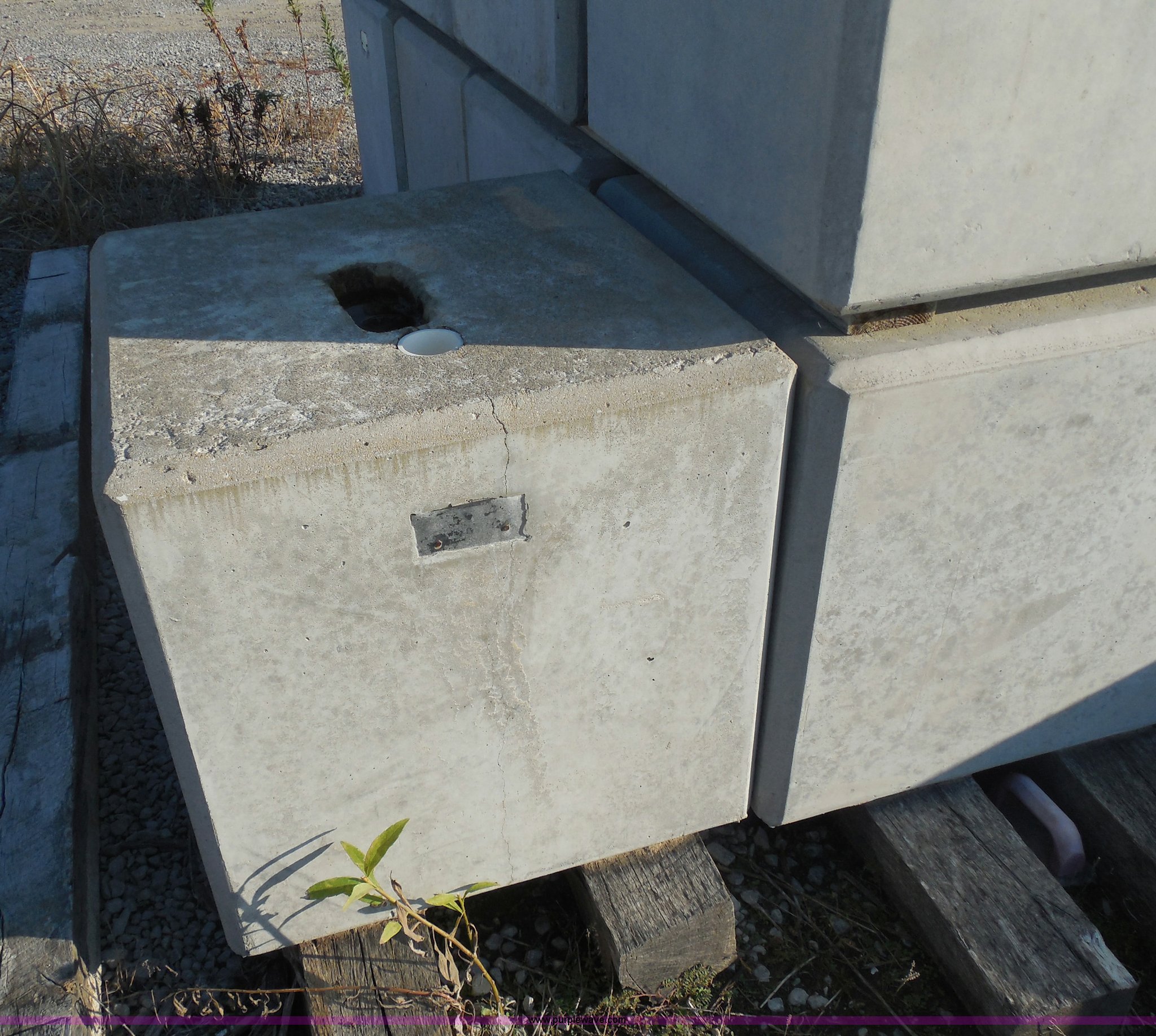 Purple Wave is selling a used Building Materials in Oklahoma. This item is a (27) square concrete ecology blocks with the following: 2' x 2', Embedded re-bar hook, 4" diameter hole