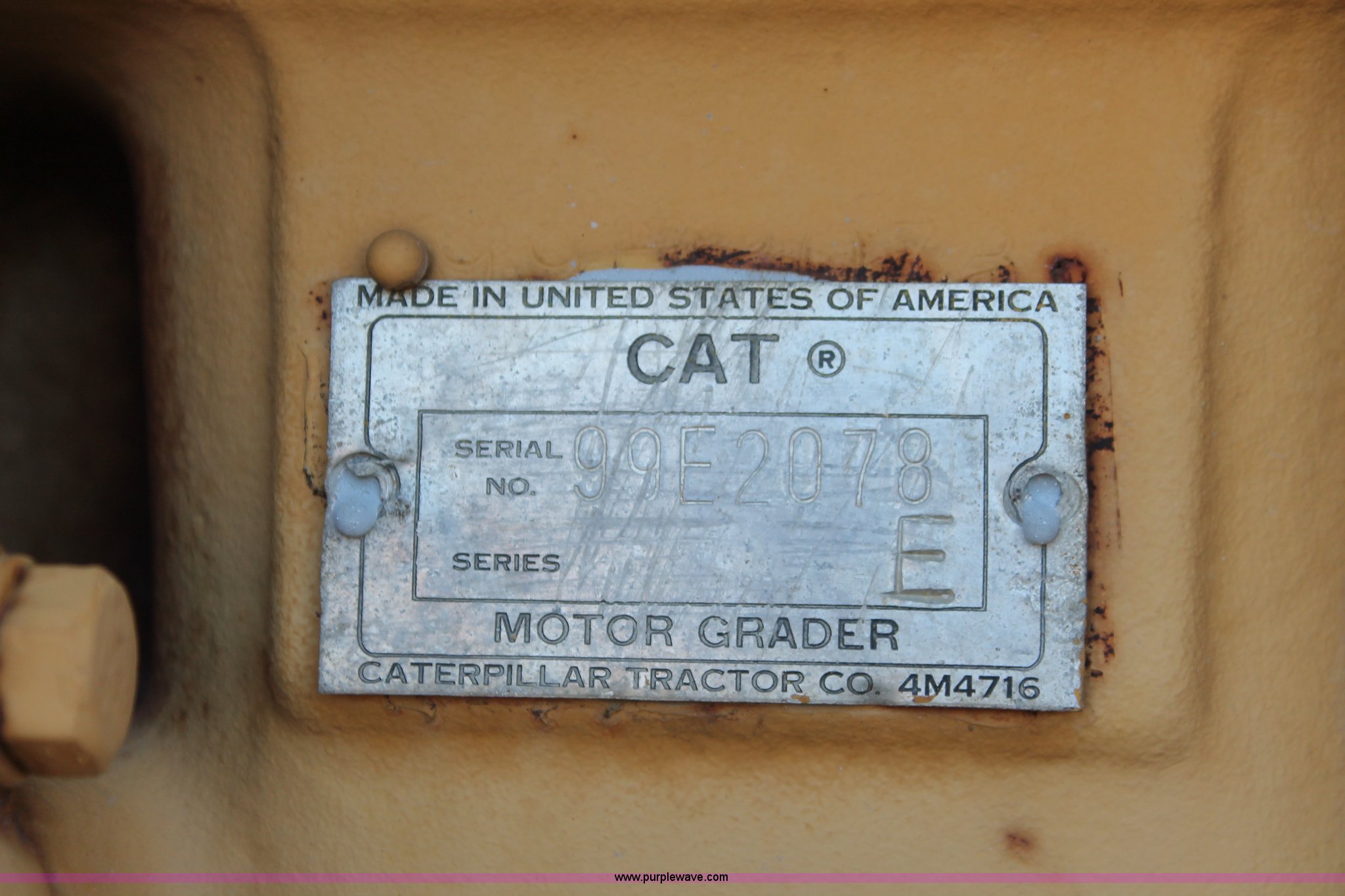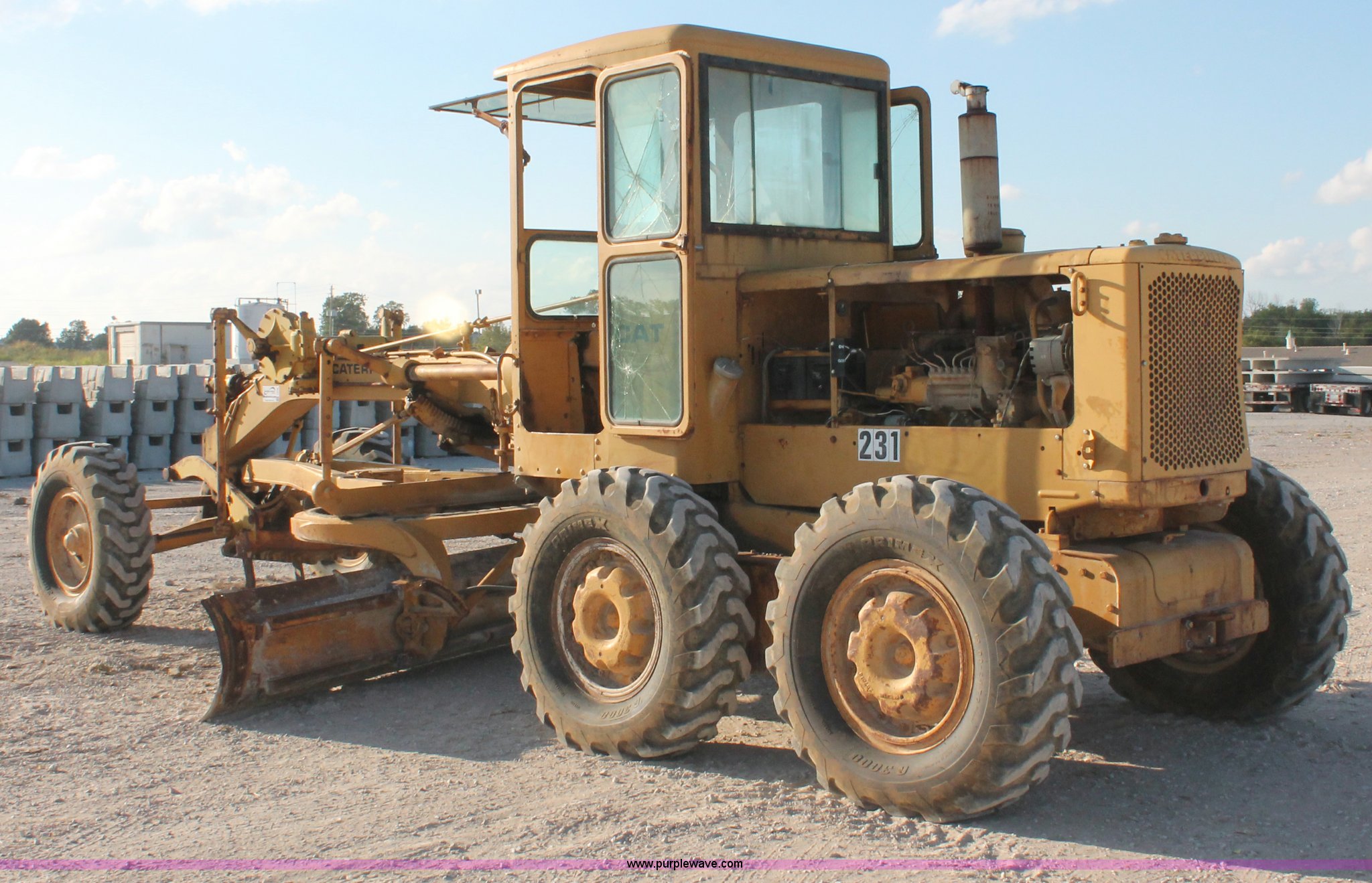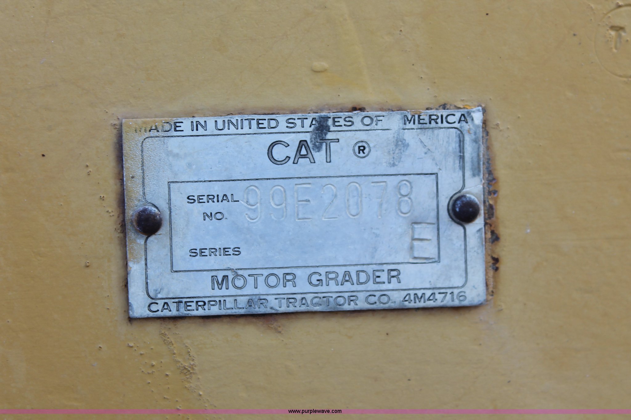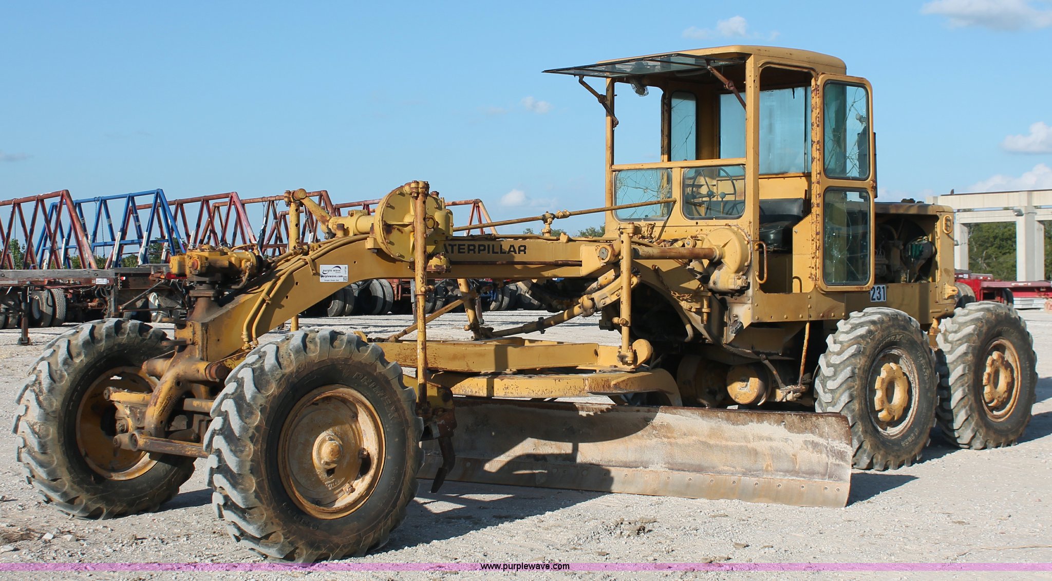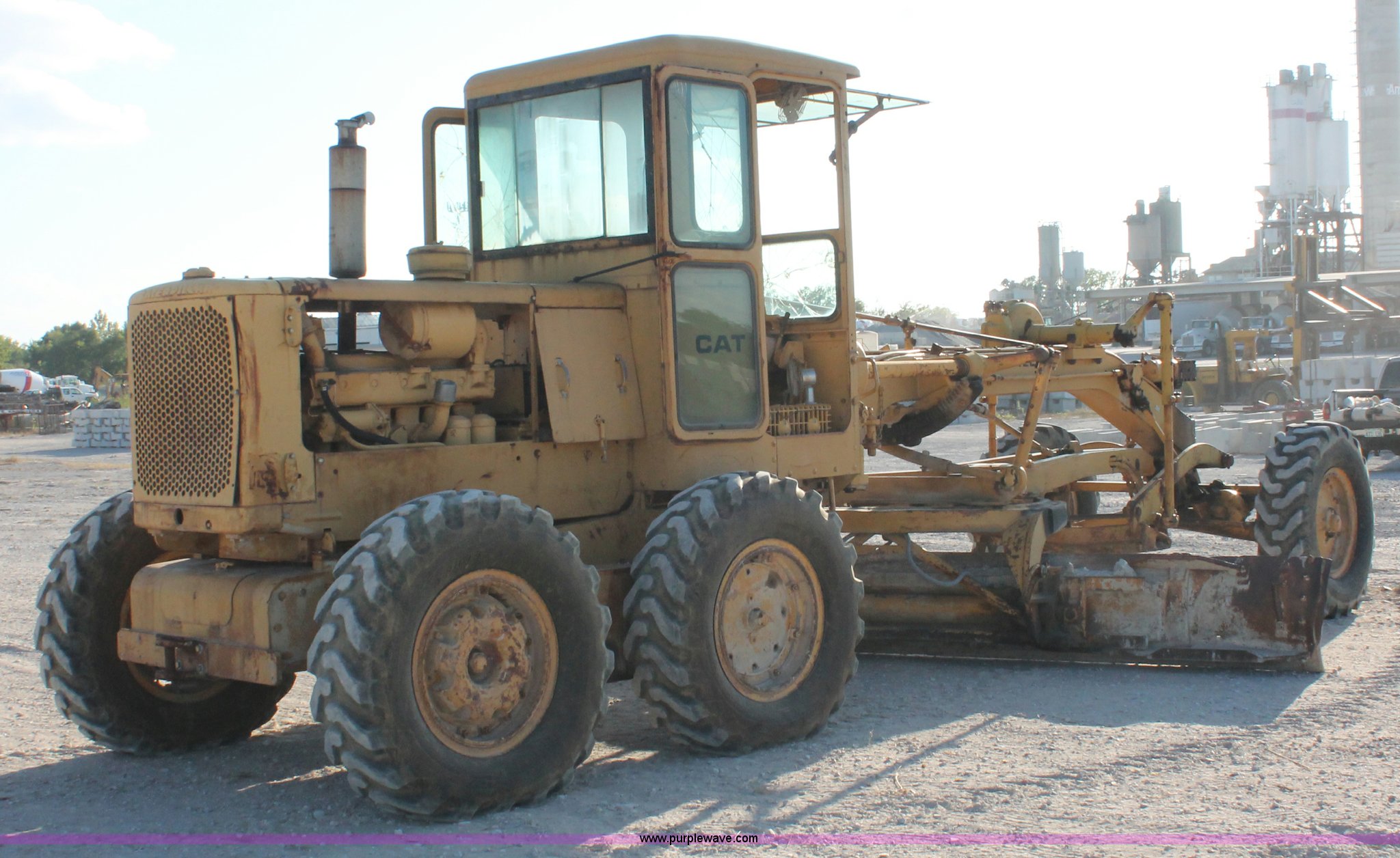Purple Wave is selling a used Motor Grader in Oklahoma. This item is a 1960 Caterpillar 12E motor grader with the following: Hours may vary, unit is still in use, Caterpillar six cylinder diesel engine, Six speed manual transmission, Hi-Lo, EROPS, Six valve hydraulic control, Blade lift left, blade lift right, circle, circle reverse, side shift, scarifier lift, wheel lean, 16' mold board, (11) shank capacity scarifier, Two shanks included, Pin hitch, Primex G3000 13.00-24 tires, Glass cracked, Serial 99E2078, TDI 231