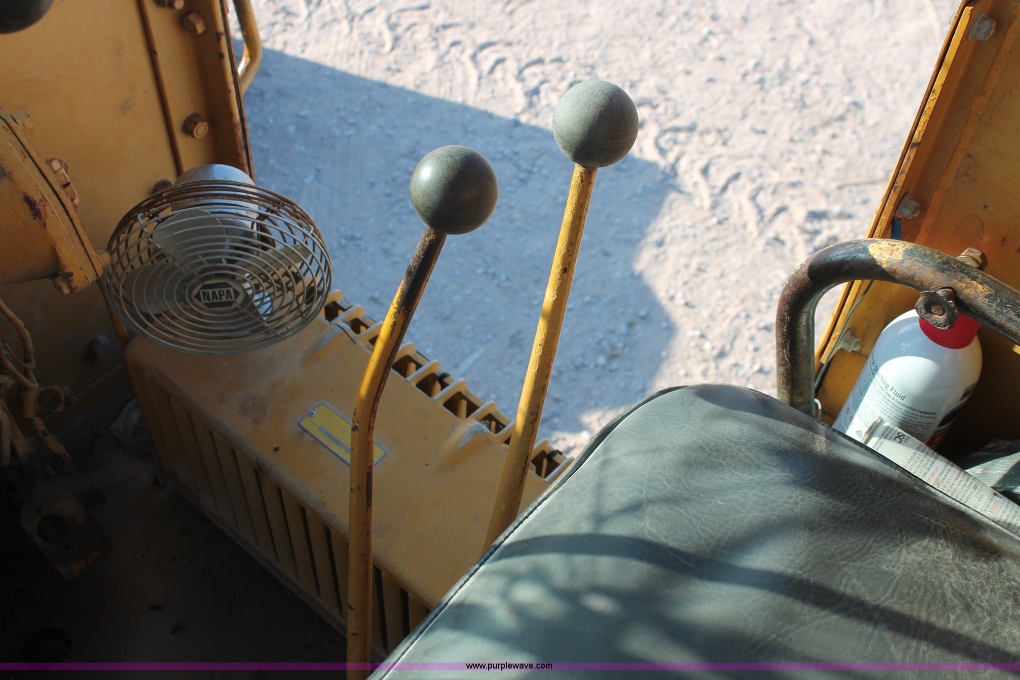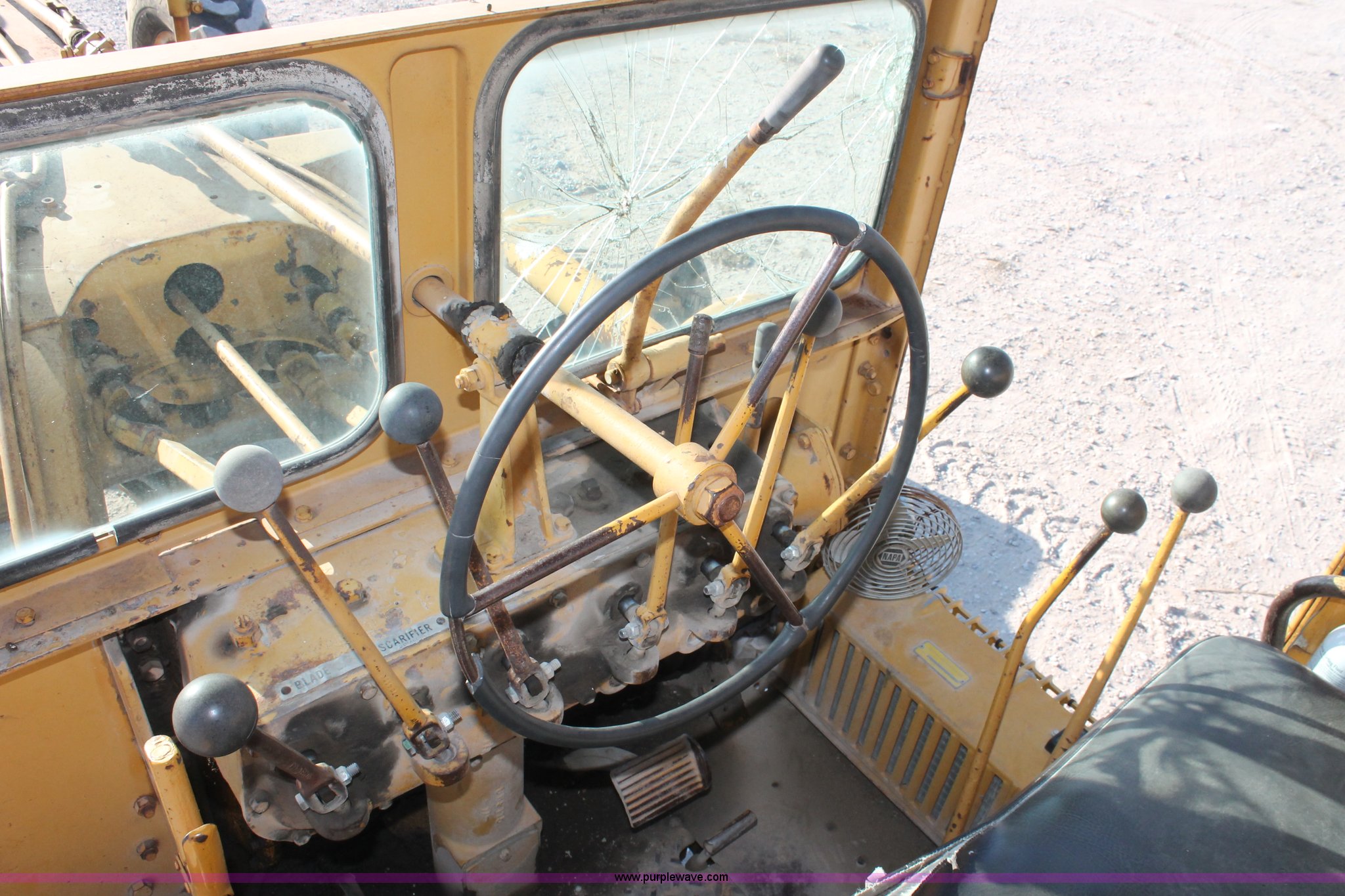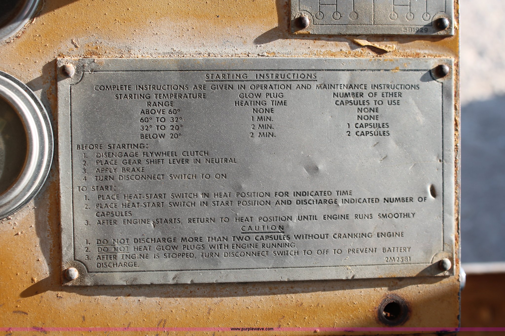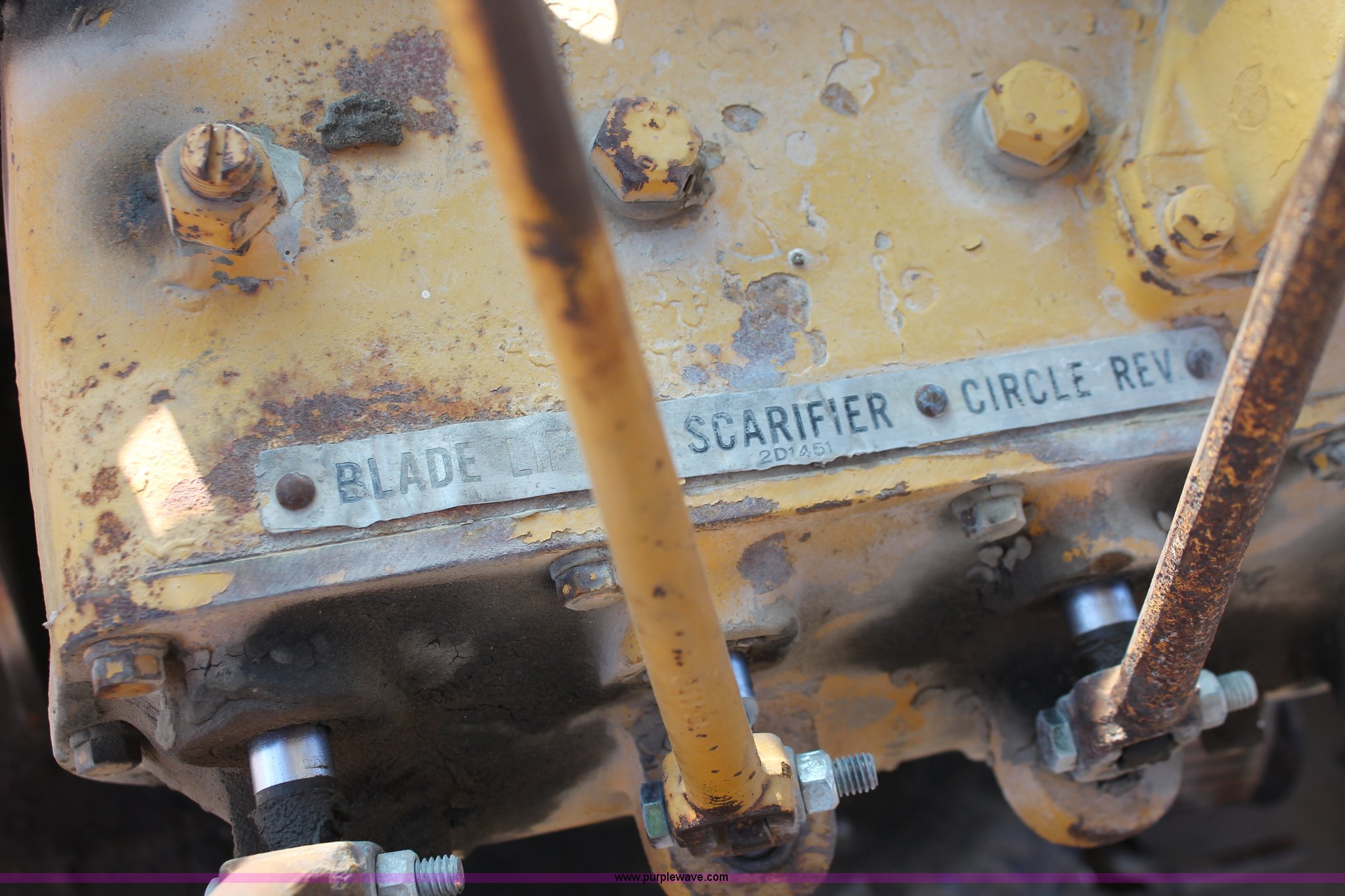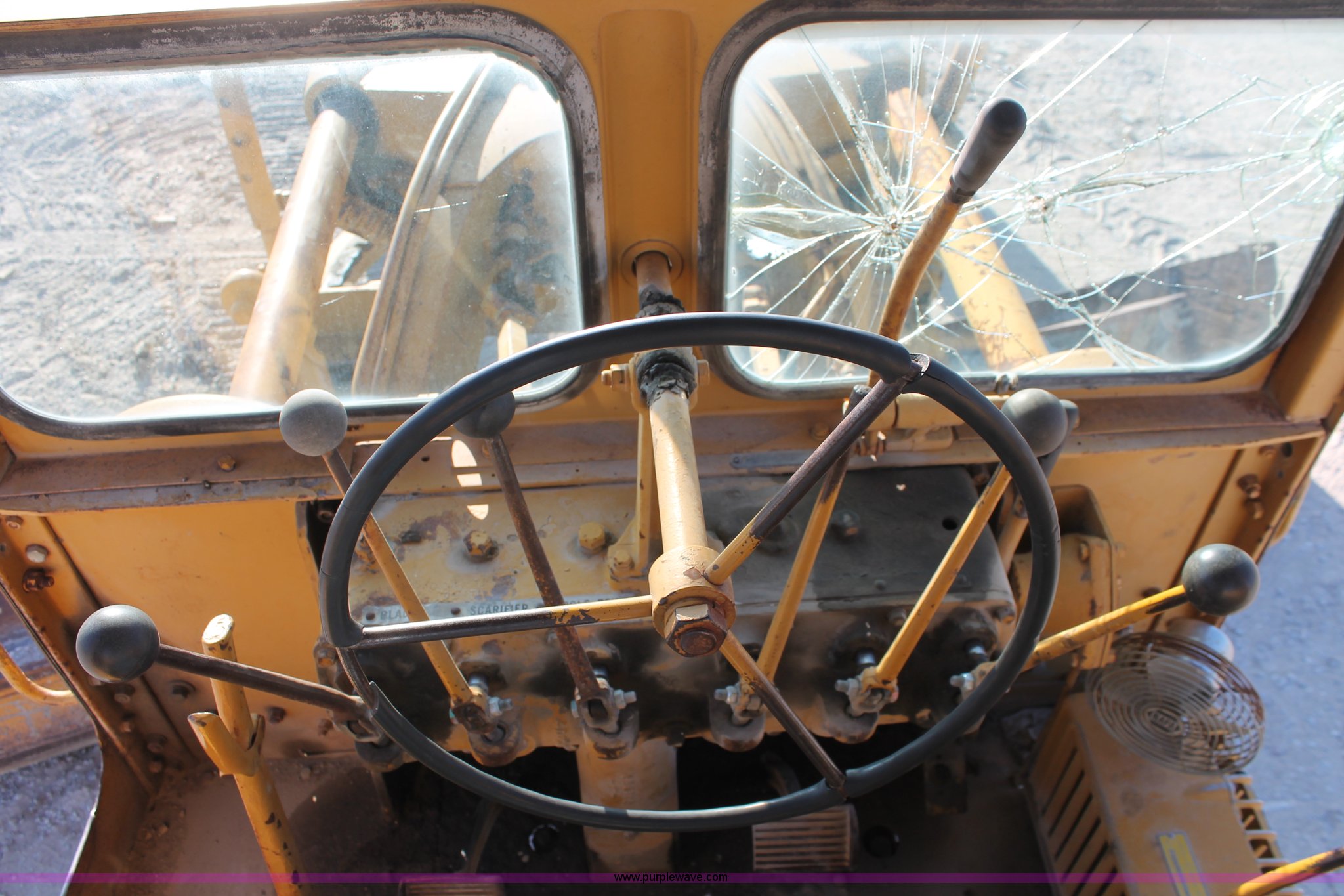 Purple Wave is selling a used Motor Grader in Oklahoma. This item is a 1960 Caterpillar 12E motor grader with the following: Hours may vary, unit is still in use, Caterpillar six cylinder diesel engine, Six speed manual transmission, Hi-Lo, EROPS, Six valve hydraulic control, Blade lift left, blade lift right, circle, circle reverse, side shift, scarifier lift, wheel lean, 16' mold board, (11) shank capacity scarifier, Two shanks included, Pin hitch, Primex G3000 13.00-24 tires, Glass cracked, Serial 99E2078, TDI 231