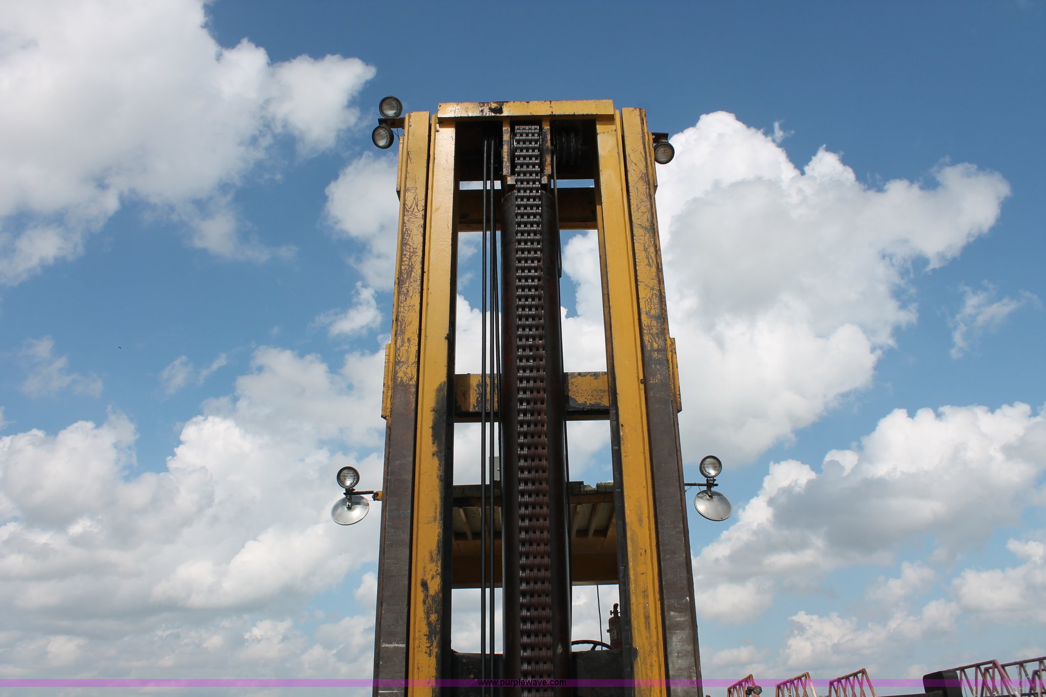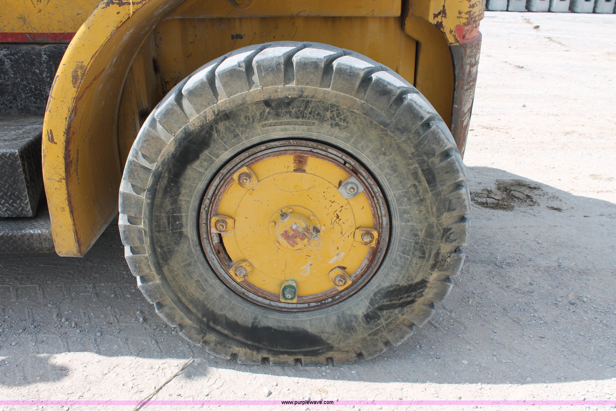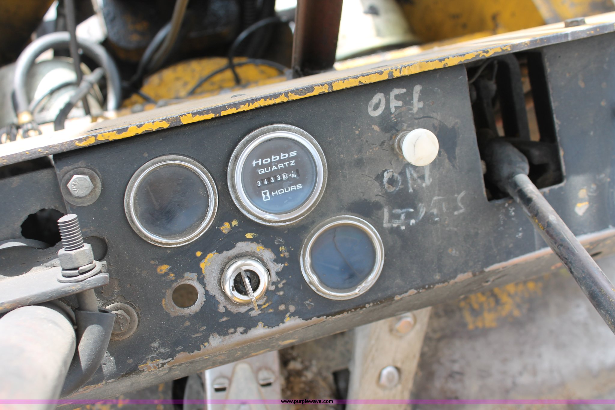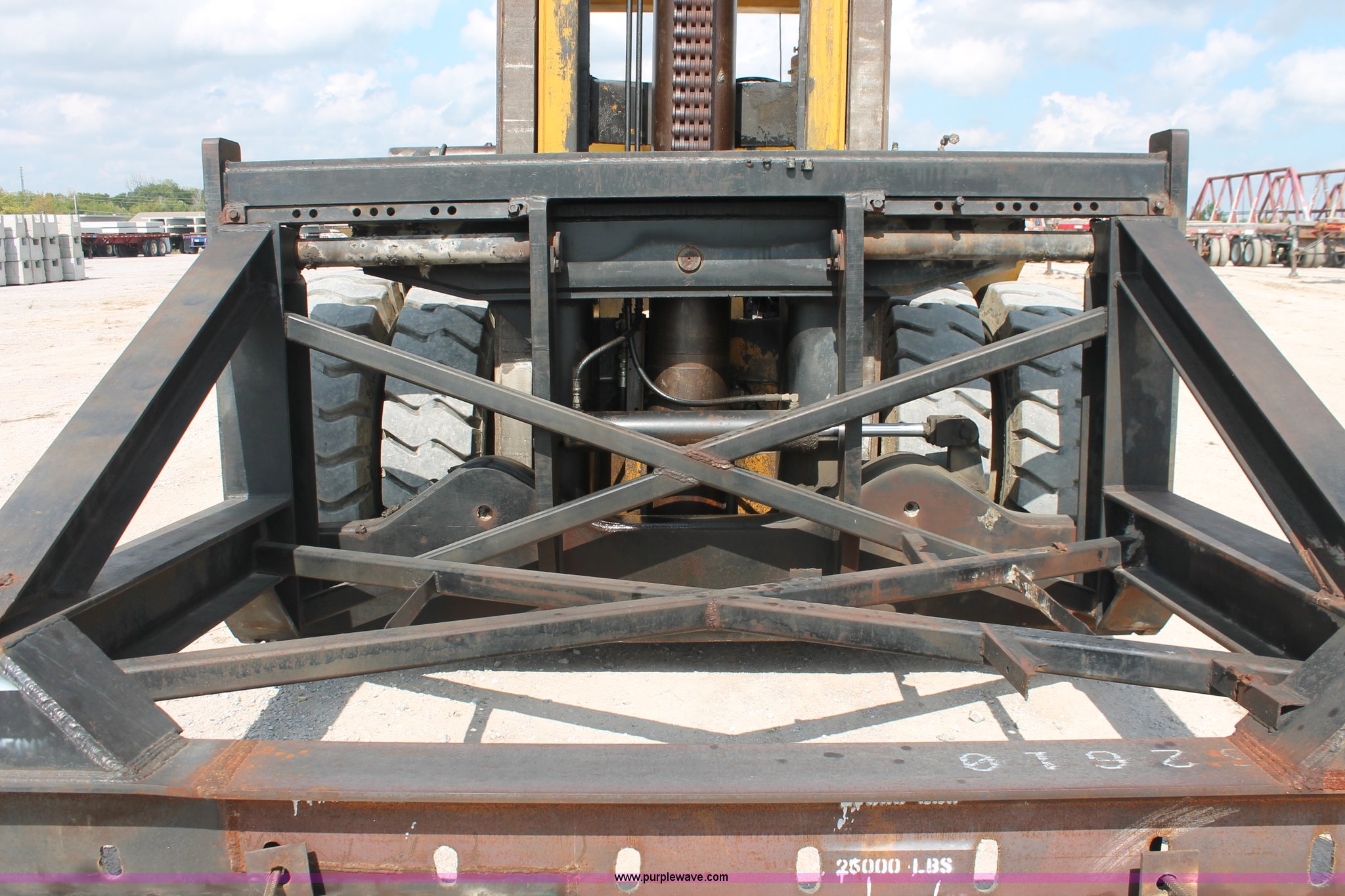 Purple Wave is selling a used Strt. Mast Rough Terr. Forklift in Oklahoma. This item is a 1974 Hyster lift truck with the following: 3,433 hours on meter, Hours may vary, unit is still in use, Detroit Diesel six cylinder diesel engine, OROPS, Work lights, Two stick hydraulic controls, Lift, tilt, and side shift, 25'W lifting beam, 25,000 lbs maximum lift capacity, Four point lifting anchors, 14.00-24 tires, Serial B008P0-1878V, TDI 606