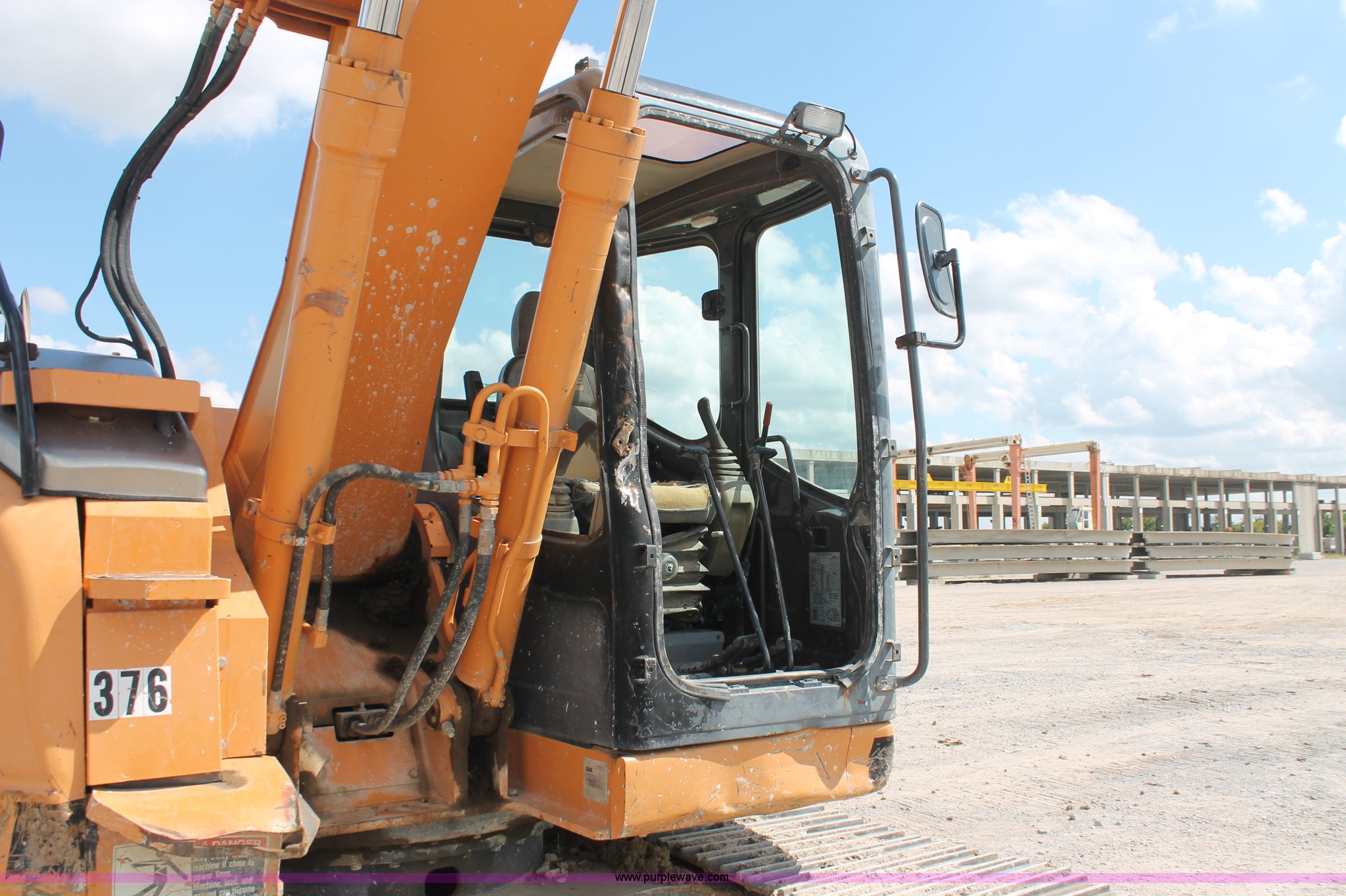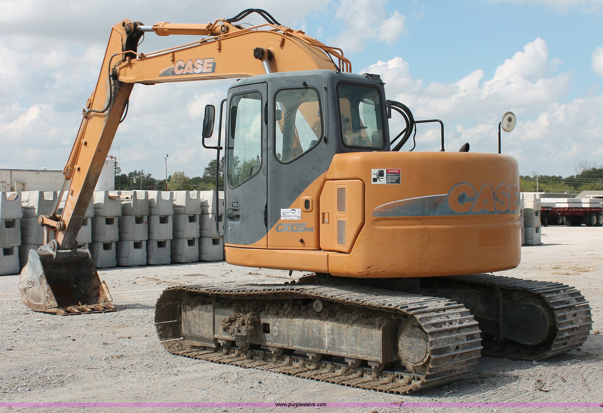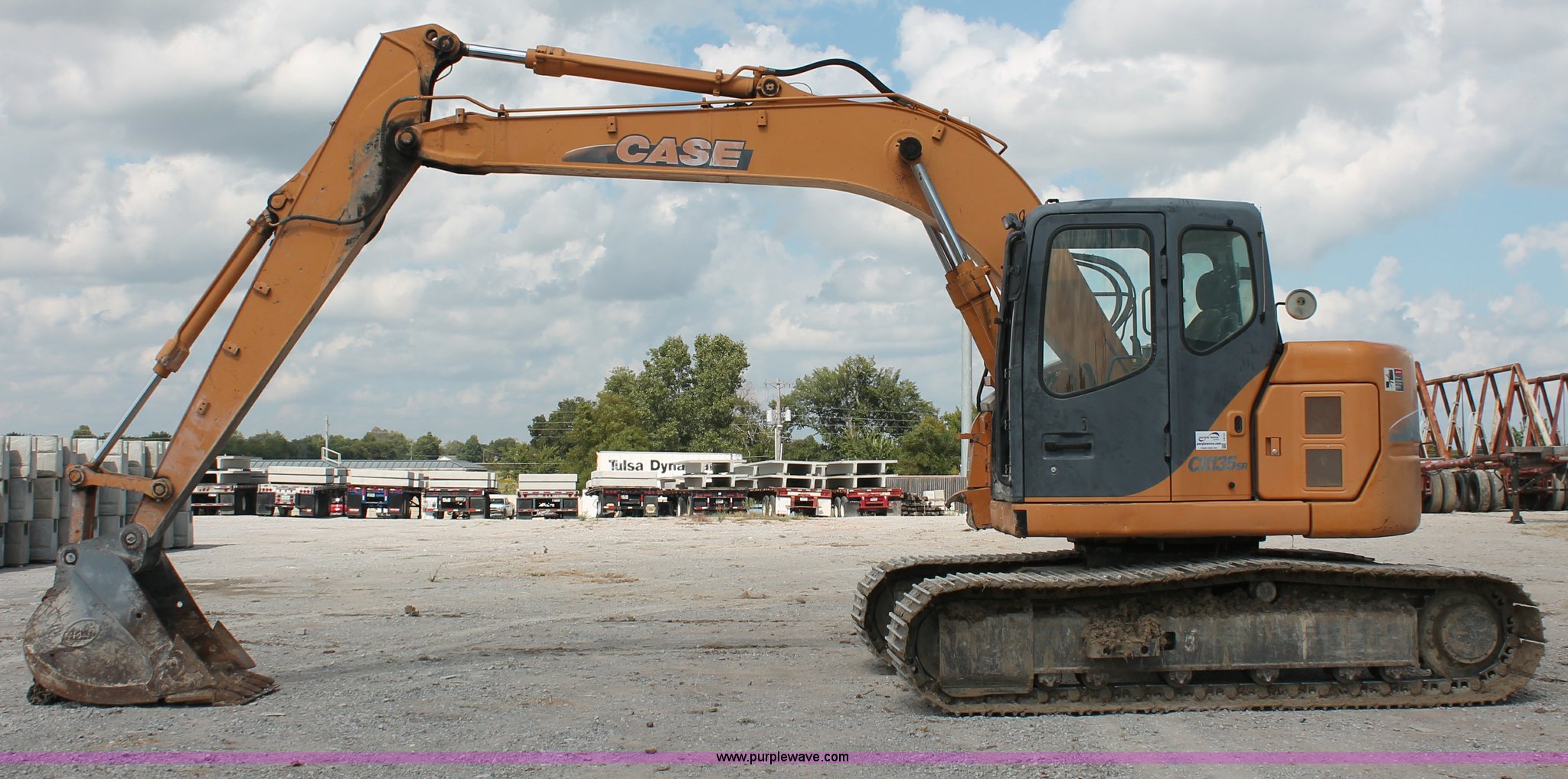 Purple Wave is selling a used Hydraulic Excavator in Oklahoma. This item is a 2006 Case CX135SR excavator with the following: 1,735 hours on meter, Hours may vary, still in use, Isuzu BB-4BG1T 4.4L four cylinder diesel engine, 88 HP at 2,100 RPM, Enclosed cab, AC and heat, Air suspension seat, Dual joystick drive control, Dual stick loader control, One front work light, Geith 36" bucket, (5) bolt-on teeth, 8' stick, 17'9" dig depth, 26'9" horizontal ground reach, 27.5"W triple grouser tracks, 30,864 lbs. base operating weight, Missing front window and side, Serial DAC151438, TDI 376