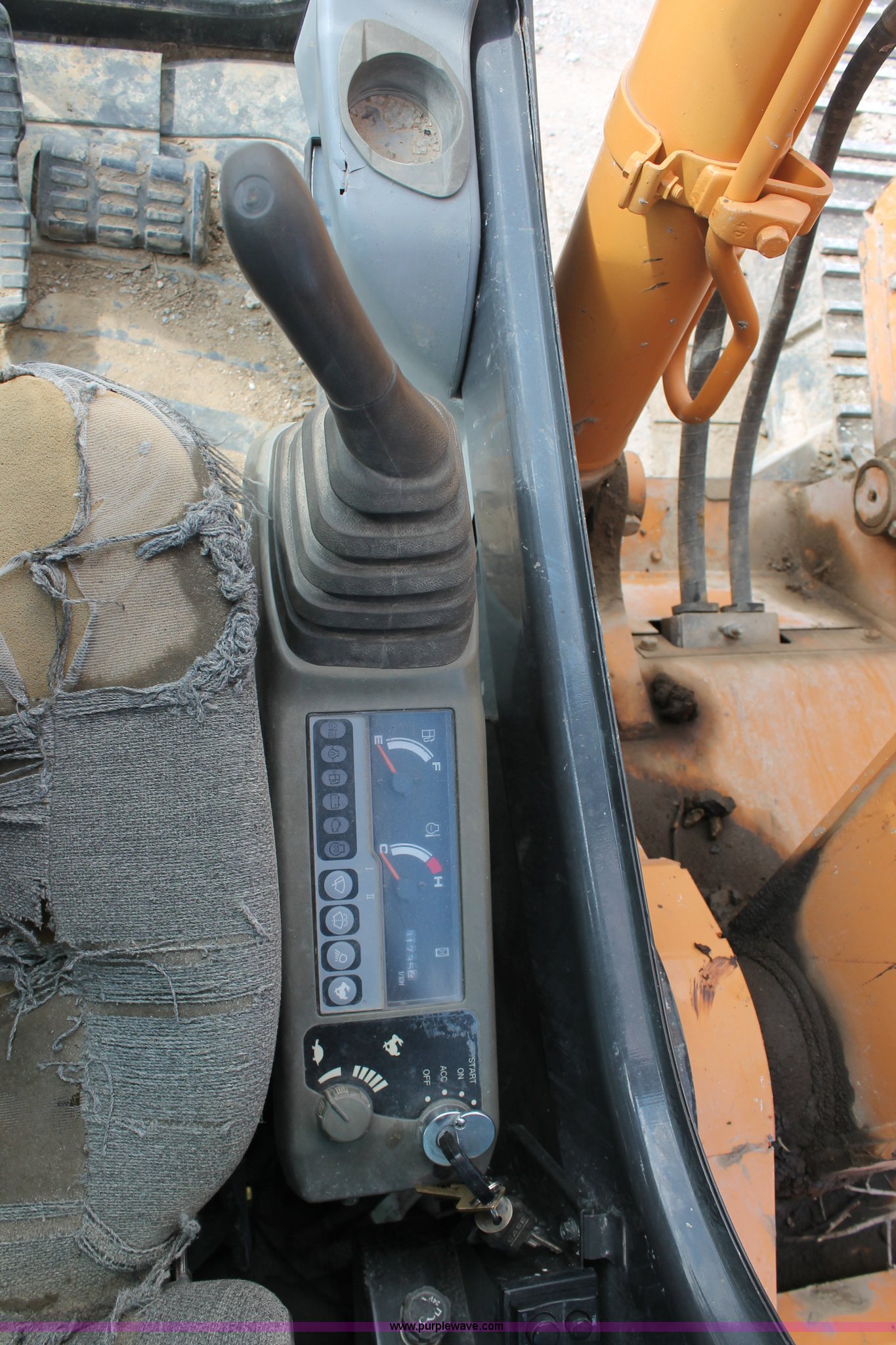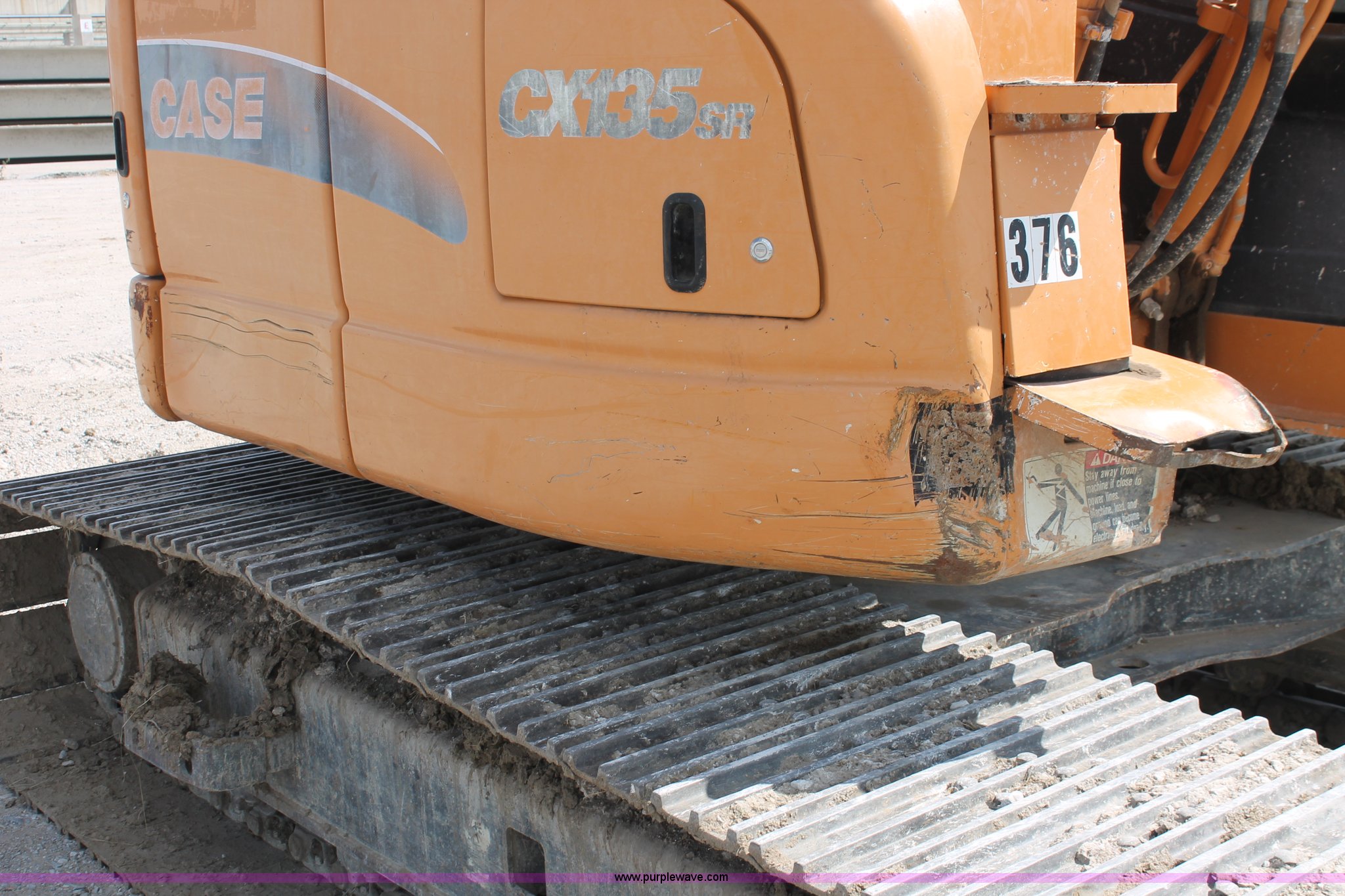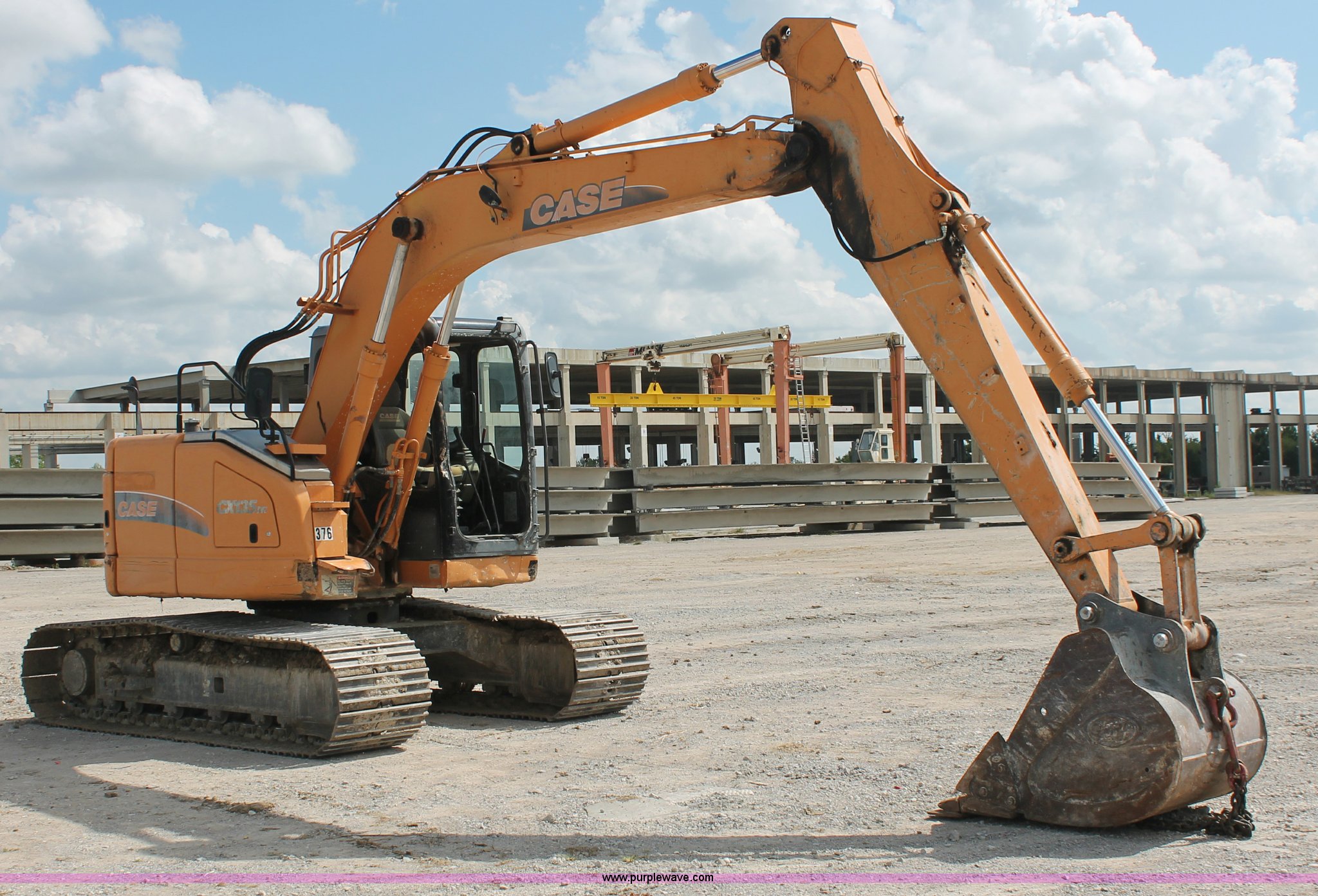 Purple Wave is selling a used Hydraulic Excavator in Oklahoma. This item is a 2006 Case CX135SR excavator with the following: 1,735 hours on meter, Hours may vary, still in use, Isuzu BB-4BG1T 4.4L four cylinder diesel engine, 88 HP at 2,100 RPM, Enclosed cab, AC and heat, Air suspension seat, Dual joystick drive control, Dual stick loader control, One front work light, Geith 36" bucket, (5) bolt-on teeth, 8' stick, 17'9" dig depth, 26'9" horizontal ground reach, 27.5"W triple grouser tracks, 30,864 lbs. base operating weight, Missing front window and side, Serial DAC151438, TDI 376