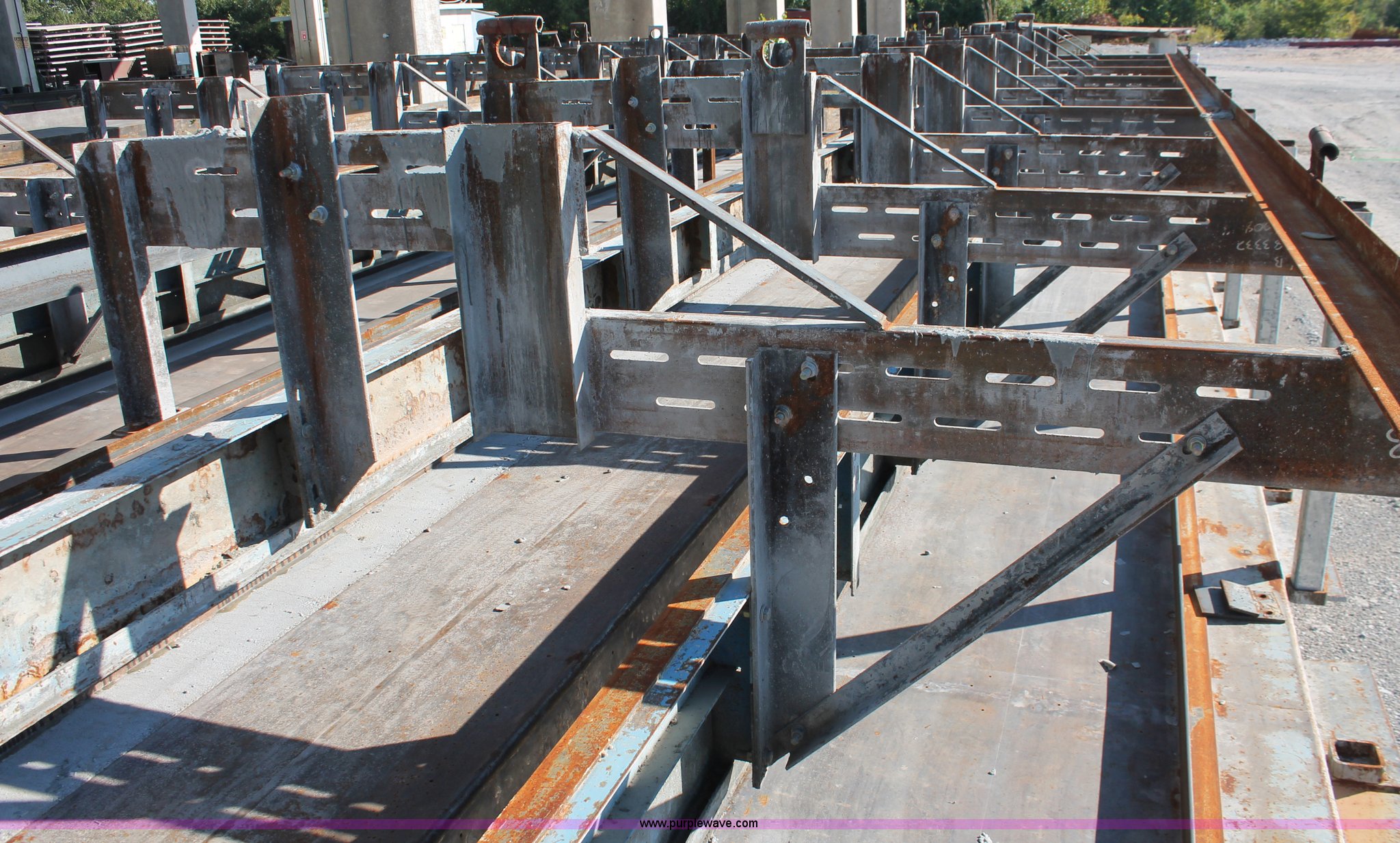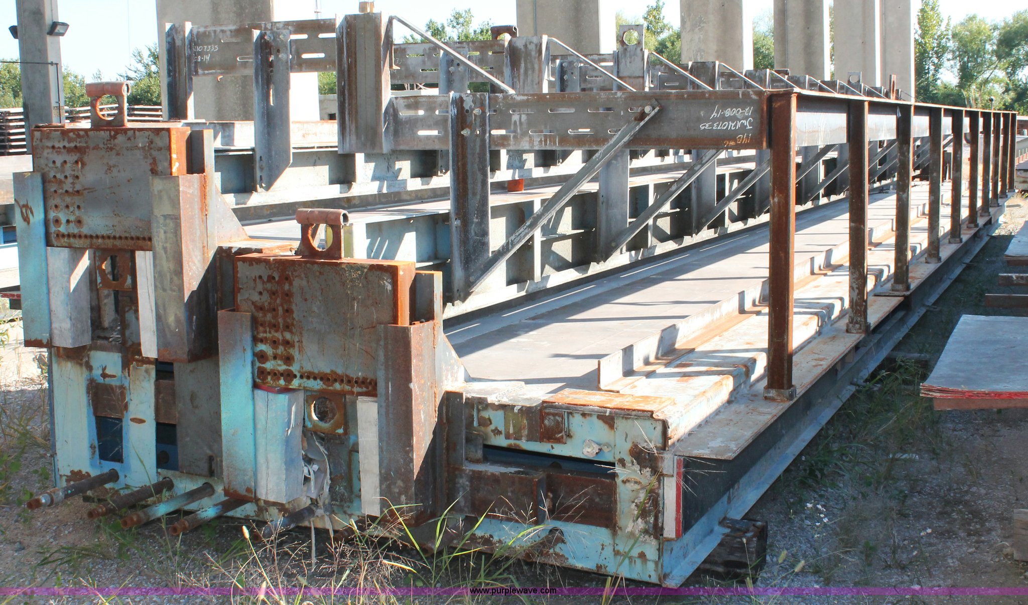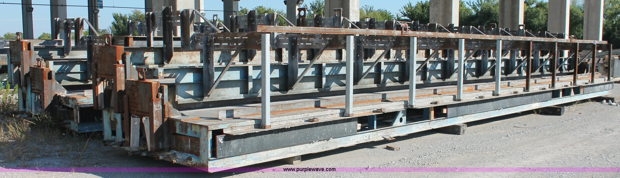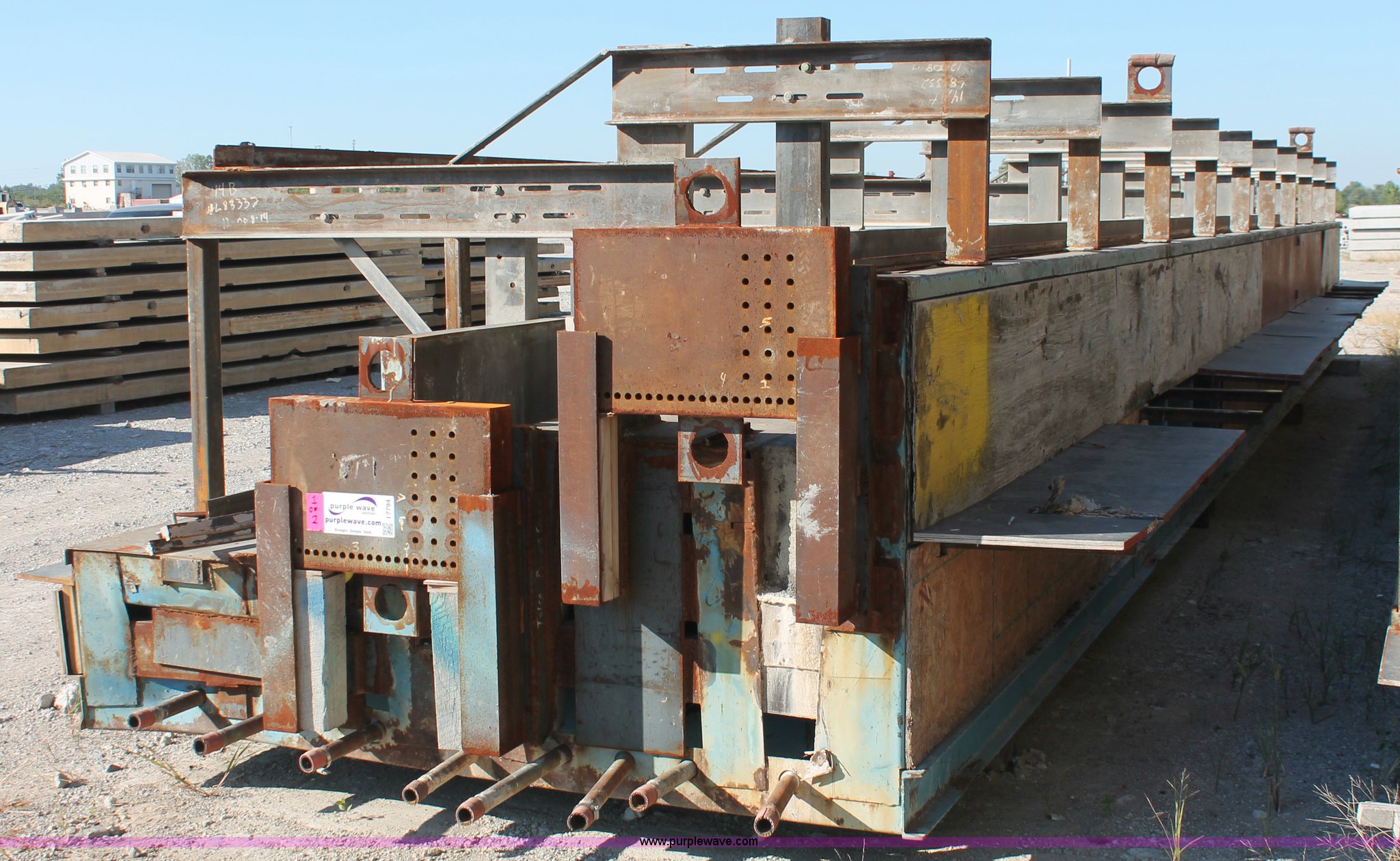 Purple Wave is selling a used Building Materials in Oklahoma. This item is a (2) Hamilton double riser concrete form beds with the following: Self-stressing, 50'L, Custom fabricated adjustable rise and run, Current settings of 32" run and 14"/18" rise, 1/2" pre-stressed cable compatibility, Adjustable bulkheads, (36) cable entries on each bulkhead, Heated in-bed plumbing