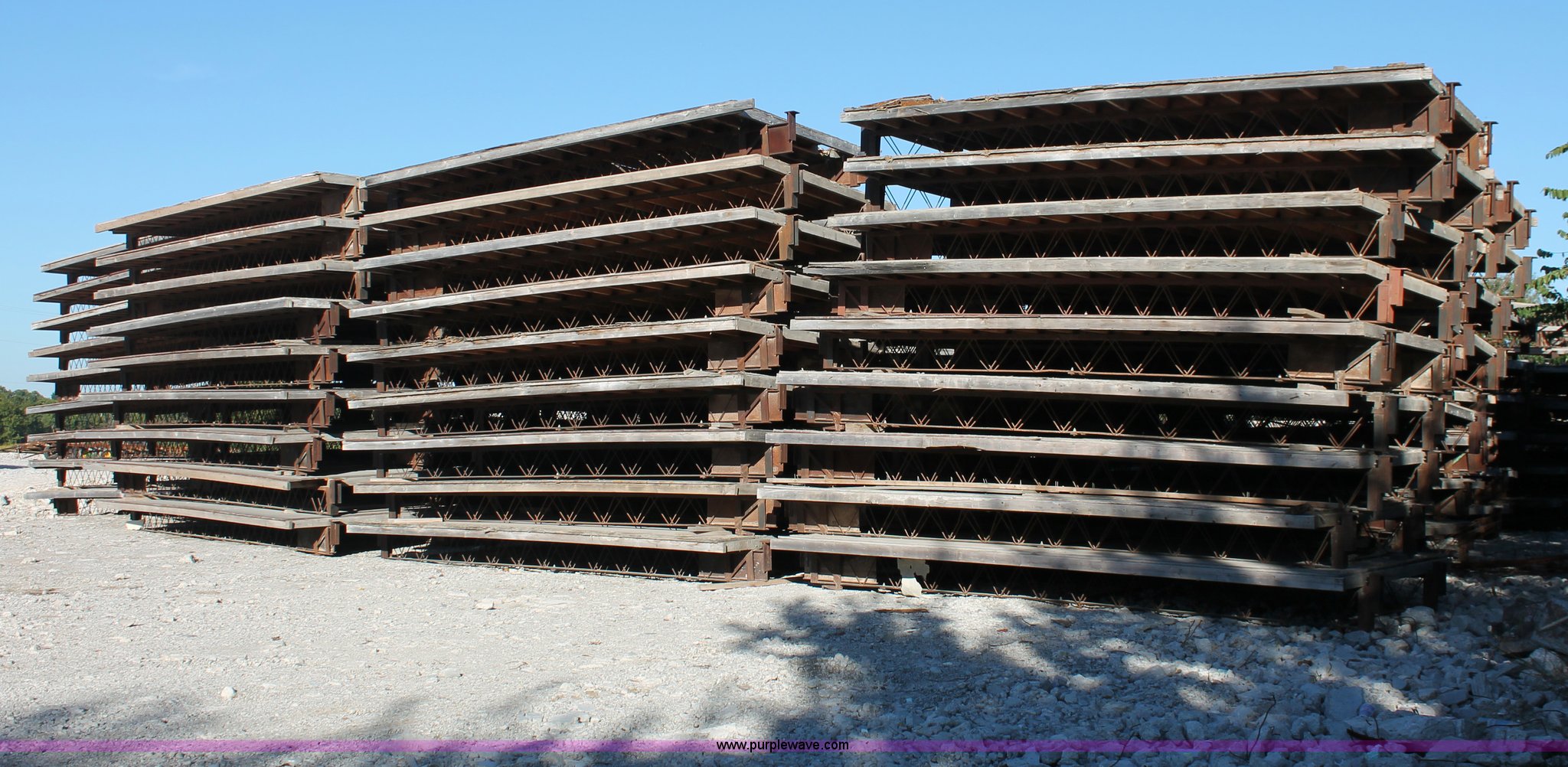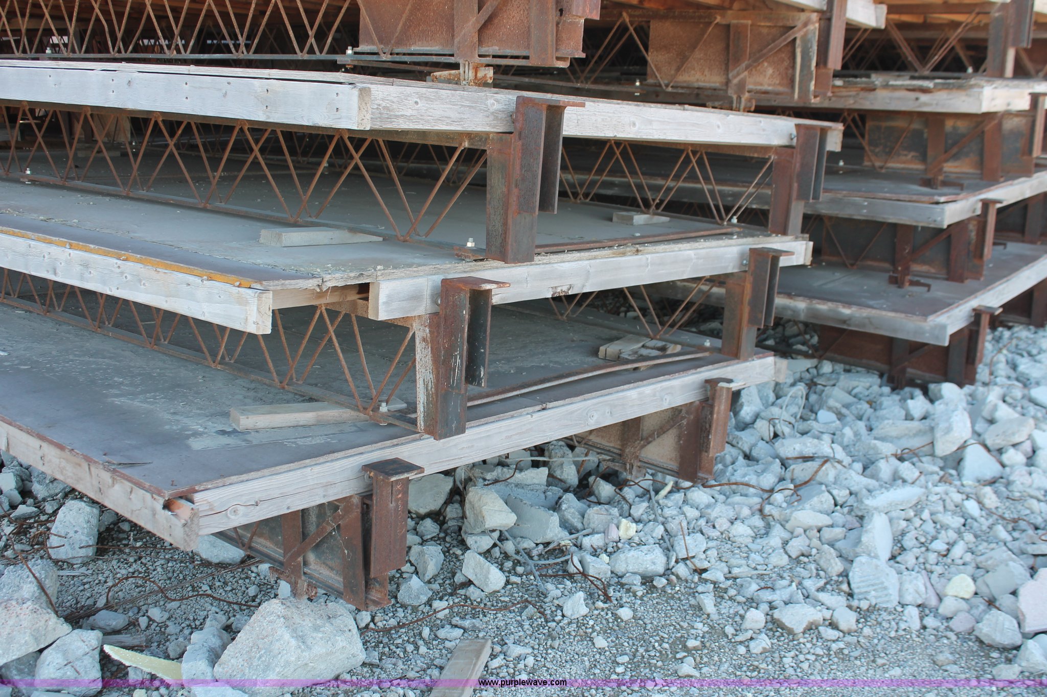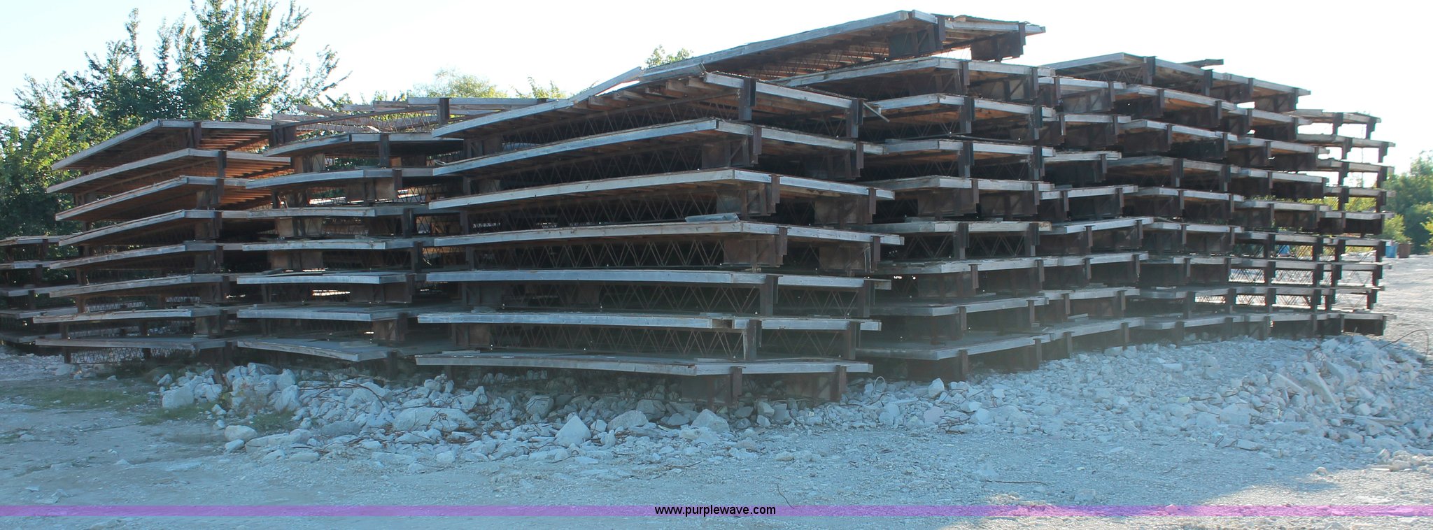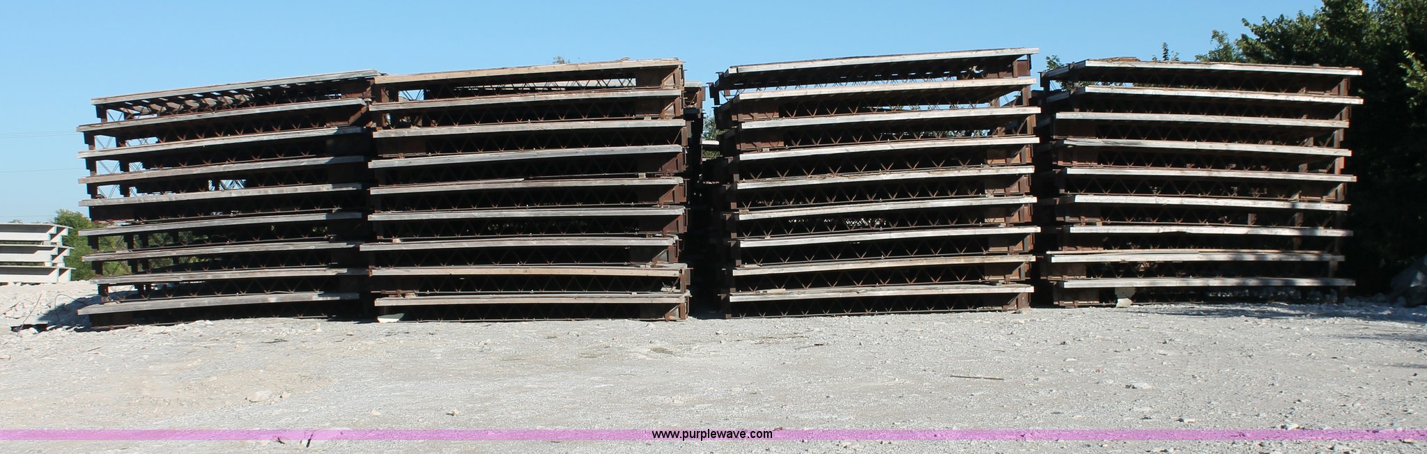 Purple Wave is selling a used Building Materials in Oklahoma. This item is a Hamilton tapered beam concrete from bed with hybrid deck form system with the following: Hamilton tapered beam form bed, Hybrid deck forms, trusses, and forming jacks, Self-stressing, 400'L, (2) 200'L sections, 12" to 13" width taper, 32"H, 1/2" pre-stressed cable compatibility, (18) cable entries on each bulkhead, Heated in-bed plumbing, Hybrid deck form system, Approx 200 assembled forms, 3/4" plywood, 2x4 lumber, 16" steel truss with 12" angle lattice support composition, 16'L x 102"W x 16"H, Approx 150 additional trusses, (9) containers of steel forming jacks, (7) pallets of additional steel accessories