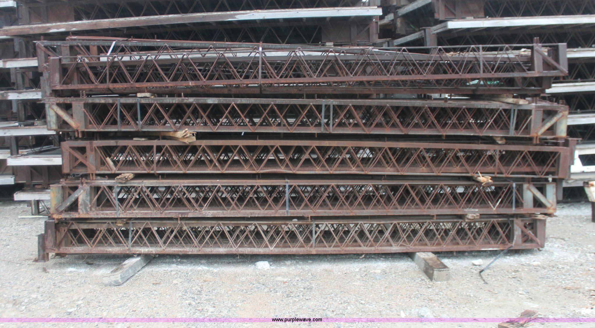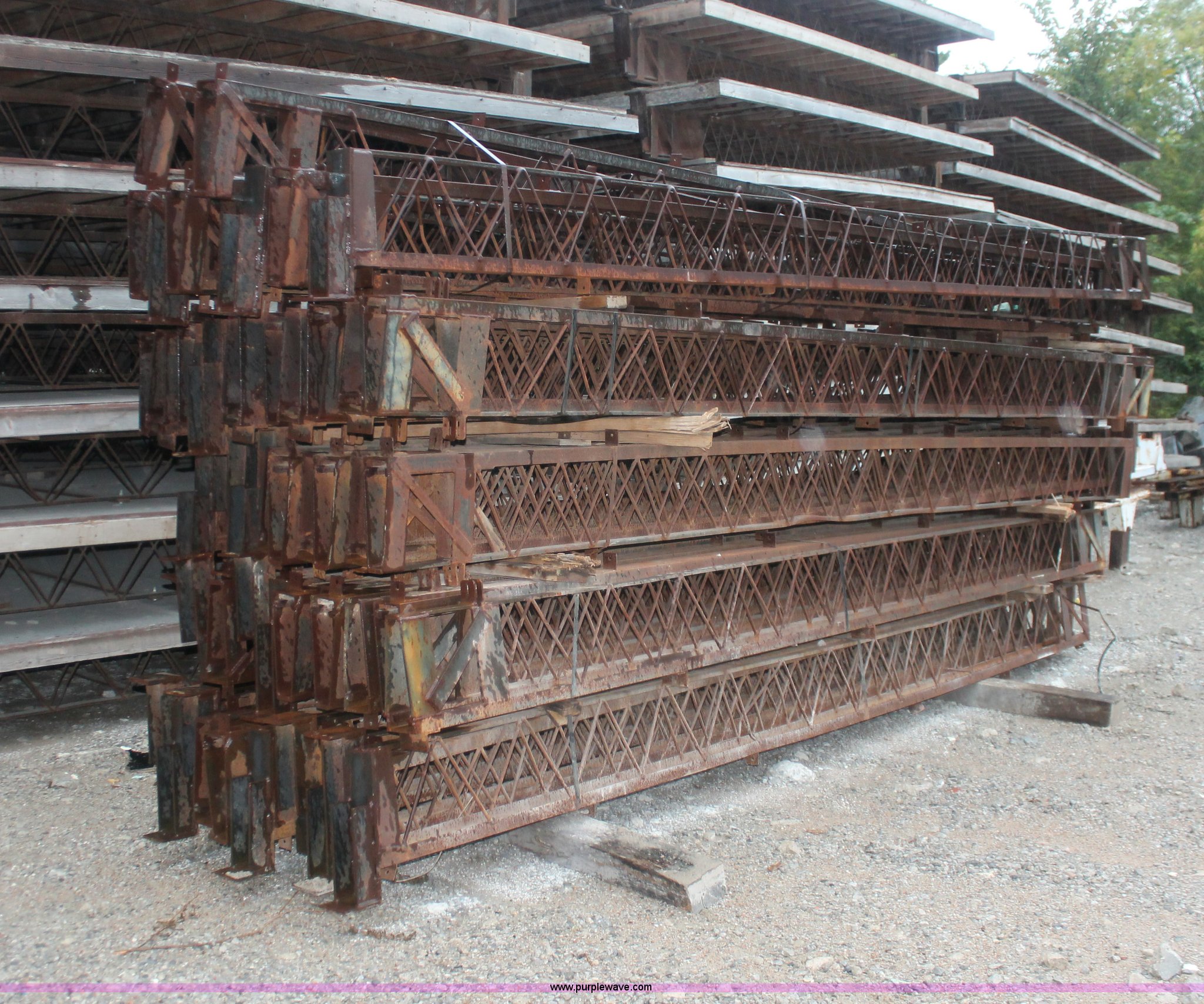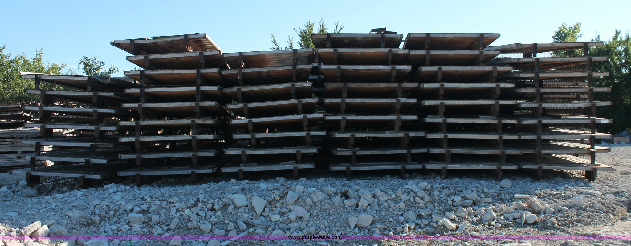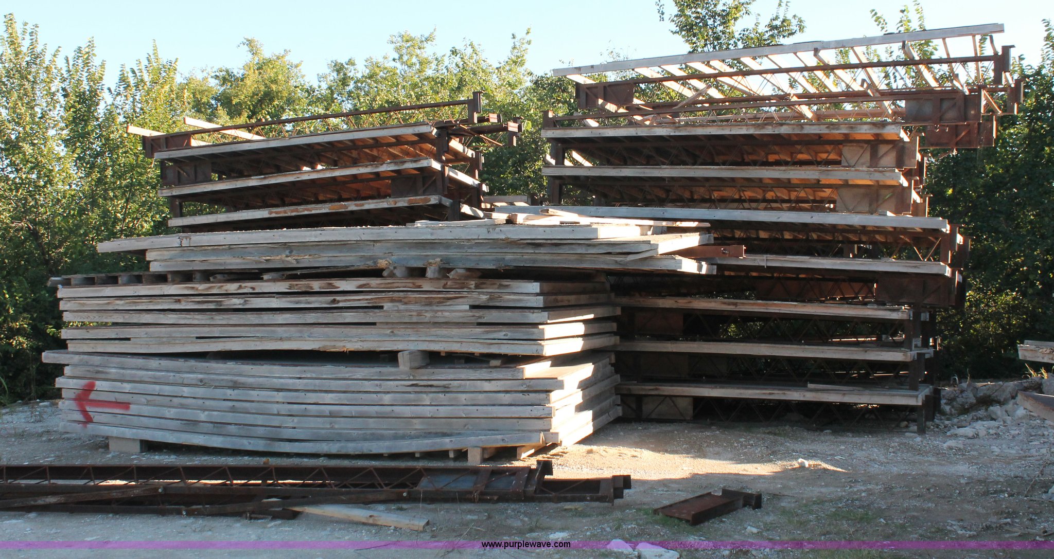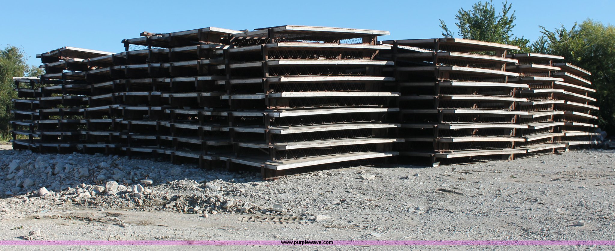 Purple Wave is selling a used Building Materials in Oklahoma. This item is a Hamilton tapered beam concrete from bed with hybrid deck form system with the following: Hamilton tapered beam form bed, Hybrid deck forms, trusses, and forming jacks, Self-stressing, 400'L, (2) 200'L sections, 12" to 13" width taper, 32"H, 1/2" pre-stressed cable compatibility, (18) cable entries on each bulkhead, Heated in-bed plumbing, Hybrid deck form system, Approx 200 assembled forms, 3/4" plywood, 2x4 lumber, 16" steel truss with 12" angle lattice support composition, 16'L x 102"W x 16"H, Approx 150 additional trusses, (9) containers of steel forming jacks, (7) pallets of additional steel accessories