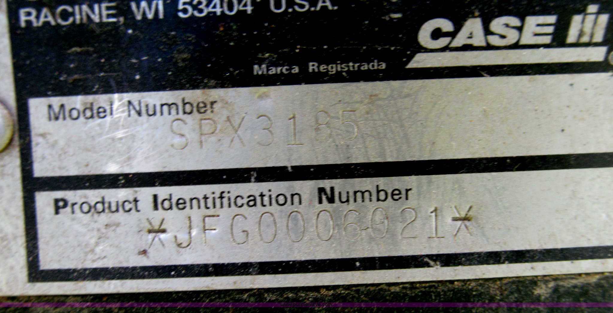 Purple Wave is selling a used Applicator Self Propelled in Missouri. This item is a 2003 Case IH SPX3185 self-propelled sprayer with the following: 4,508 hours on meter, Cummins 5.9L six cylinder diesel engine, 185 HP, Engine replaced at 2,875 hours, Three speed hydrostatic transmission, Four wheel drive, 750 gallon induction tank, 35 gallon rinse tank, Ag Leader Insight spray control system, 75'W boom, (5) sections, 20" nozzle spacing, Hydraulic height adjust, Hydraulic boom fold, Foam markers, Hydraulic power steering, 71 gallon fuel tank, AC and heat, AM/FM/cassette, Spring suspension seat, Work lights, Manuals, Radar ground sensor speed, Four wheel independent trailing link with spring and shock, Hydraulic axle width adjust, 320/90R42 tires, 17,256 lbs. base operating weight, Serial JEG0006021, Unit# 1