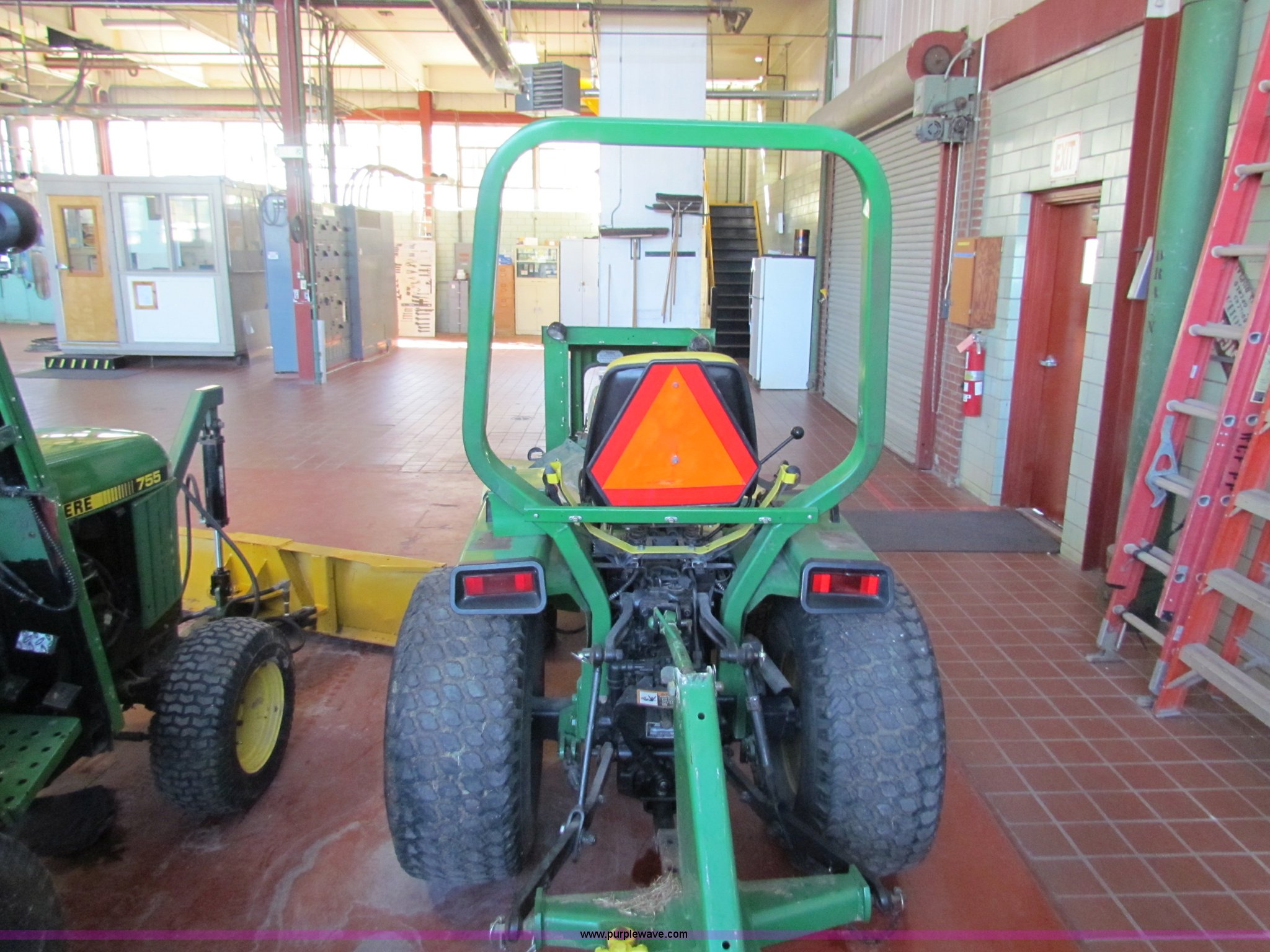 Purple Wave is selling a used Tractor in Kansas. This item is a 1991 John Deere 755 MFWD tractor with the following: 27 hours on meter, Approx. 27,000 total hours, Yanmar John Deere three cylinder diesel engine, 7,000 hours on overhaul, Hydrostatic transmission, 540 PTO, Three point, 72" front mount blade, Hydraulic swing and lift, 23x8.50-12 NHS front tires, 33x12.50-15 NHS rear tires, Mower not included, Serial M00755D491413