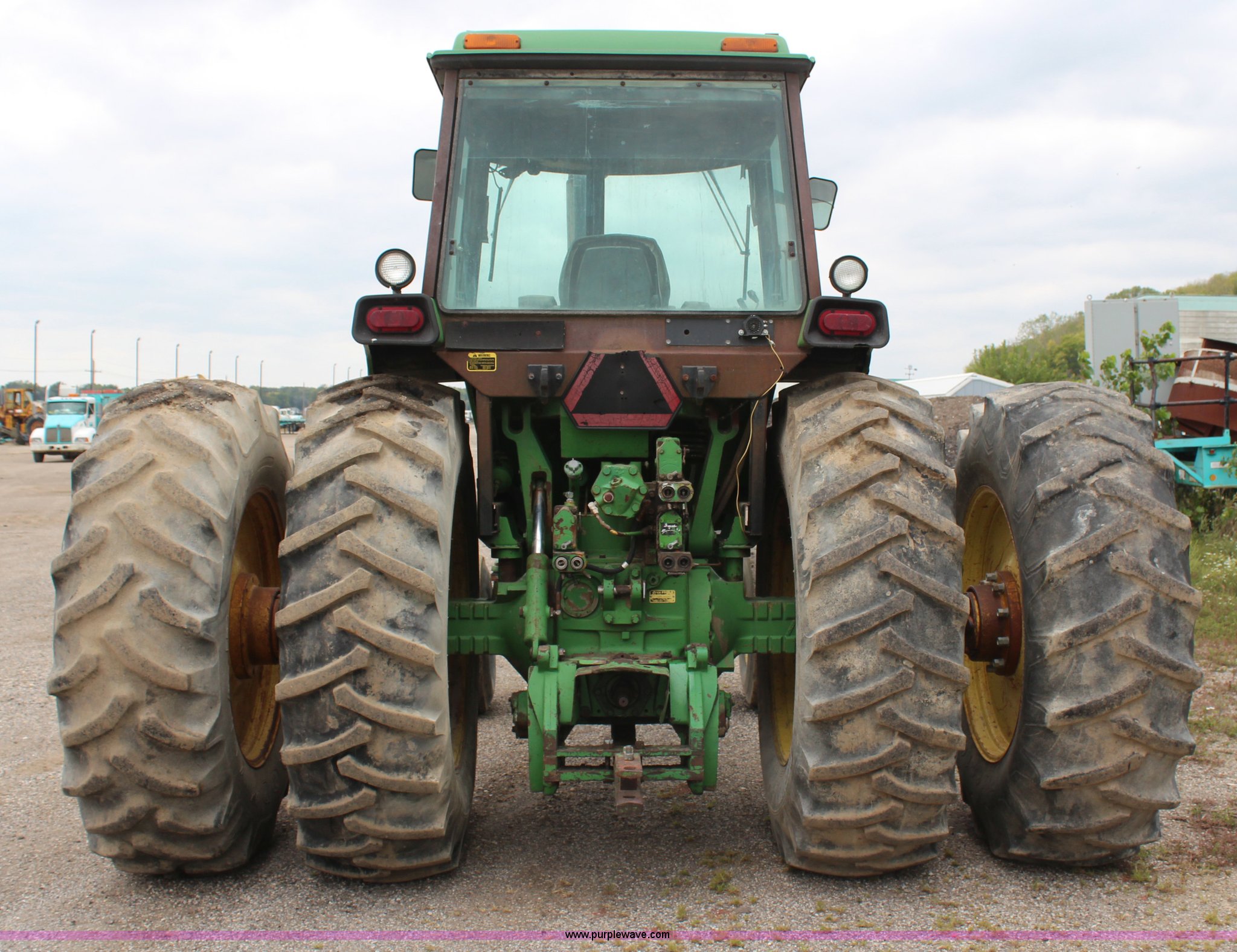 Purple Wave is selling a used Tractor in Kansas. This item is a 1978 John Deere 4640 tractor with the following: 6,363 hours on meter, John Deere diesel engine, 155 HP, Powershift transmission, 8F-4R gears, Differential lock, Heat, AM/FM, Spring suspension seat, Three point, No arms included, Draw bar, 1000 PTO, (3) rear hydraulic remotes, 83 gallon fuel tank, 11.00-16 front tires, 20.8-38 rear tires, Serial 003668R