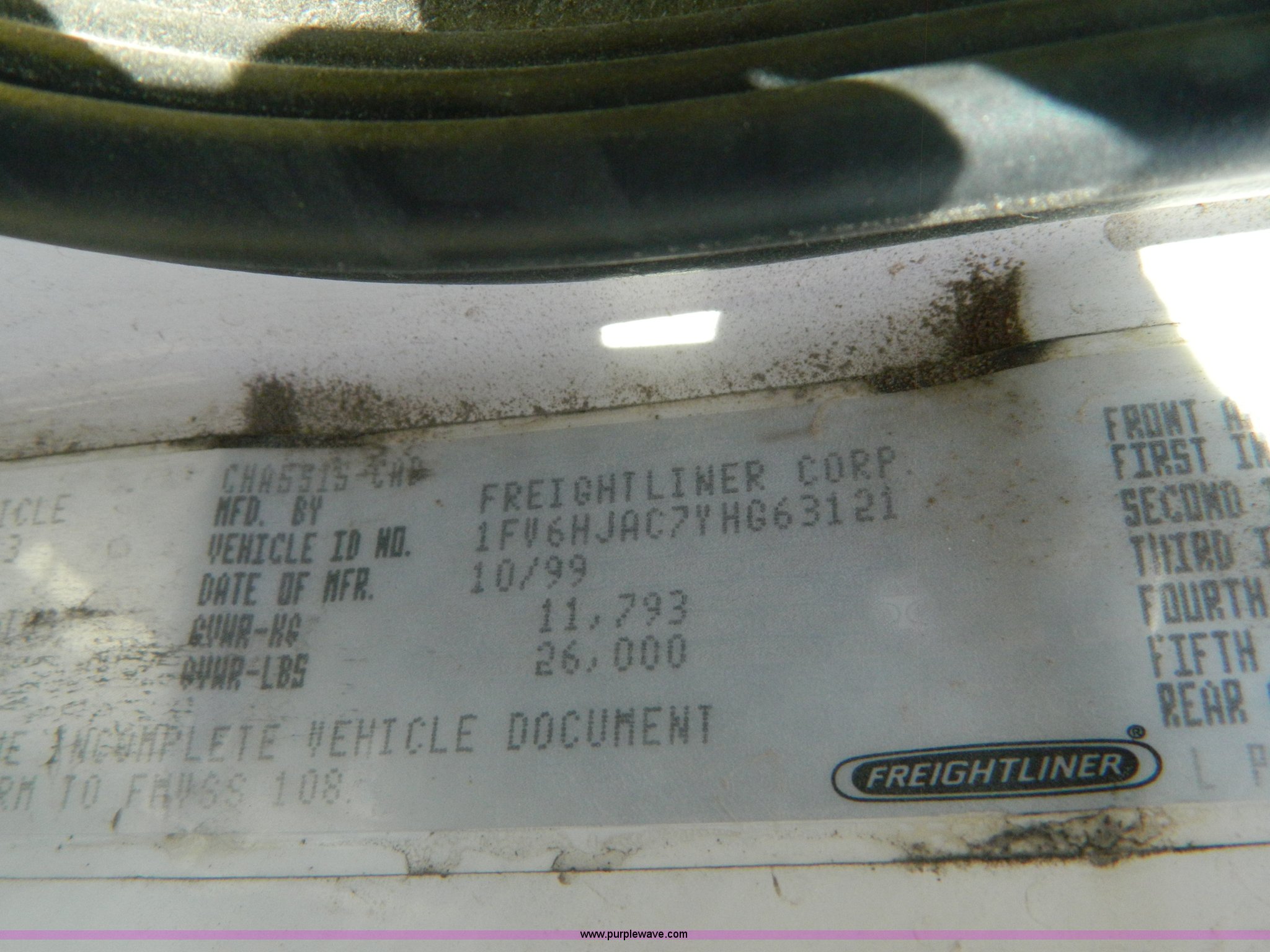 Purple Wave is selling a used Truck Chassis in Kansas. This item is a 2000 Freightliner FL70 truck cab and chassis with the following: 238,648 miles on odometer, Caterpillar 3126 7.2L L6 diesel engine, Five speed manual transmission, AC and heat, AM/FM/cassette, Cruise, Air ride driver's seat, Dual fuel tanks, Spring suspension, 25' frame length, 11R-22.5 tires, GVWR 26,000 lbs, Seat torn