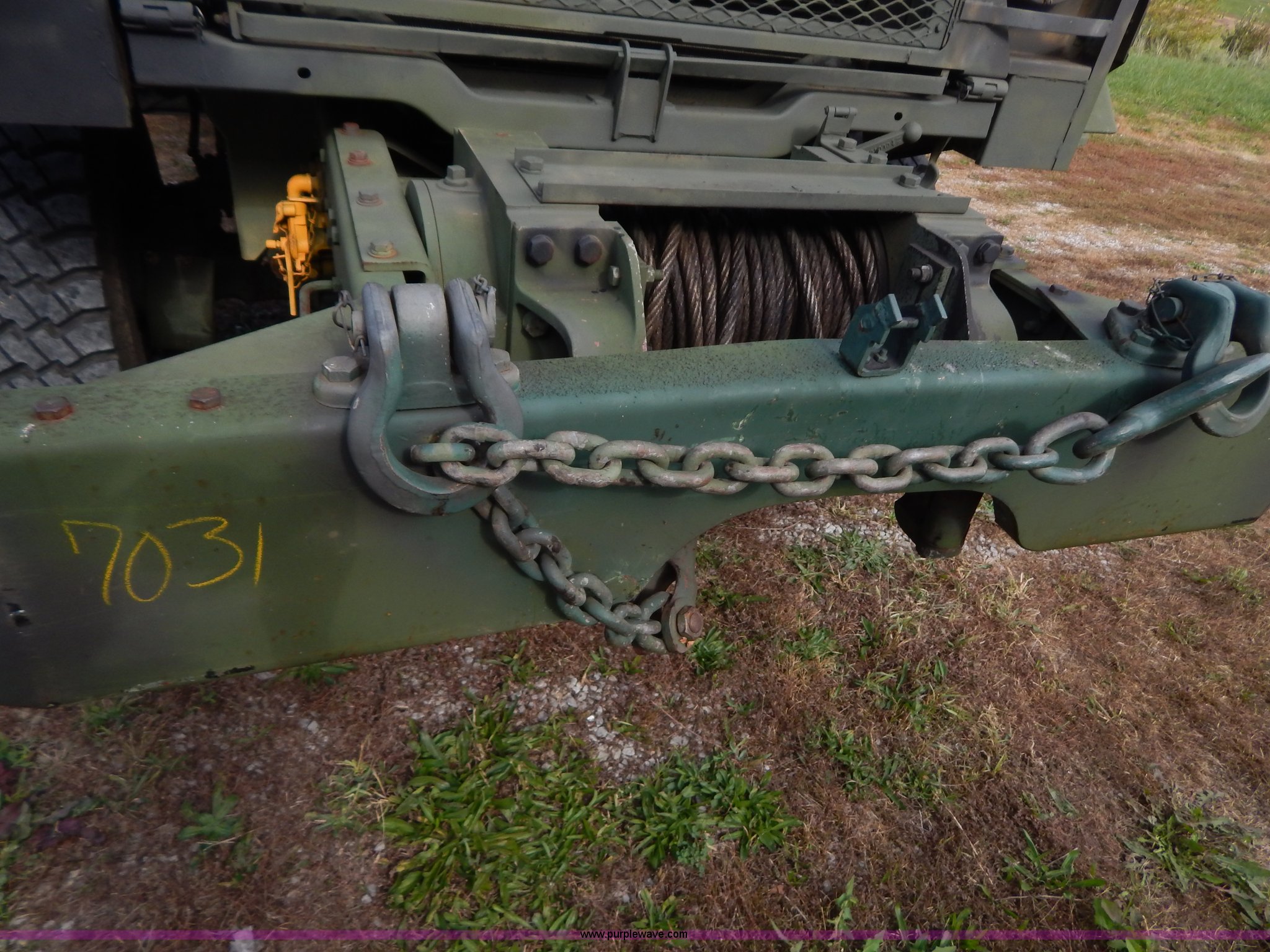1984 Am General M925 military truck. 56,491 miles on odometer, 1,597 hours on meter, Cummins diesel engine, Allison automatic transmission, Six wheel drive, Heat, Manual windows and locks, Power steering, 24V electrical system, Front mounted winch, Military lighting with black-out option, Tarp cover, Pintle hitch, Air brakes, Rockwell two speed transfer case 1:1 high range, 2.16:1 low range, Rockwell axles 6.44:1 gear ratio, 11-20 tires. C52501418. Shipping quotes available. 210 N West St. Concordia, MO 64020