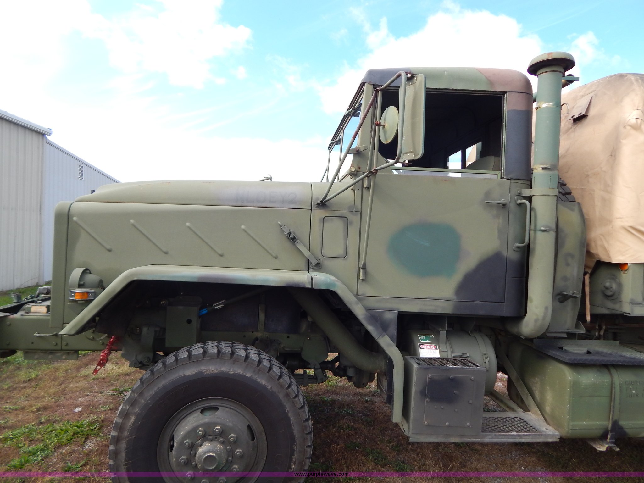 Purple Wave is selling a used Flat Bed Truck in Missouri. This item is a 1984 Am General M925 military truck with the following: 56,491 miles on odometer, 1,597 hours on meter, Cummins diesel engine, Allison automatic transmission, Six wheel drive, Heat, Manual windows and locks, Power steering, 24V electrical system, Front mounted winch, Military lighting with black-out option, Tarp cover, Pintle hitch, Air brakes, Rockwell two speed transfer case, 1:1 high range, 2.16:1 low range, Rockwell axles, 6.44:1 gear ratio, 11-20 tires