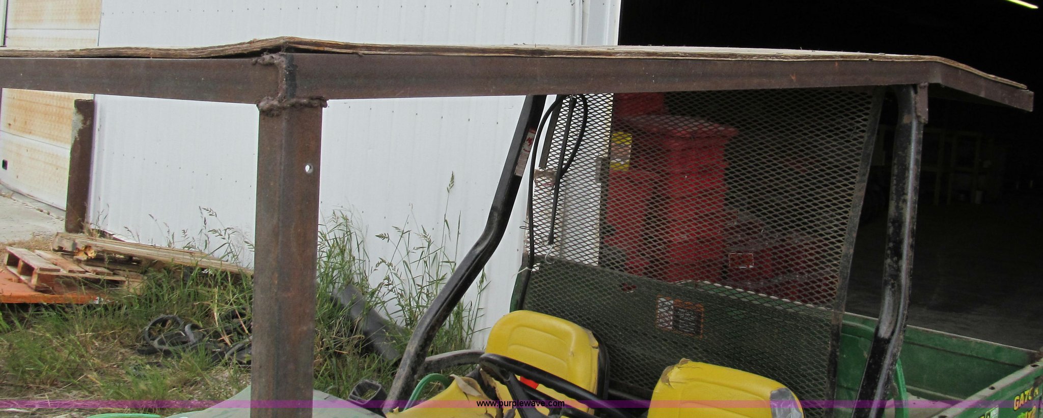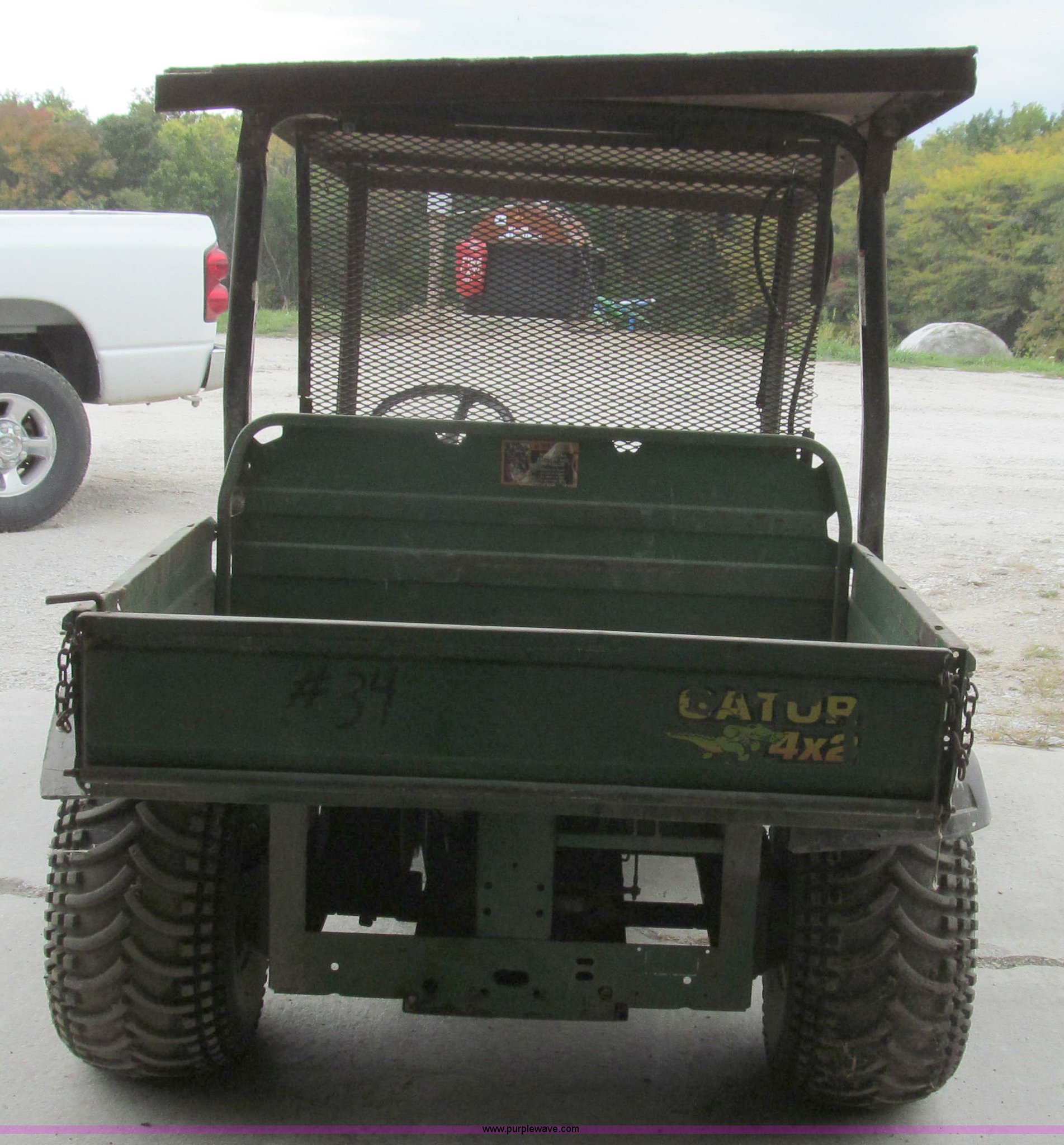 1999 John Deere Gator utility vehicle. 2,072 hours on meter, 351 CC gas engine Weak, Variable speed belt driven transmission Drive belt missing, Locking differential, Manual tilt bed, Shop built canopy, 22.5 x 10.00-8 front tires, 25 x 13.00-9 rear tires, Seats torn, Unit# 34. W00X2X038097. Shipping quotes available. Murphy Brown LLC. RR2 Box 300D. Princeton, MO 64673