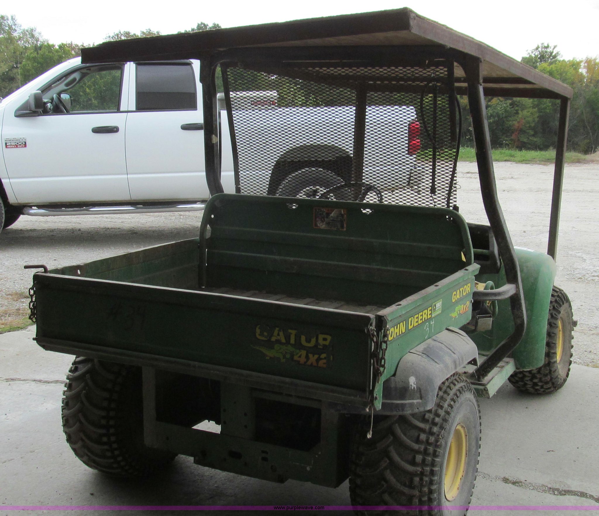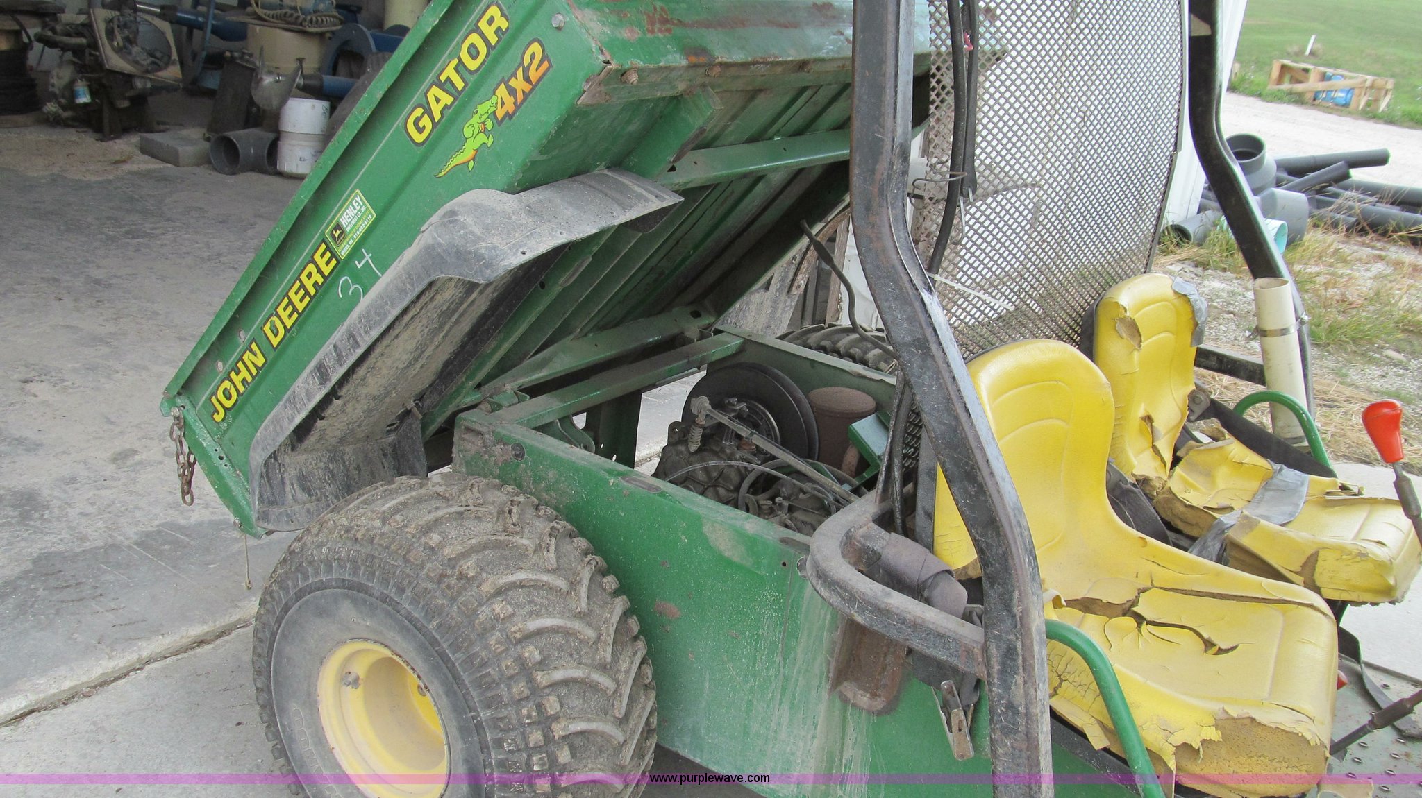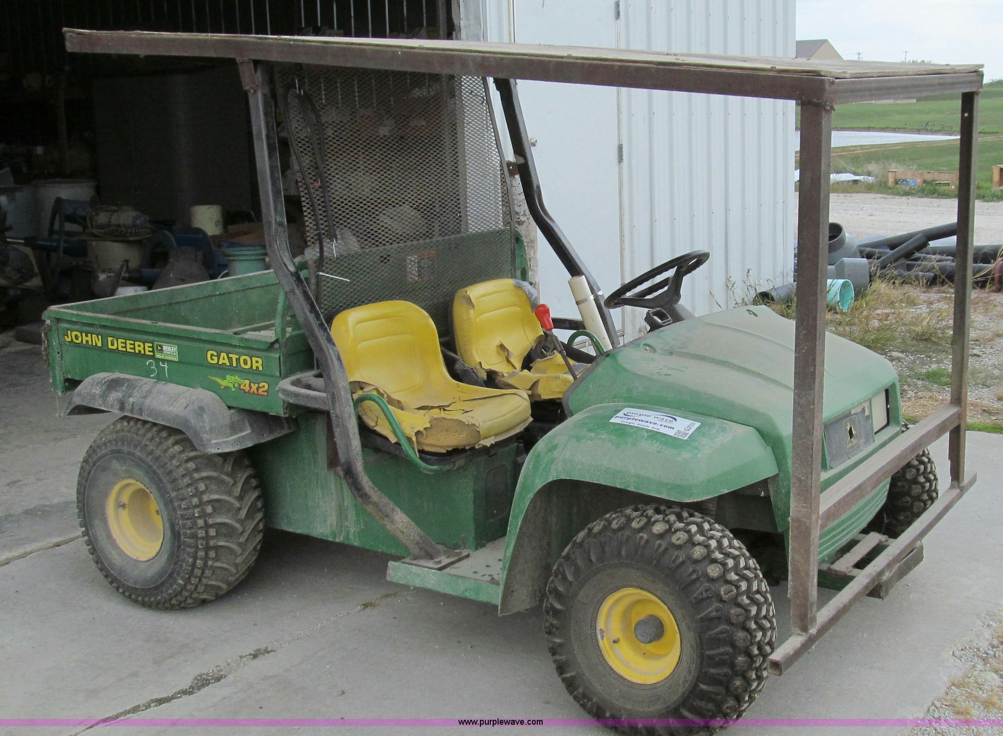 Purple Wave is selling a used Utility Vehicle in Missouri. This item is a 1999 John Deere Gator utility vehicle with the following: 2,072 hours on meter, 351 CC gas engine, Weak, Variable speed belt driven transmission, Drive belt missing, Locking differential, Manual tilt bed, Shop built canopy, 22.5 x 10.00-8 front tires, 25 x 13.00-9 rear tires, Seats torn, Unit# 34