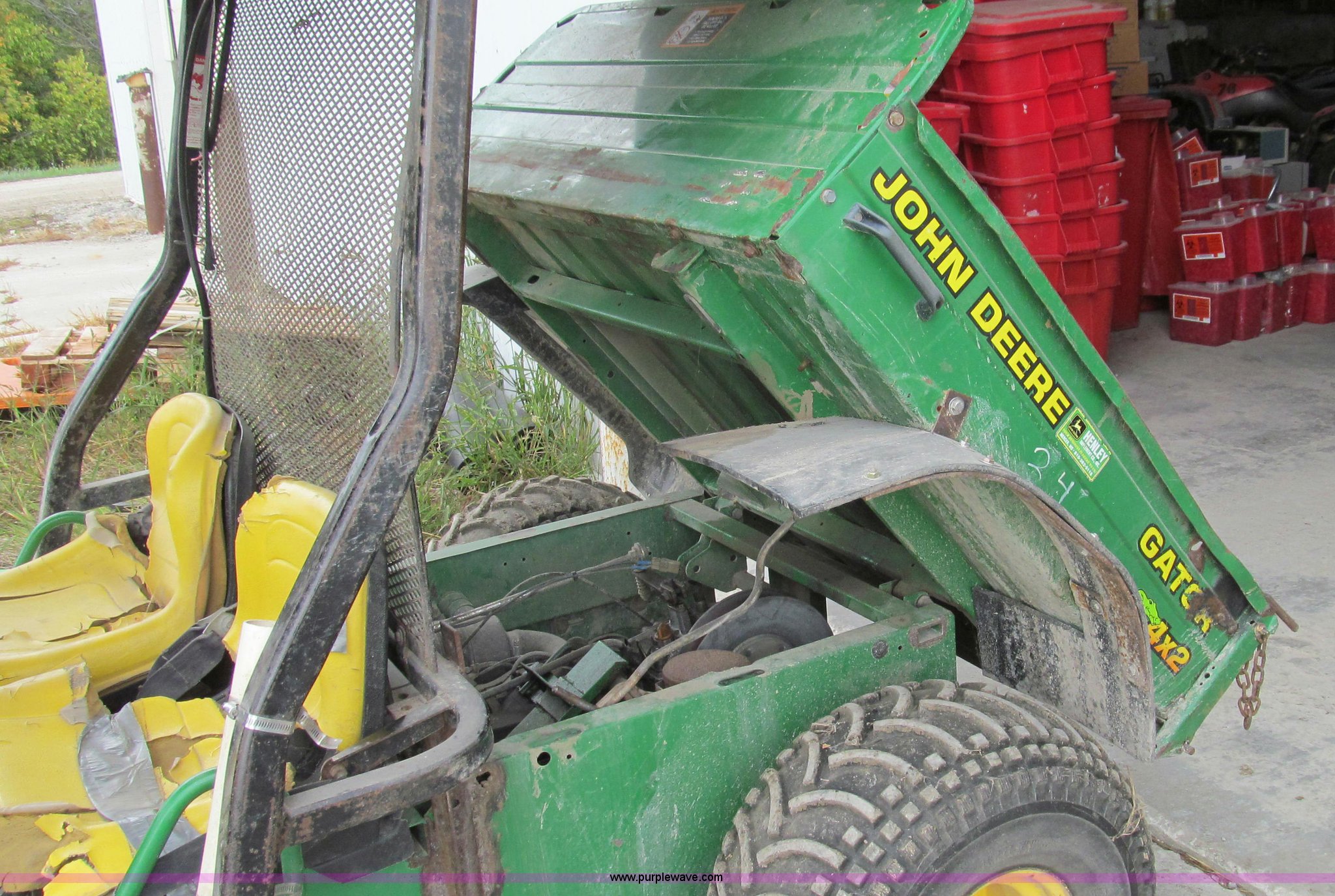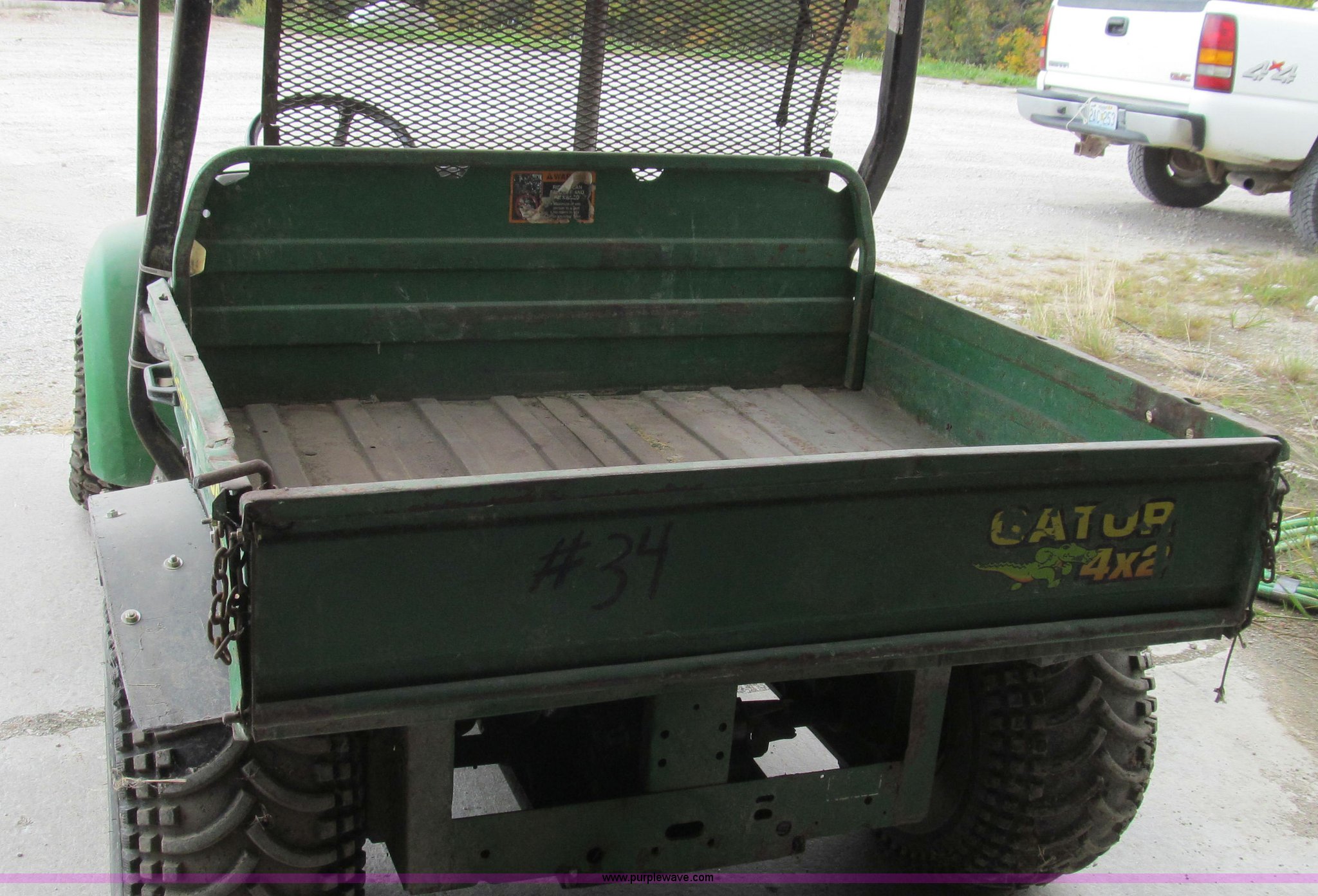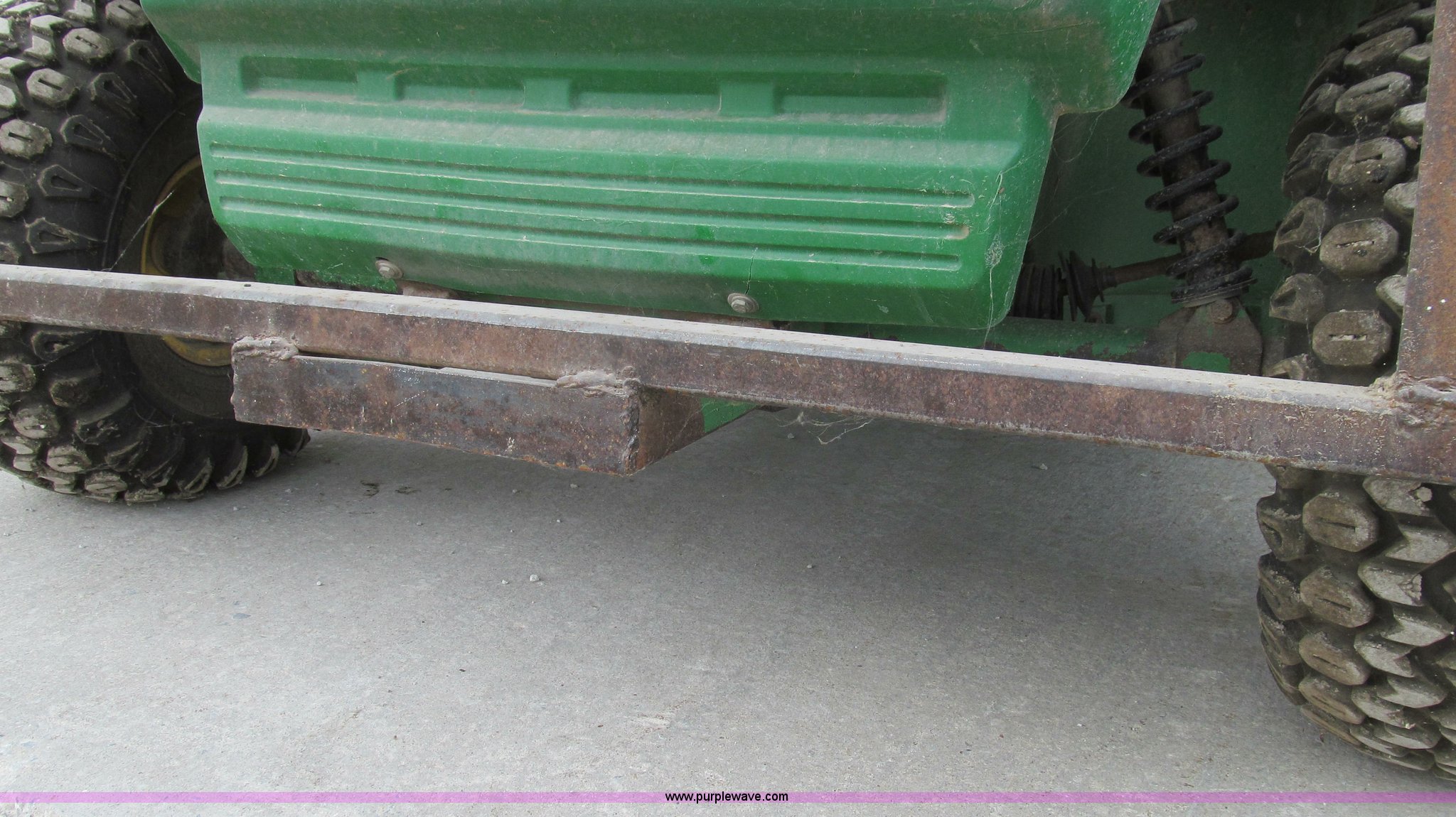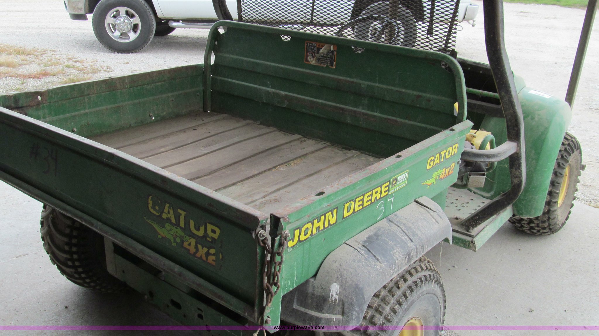 Purple Wave is selling a used Utility Vehicle in Missouri. This item is a 1999 John Deere Gator utility vehicle with the following: 2,072 hours on meter, 351 CC gas engine, Weak, Variable speed belt driven transmission, Drive belt missing, Locking differential, Manual tilt bed, Shop built canopy, 22.5 x 10.00-8 front tires, 25 x 13.00-9 rear tires, Seats torn, Unit# 34
