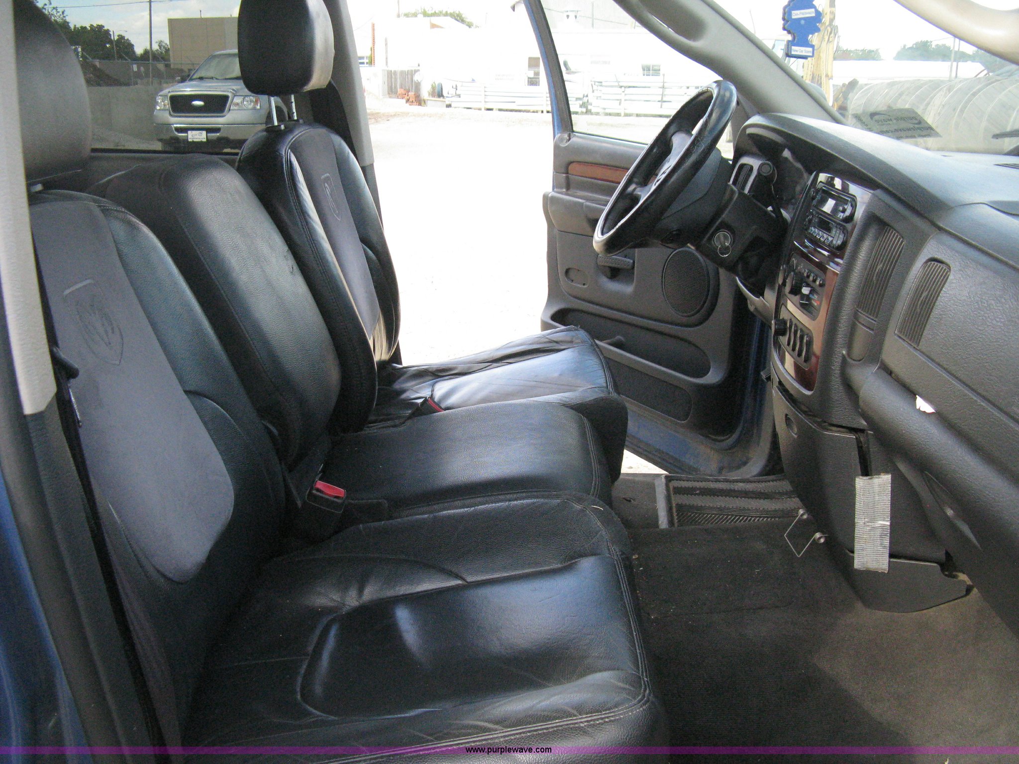 Purple Wave is selling a used Passenger Vehicle in Kansas. This item is a 2003 Dodge Ram 1500 Laramie Quad Cab pickup truck with the following: 214,352 miles on odometer, 5.7L V8 OHV 16V gas engine, Automatic transmission, Four wheel drive, AC and heat, Tilt, Cruise, AM/FM/CD/cassette, Power windows, locks, mirrors, and seats, Heated seats, Leather interior, Foot pedal adjustment, Radio controls on steering wheel, Running boards, Receiver hitch, Trailer wiring, Aluminum wheels, 275/60R20 tires, Interior/exterior cosmetic damage, Pits in windshield, Hail damage, Engine miss, Check engine light on, Rust, Unit# 700BXS