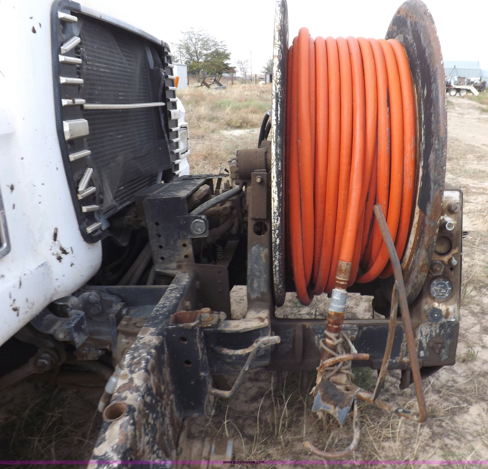 Purple Wave is selling a used Flat Bed Truck in Kansas. This item is a 1992 Ford LN8000 flatbed truck with the following: 126,692 miles on odometer, Ford 7.8L L6 turbo diesel engine, Six speed manual transmission, AC and heat, AM, Air suspension seat, Front mount PTO, Front mount jet hose and reel, 16'L x 8'W flatbed, (6) water storage tanks, Capacity unknown, Hoist for spoils tank, Tank has been removed, Dunip four cylinder turbo diesel engine, 1,728 hours on meter, Triplex pump, (4) storage boxes, Dual 50 gallon fuel tanks, Single rear exhaust stacks, Receiver hitch, 2 5/16" pintle hitch, PTO, Wet kit, Spring suspension, Air brakes, 220" wheelbase, 385/65R22.5 front tires, 11R22.5 tires, Unknown operating condition