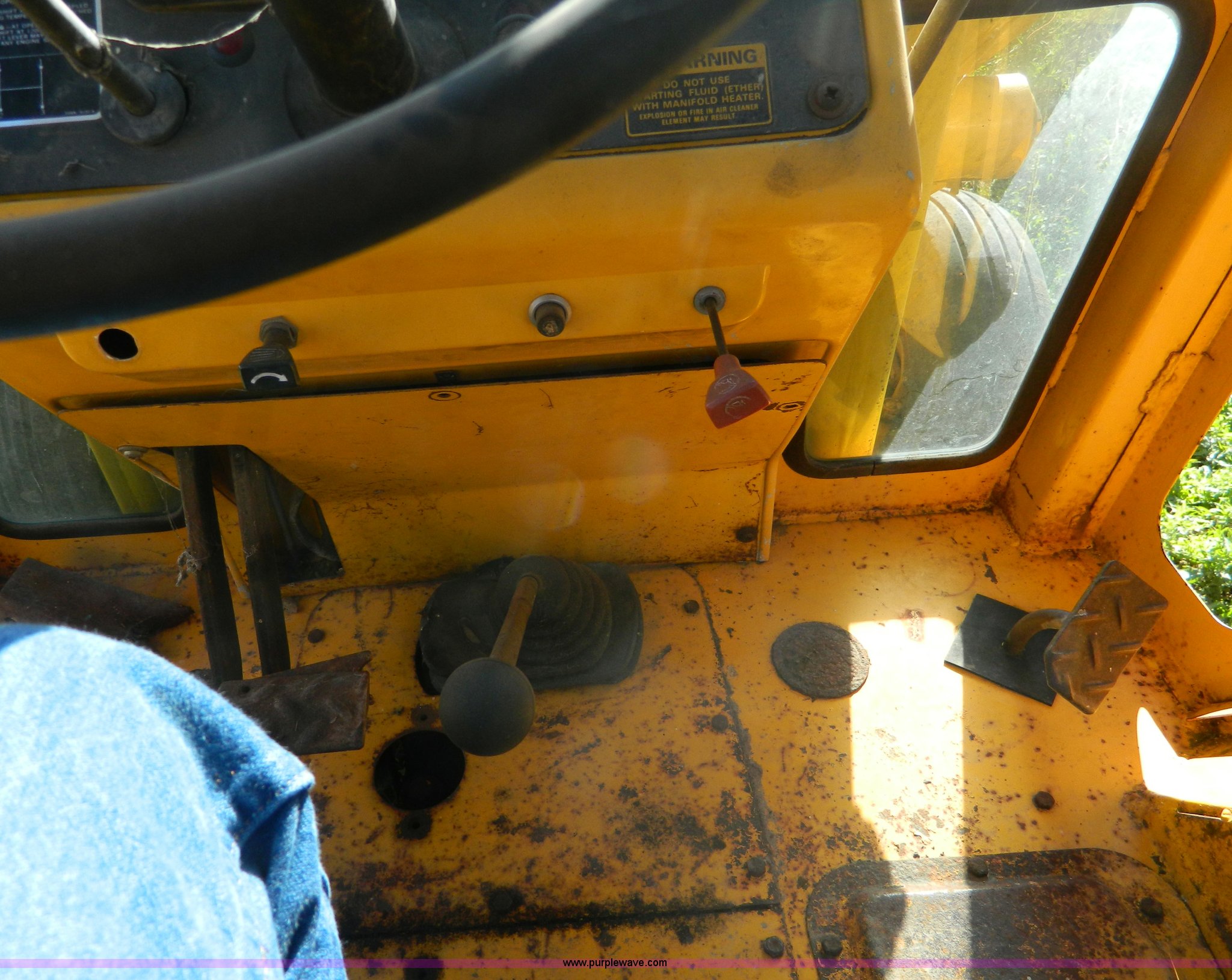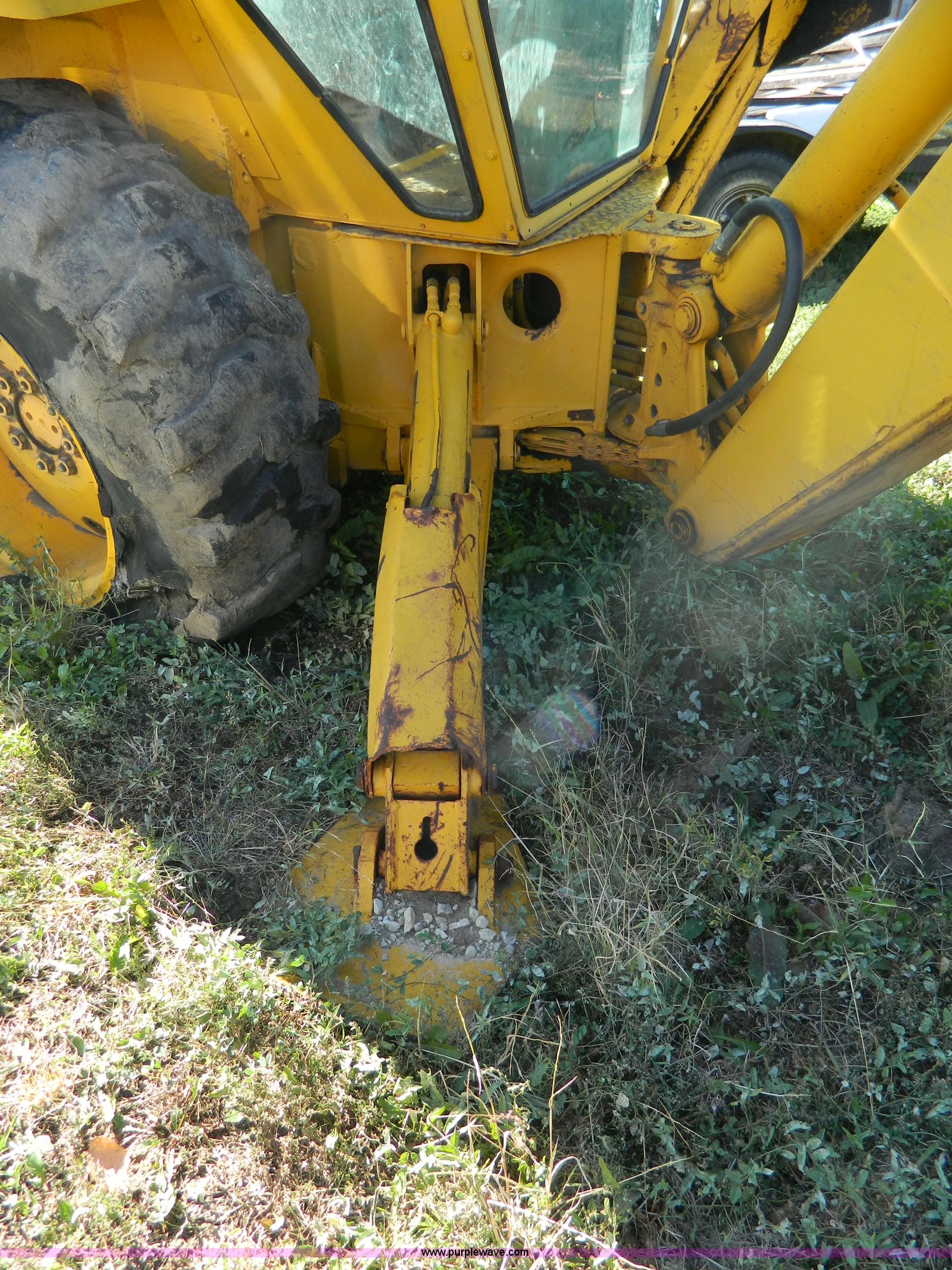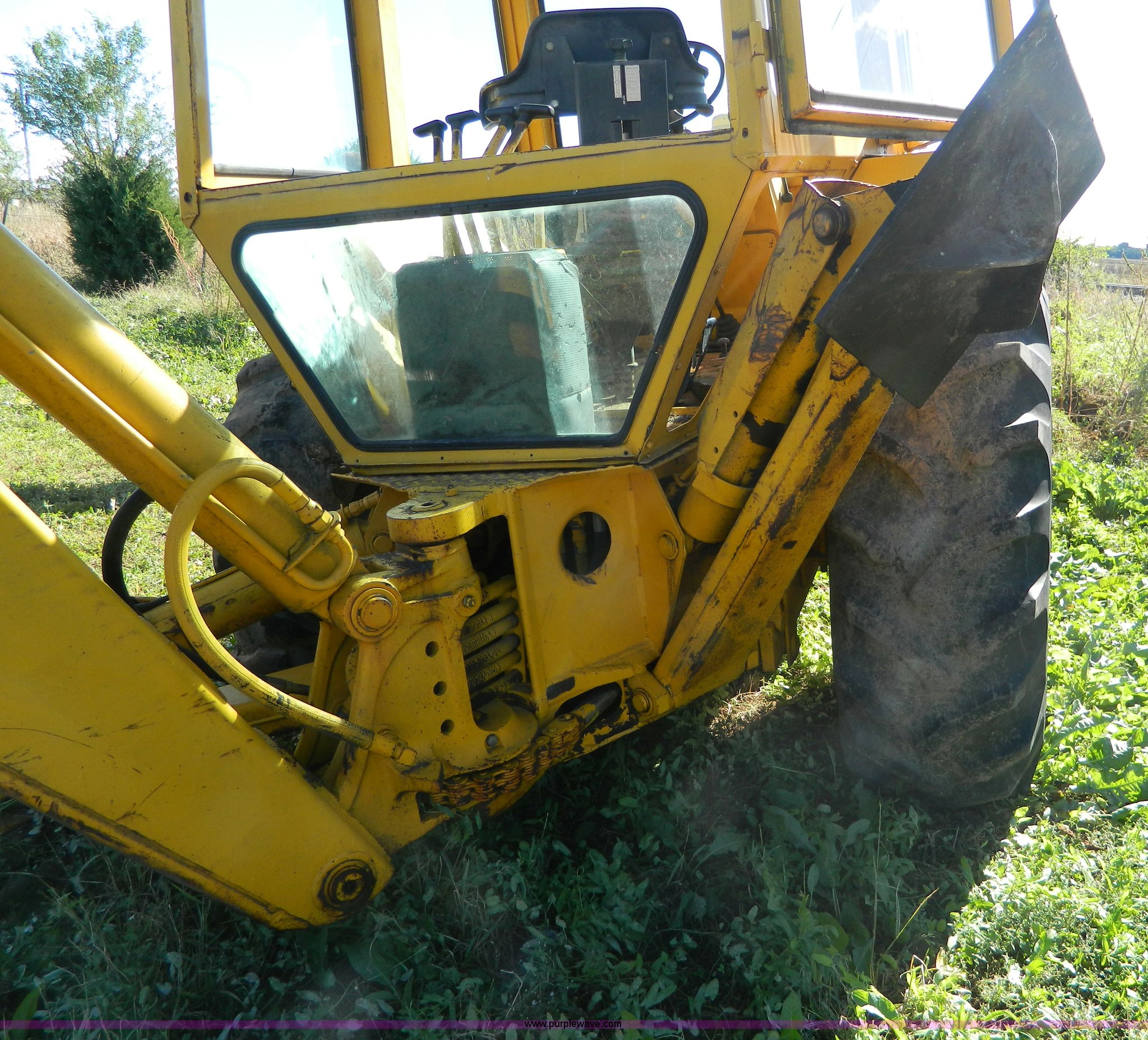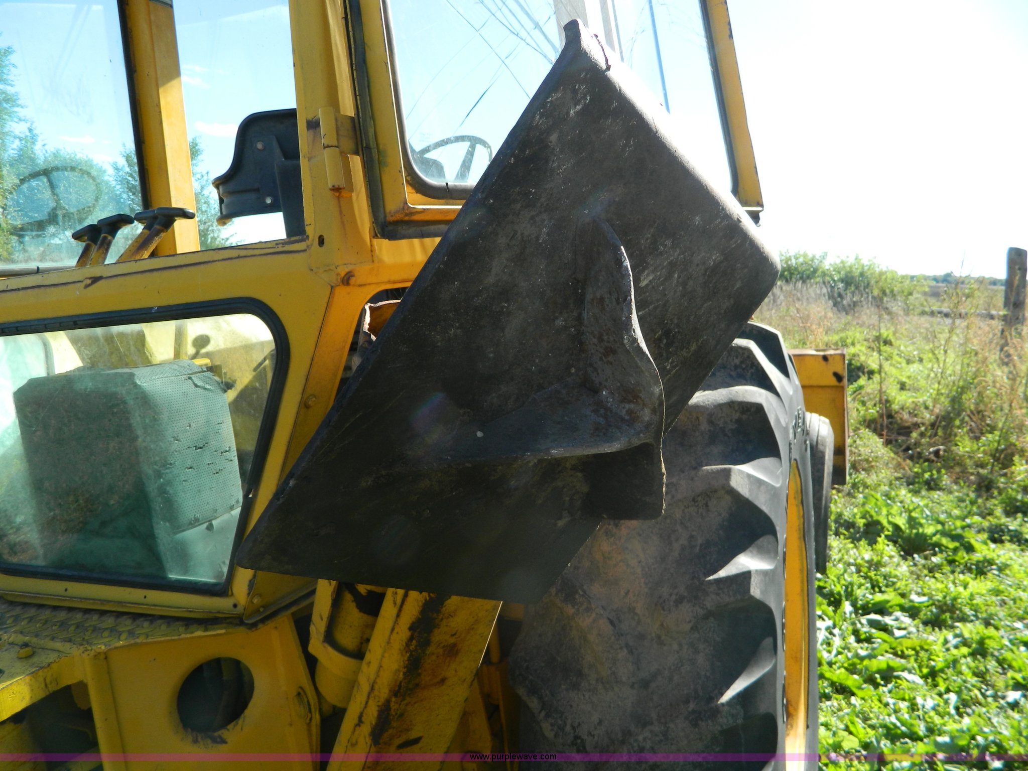 Purple Wave is selling a used Tractor Loader Backhoe in Kansas. This item is a Ford DF211F backhoe with the following: 3,560 hours on meter, Four cylinder diesel engine, Serial 71180, Four speed manual transmission, Serial 7L22B, Heat, 7' front bucket, 24" backhoe bucket, 18' dig depth, 9.00-16 front tires, 16.9-28 rear tires, Cracked and missing glass, No battery, Rear tire bad, Recently replaced head gasket, water pump, and radiator, Serial 0558832