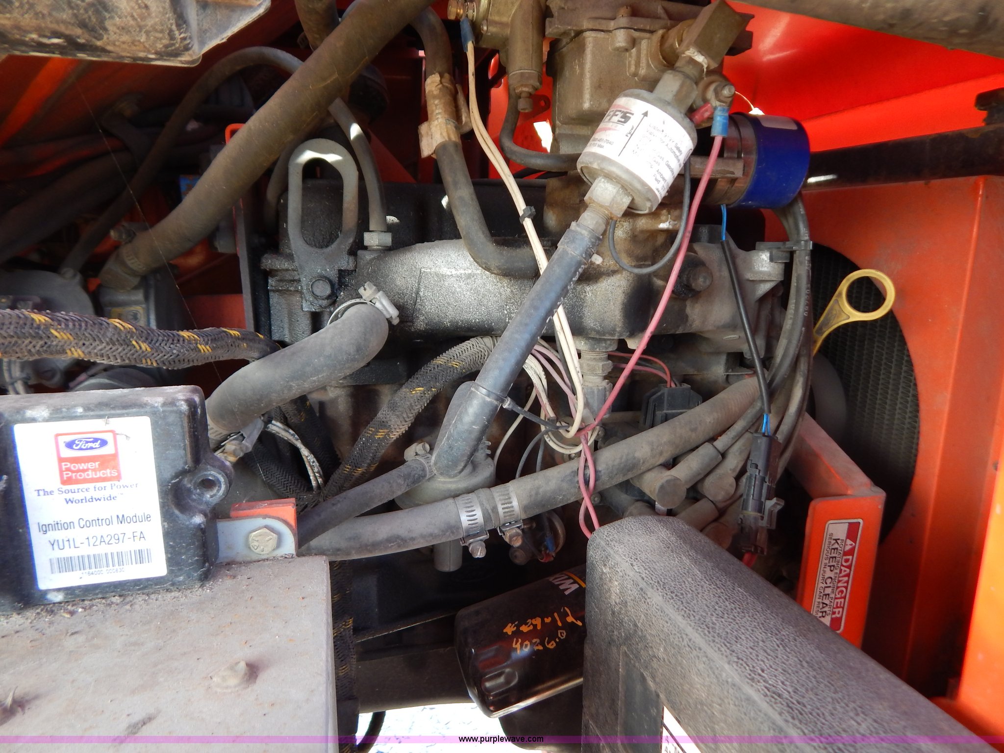 2001 Snorkel TBA42RF0 boom lift. 4,105 hours on meter, Four cylinder gas engine, Four wheel drive, 33" x 8' x 44"H platform, Power to platform, 500 lbs or two person max capacity, 12x16.5 foam-filled tires, Missing governor, Cosmetic damage, One boom cable broken, Serial 0T01002, Unit# 7203. Volvo Rents. 2231 Papin St. St. Louis, MO 63103
