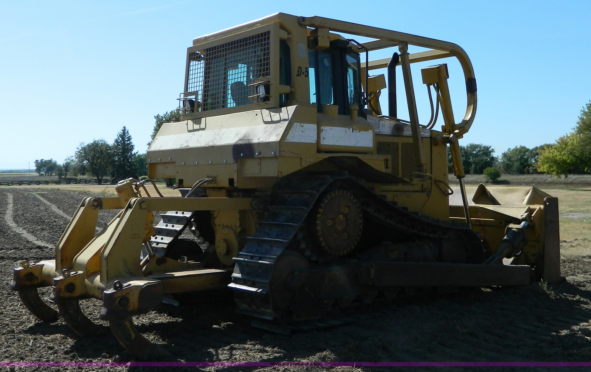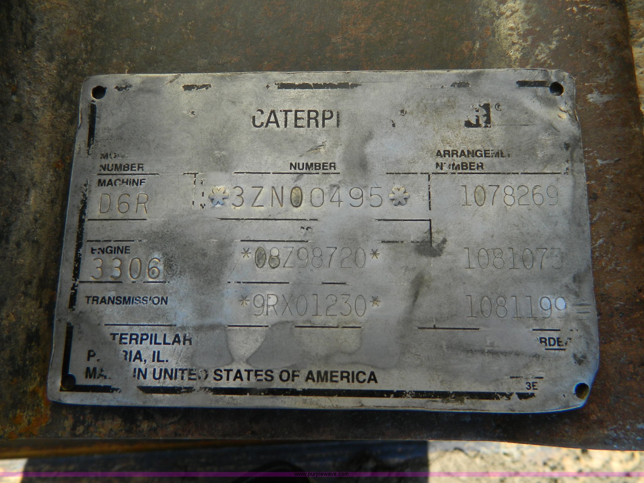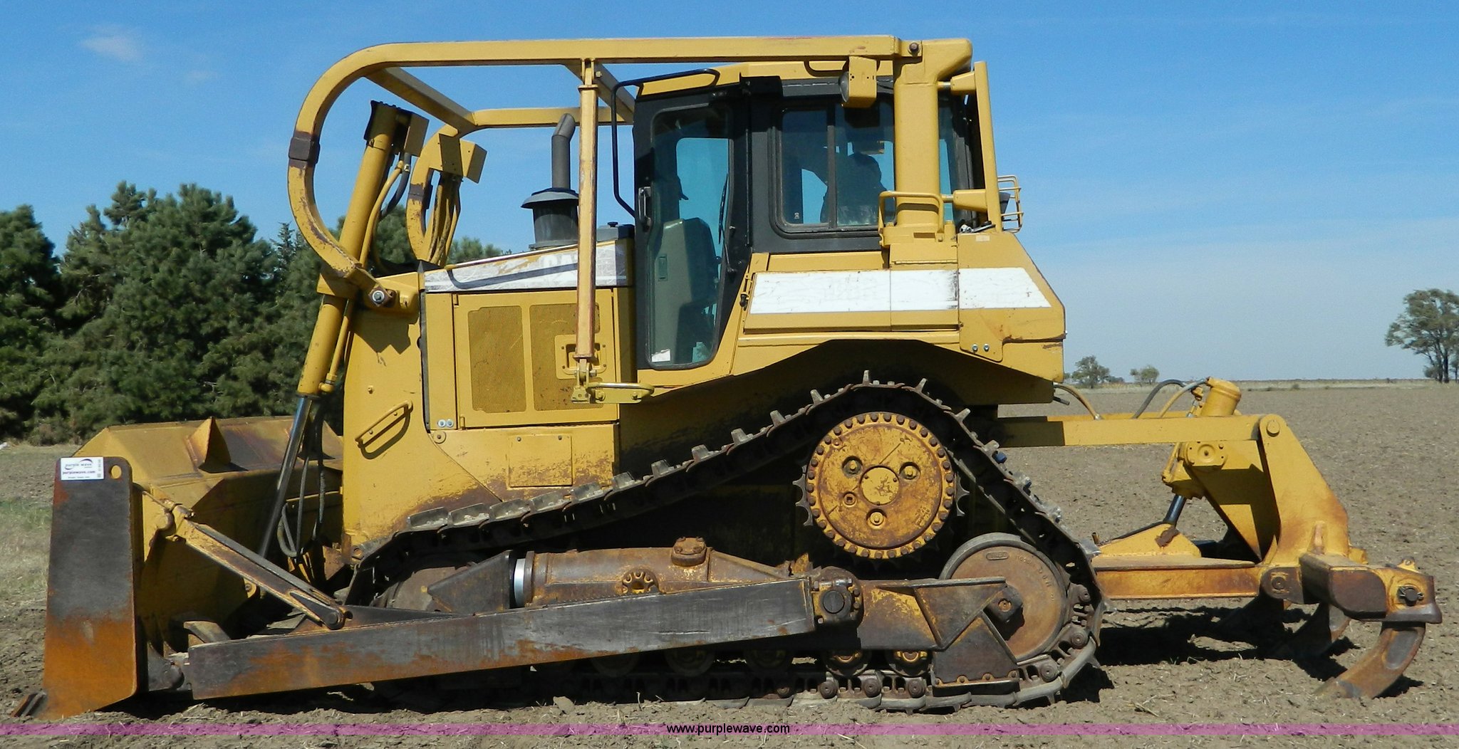 Purple Wave is selling a used Crawler Dozer in Kansas. This item is a 1997 Caterpillar D6R dozer with the following: 14,365 hours on meter, Caterpillar 3306 six cylinder non-electronic turbo diesel engine, 180 HP, Serial 08798720, Three speed powershift transmission, Enclosed ab, AC, AM/FM/Weather band, Air suspension seat, Front and rear work lights, Front and rear wipers, Rear screen guard, Engine enclosures, Differential steering, Six semi SU-Dozer, Tilt, 10'4"W dozer face, 83" three shank rear ripper, Caterpillar SALT undercarriage, (6) bottom rollers, 22"W single grouser track pads, 49,000 lbs. base operating weight, Radiator seals replaced spring 2013, Batteries replaced fall 2012, Operator's manual, Serial 3ZN00495