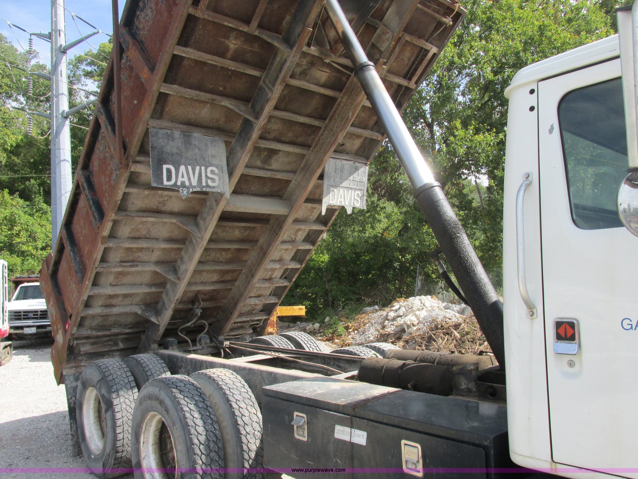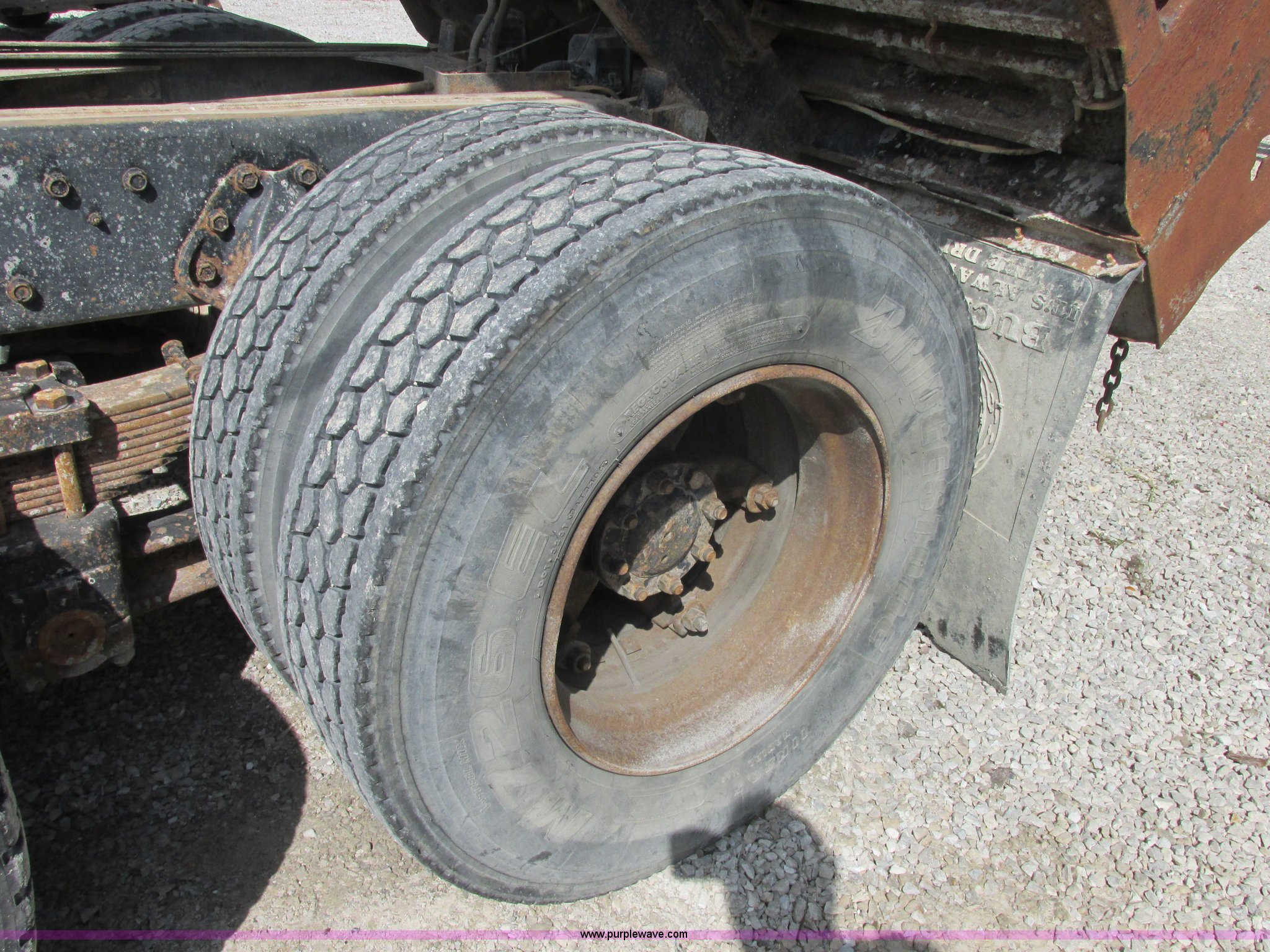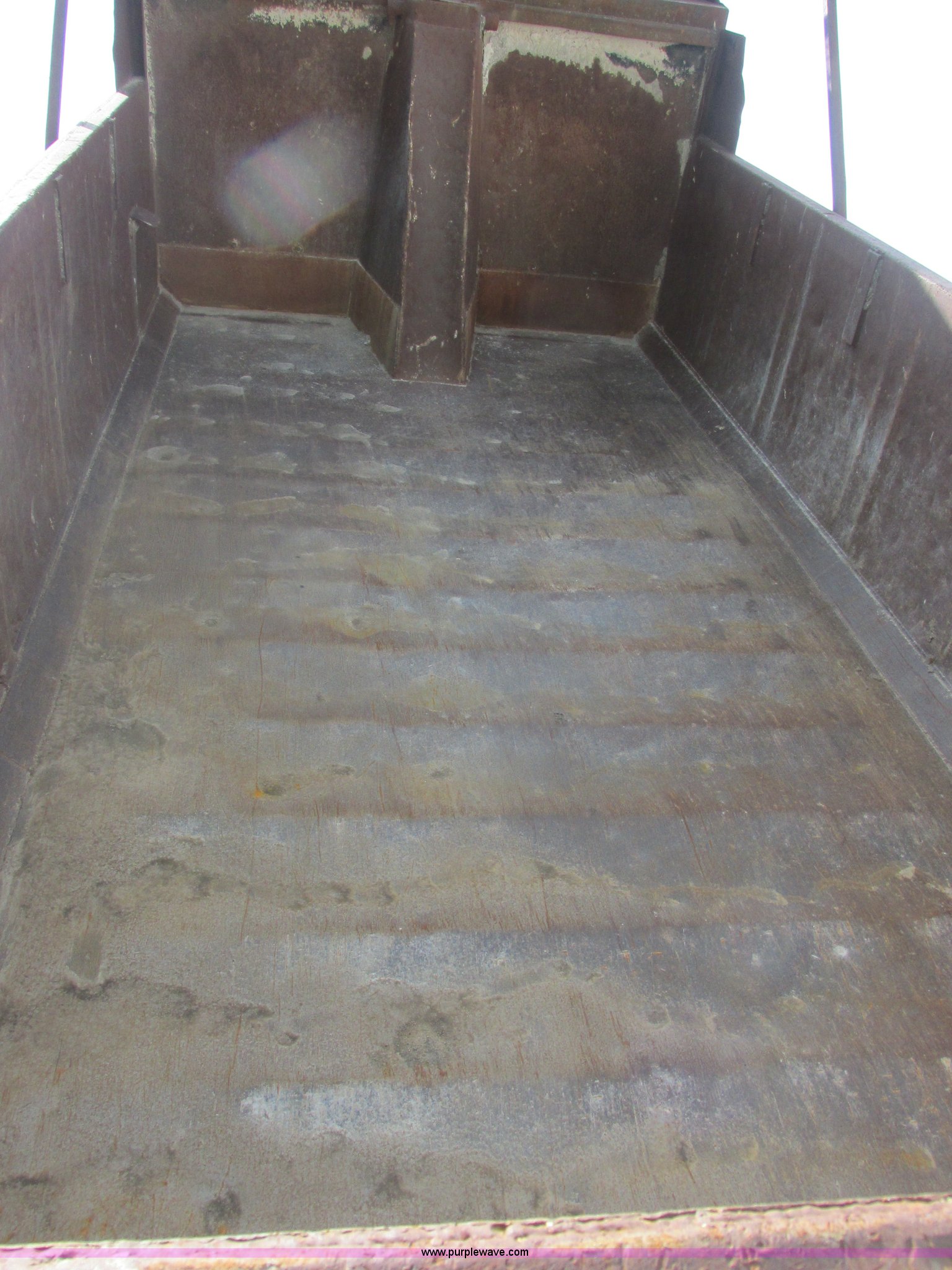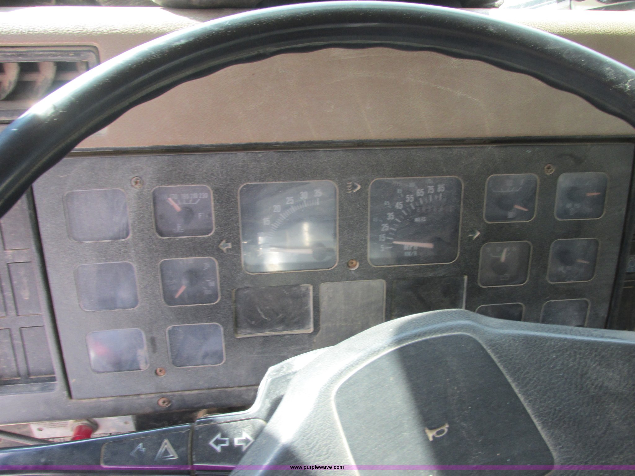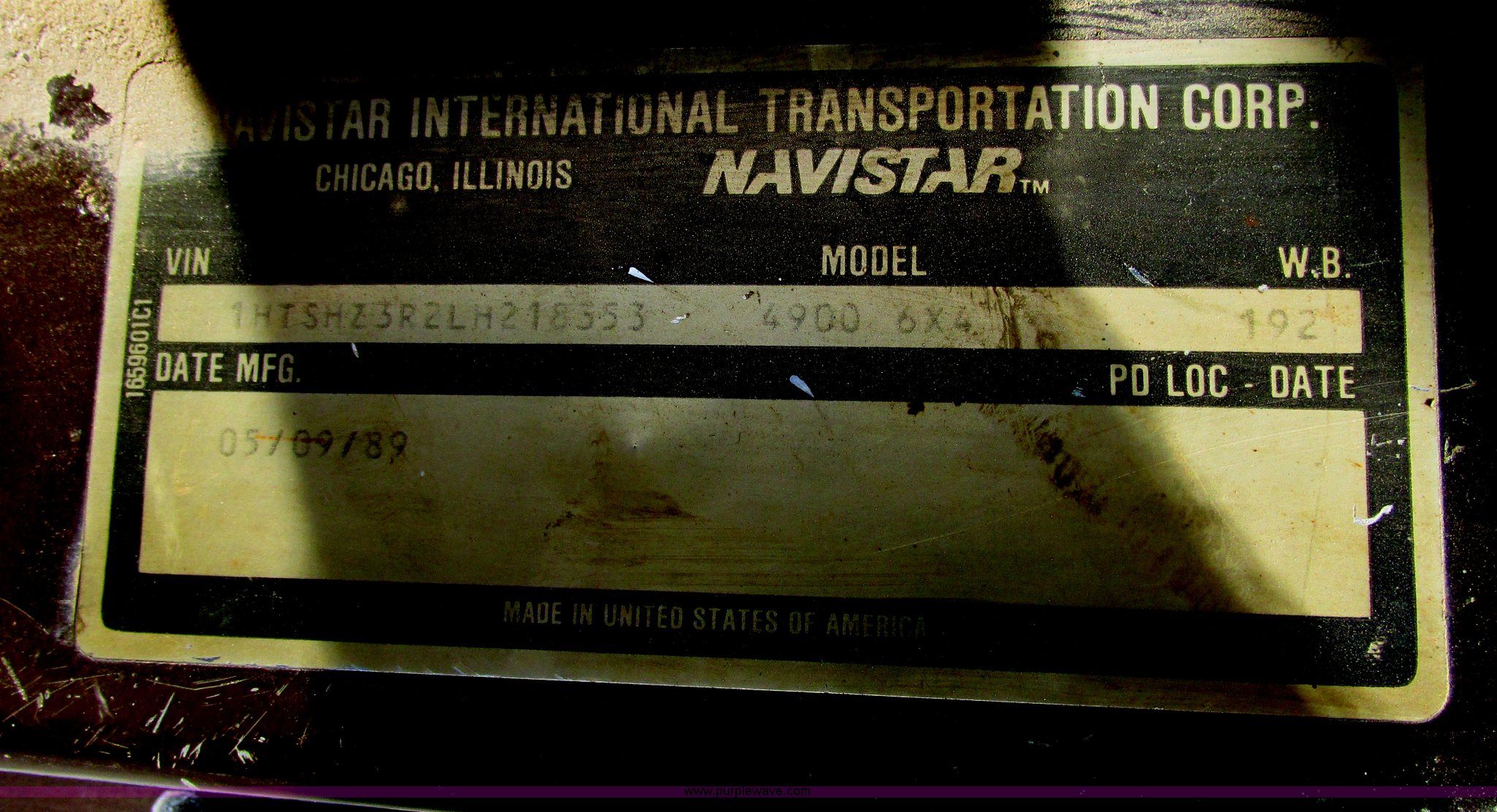 Purple Wave is selling a used Construction Dump Truck in Missouri. This item is a 1990 International 4900 dump truck with the following: 293,620 miles on odometer, International DT466 7.6L L6 diesel engine, 13 speed manual transmission, Heat, Exterior visor, Block heater, Pintle hitch, Air end gate, Manual rollover tarp, Three stage single ram, WeatherGuard 48" under body toolbox, Does not latch correctly, Dual 45 gallon fuel tanks, PTO, Spring over walking beam suspension, Air brakes, Double framed, 192" wheelbase, 385/65R22.5 front tires, 11R22.5 rear tires, GVWR 54,000 lbs, Cosmetic damage, Bed rust, Bed needs repainted